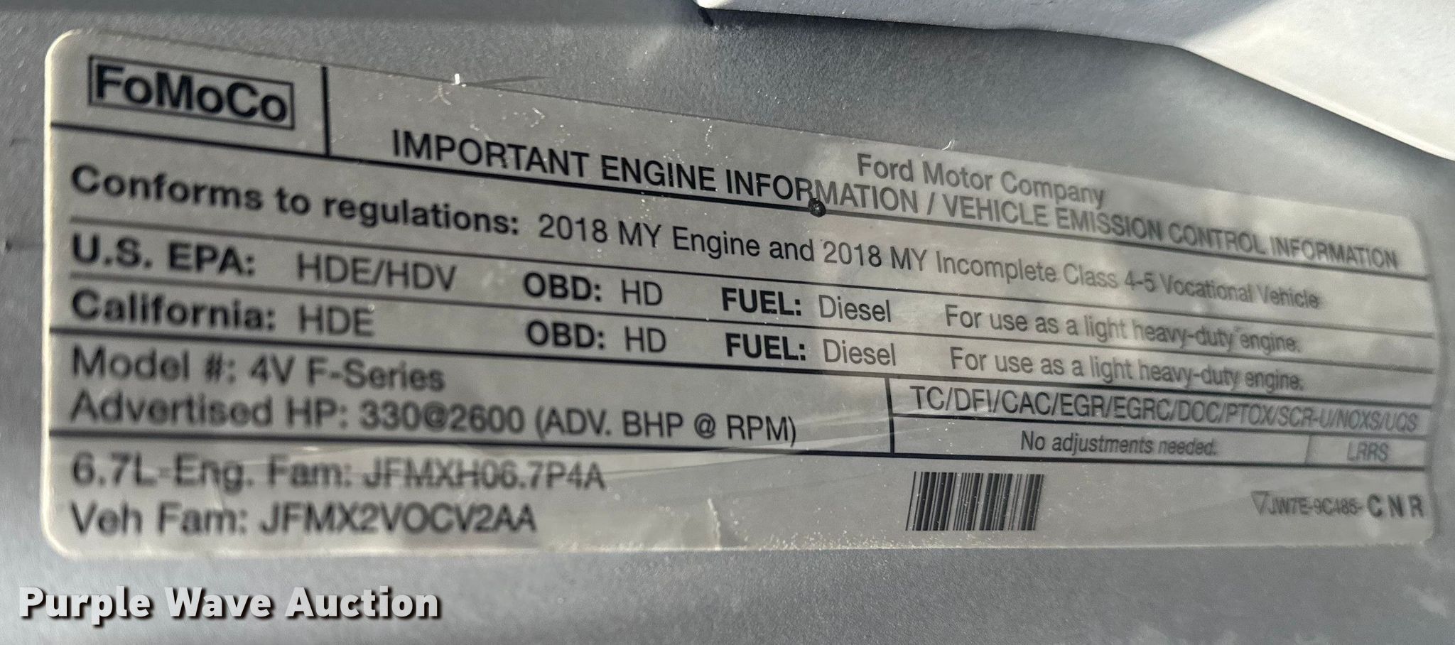 2018 Ford F450 Super Duty XL Ext. Cab flatbed pickup truck. Miles: 109,312 on odometer, VIN: 1FD0X4HT6JEB74205. Engine Displacement: 6.7L, Cylinders: 8, Fuel type: Diesel. Transmission Automatic, Four wheel drive. Interior AC, Heat, Auxiliary controls, Brake controller. Features Bed Flatbed, Length: 12', Width: 96". Tires Size: 225/70R19.5. Notes Dash warning indicator: Airbag. Oklahoma title. Seller is an Oklahoma licensed motor vehicle dealer. Buyers may be required to provide identification to the licensed dealer to comply with state laws. Title will be assigned and distributed by the dealer. Please contact the seller for distribution questions. Title distribution may be delayed up to 30 days from verification of funds. Collinsville, OK 74021