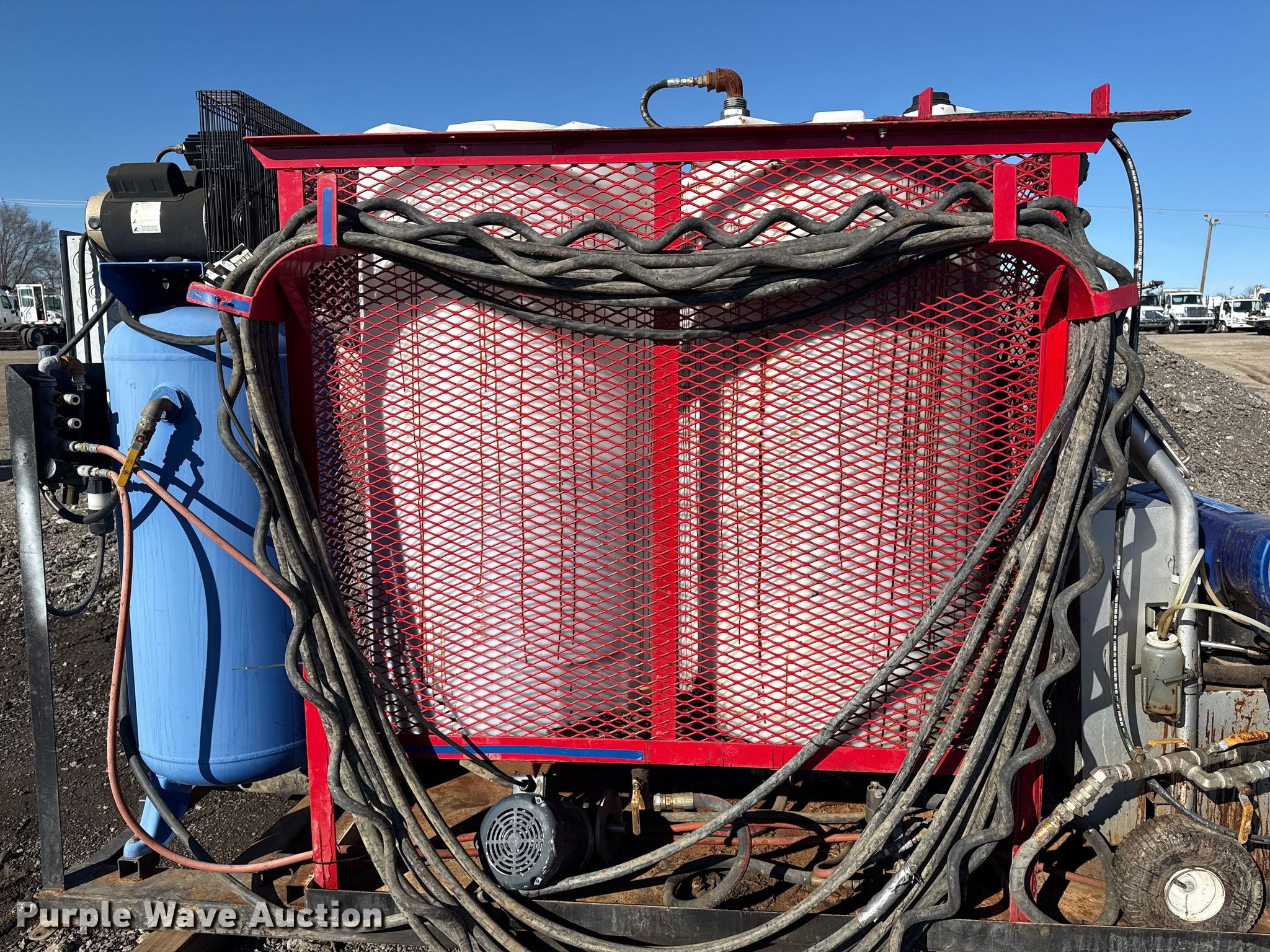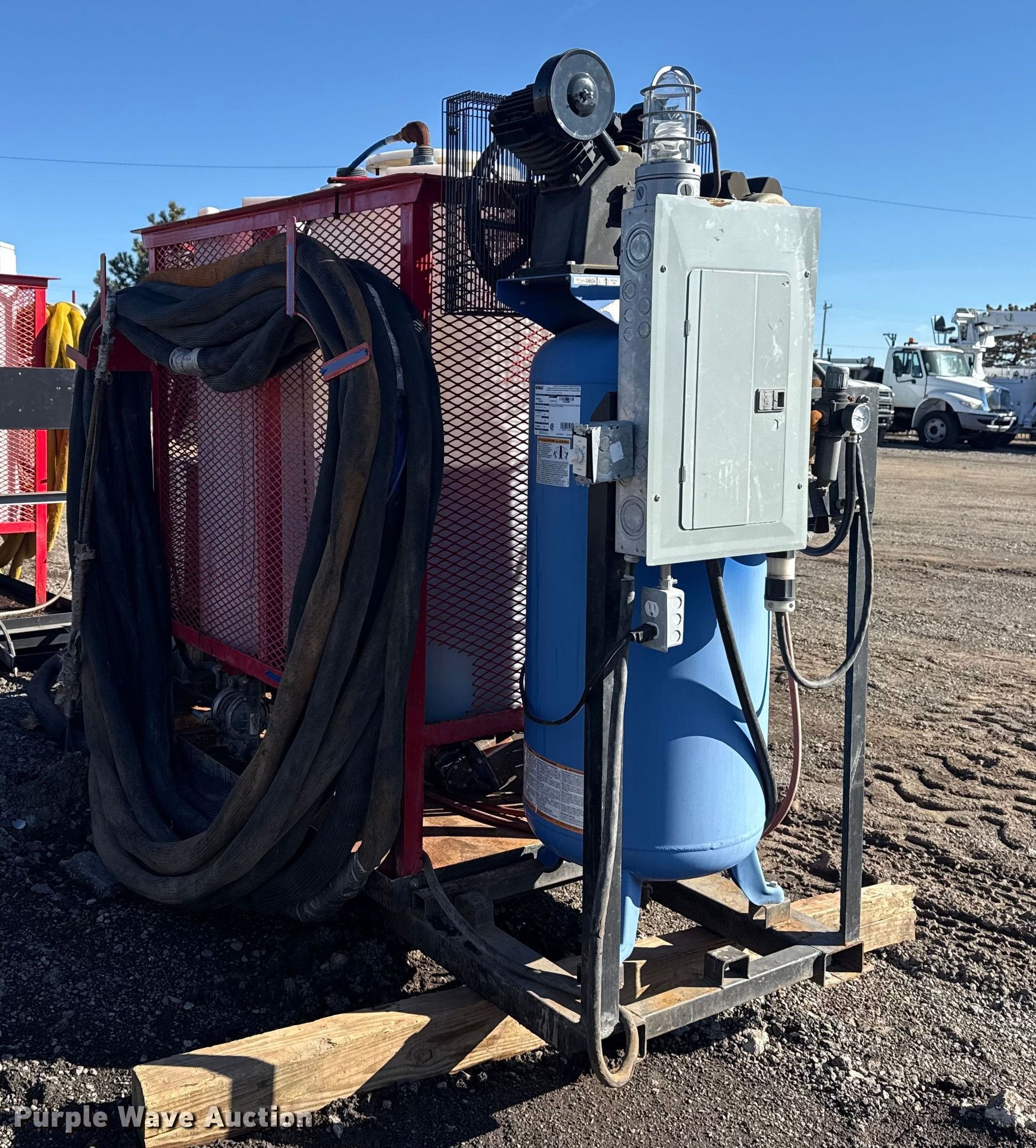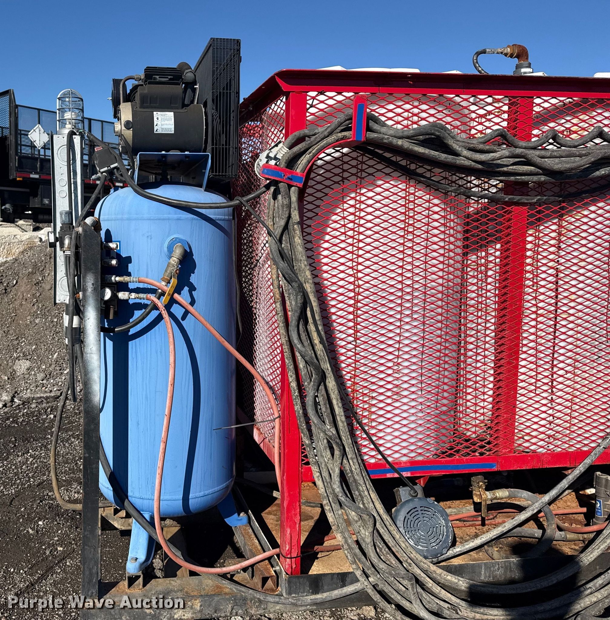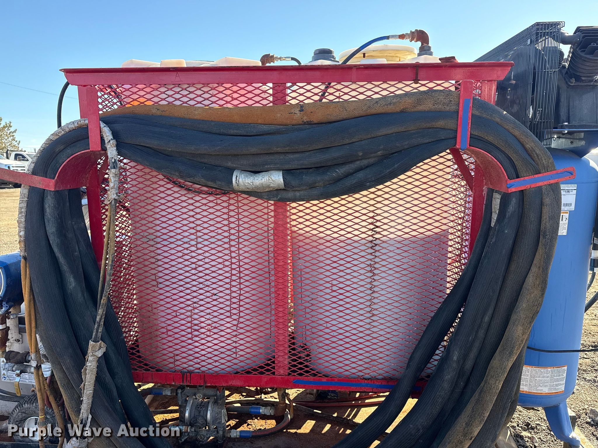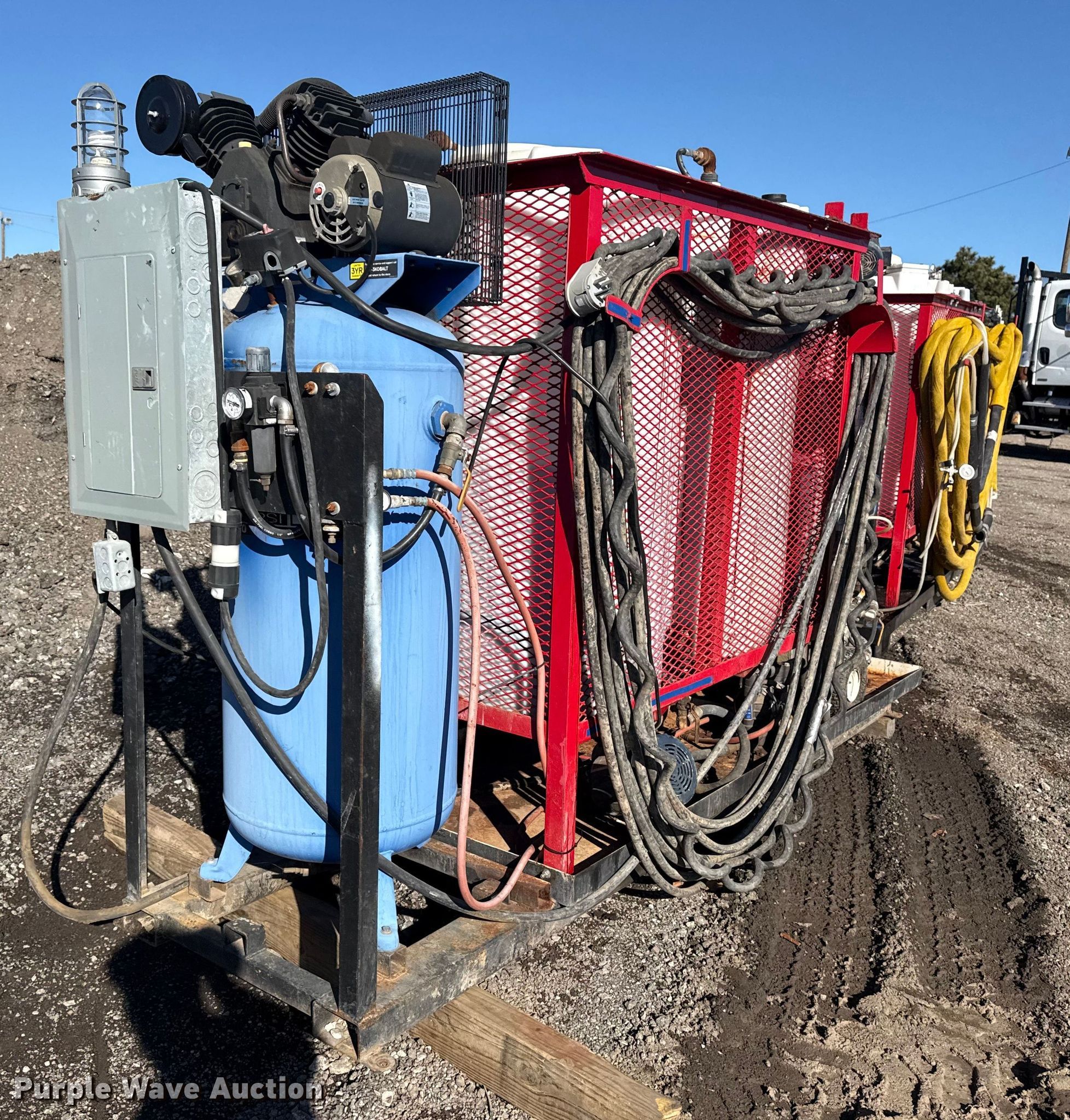 Purple Wave is selling a used Machine Shop Tools and Equip. in Oklahoma. This item is a Graco Reactor E-20 spray foam insulation machine with the following: Heater, Watts: 6000, Phase: Single, Volts: 230, (4) poly tanks, Kobalt air compressor, Phase: Single, Volts: 240, PSI: 175, Tank, Capacity: 60 gallons, Hose, Breaker box