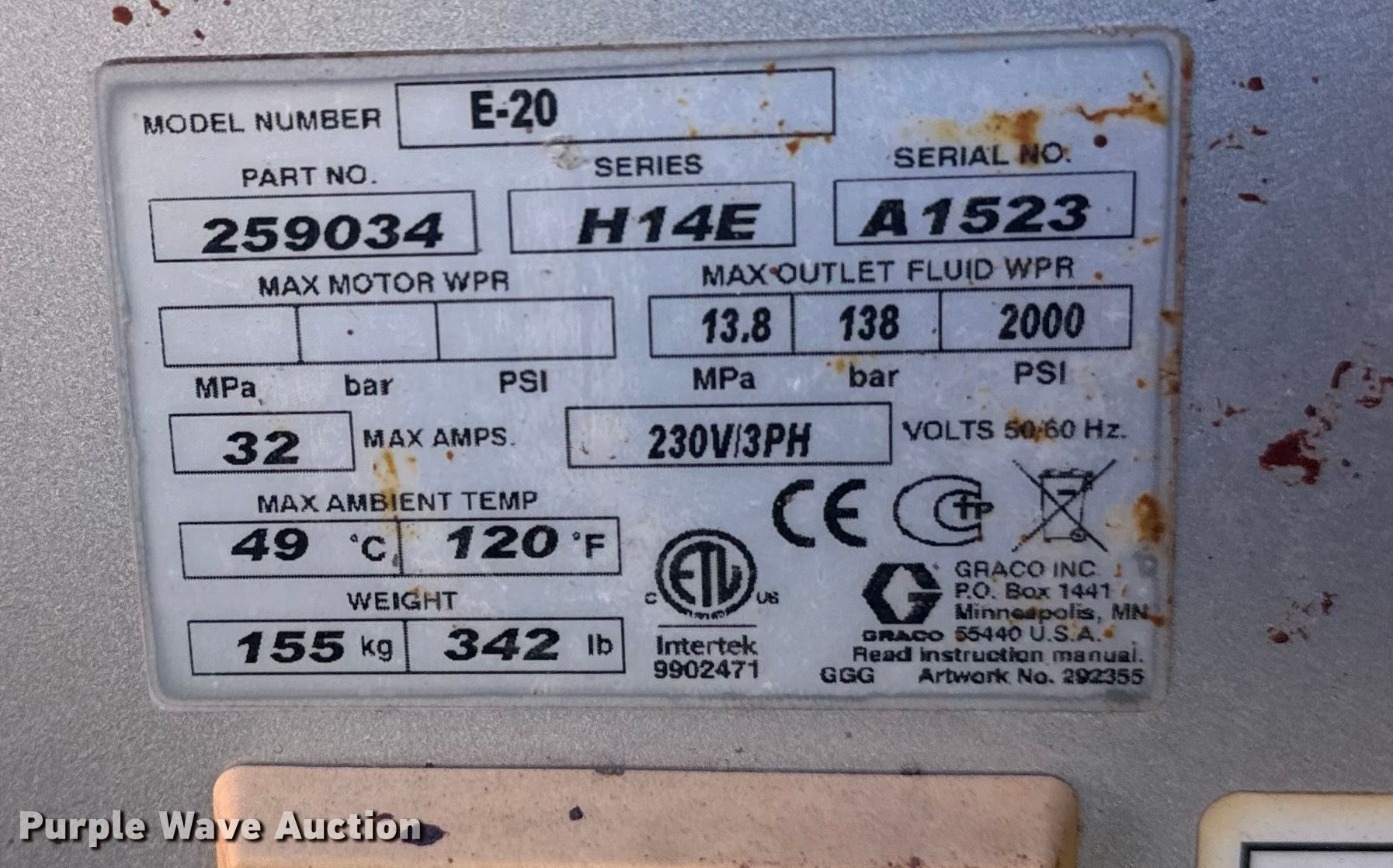 Take a look at this used Graco Reactor E-20 spray foam insulation machine being sold on March 11th, 2026 in the Wednesday March 11 Vehicles and Equipment Auction made by Graco. Take a look at all of the item information below or take a look at similar auctions for Machine Tools.