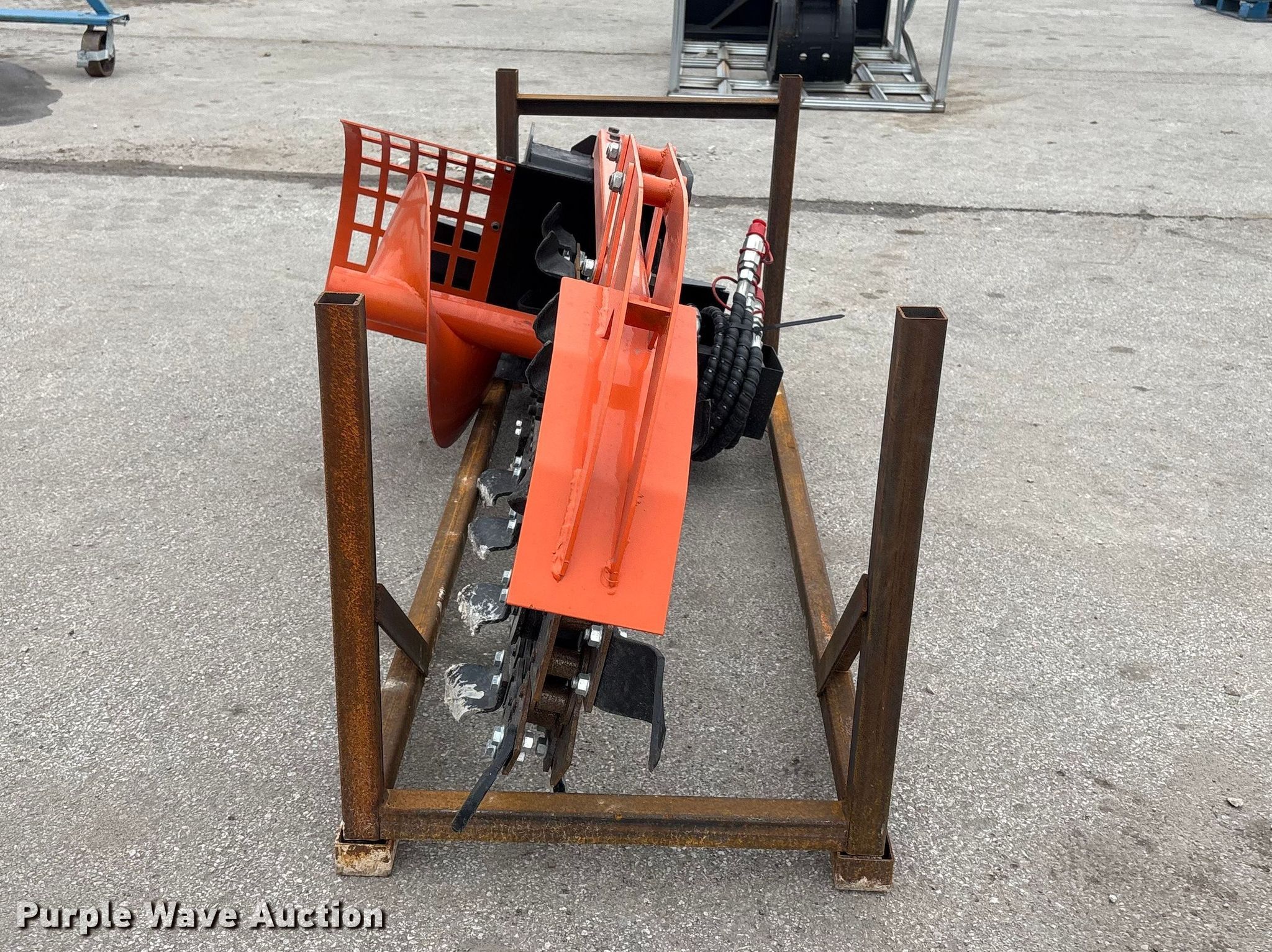 Purple Wave is selling a used Skid Steer Attach. in Nebraska. This item is a 2025 Giyi D39 skid steer trencher with the following: Serial: F-XKGJ2510103, Estimated dig depth: 39", Cutting width: 8", Teeth: Dirt, Crumber