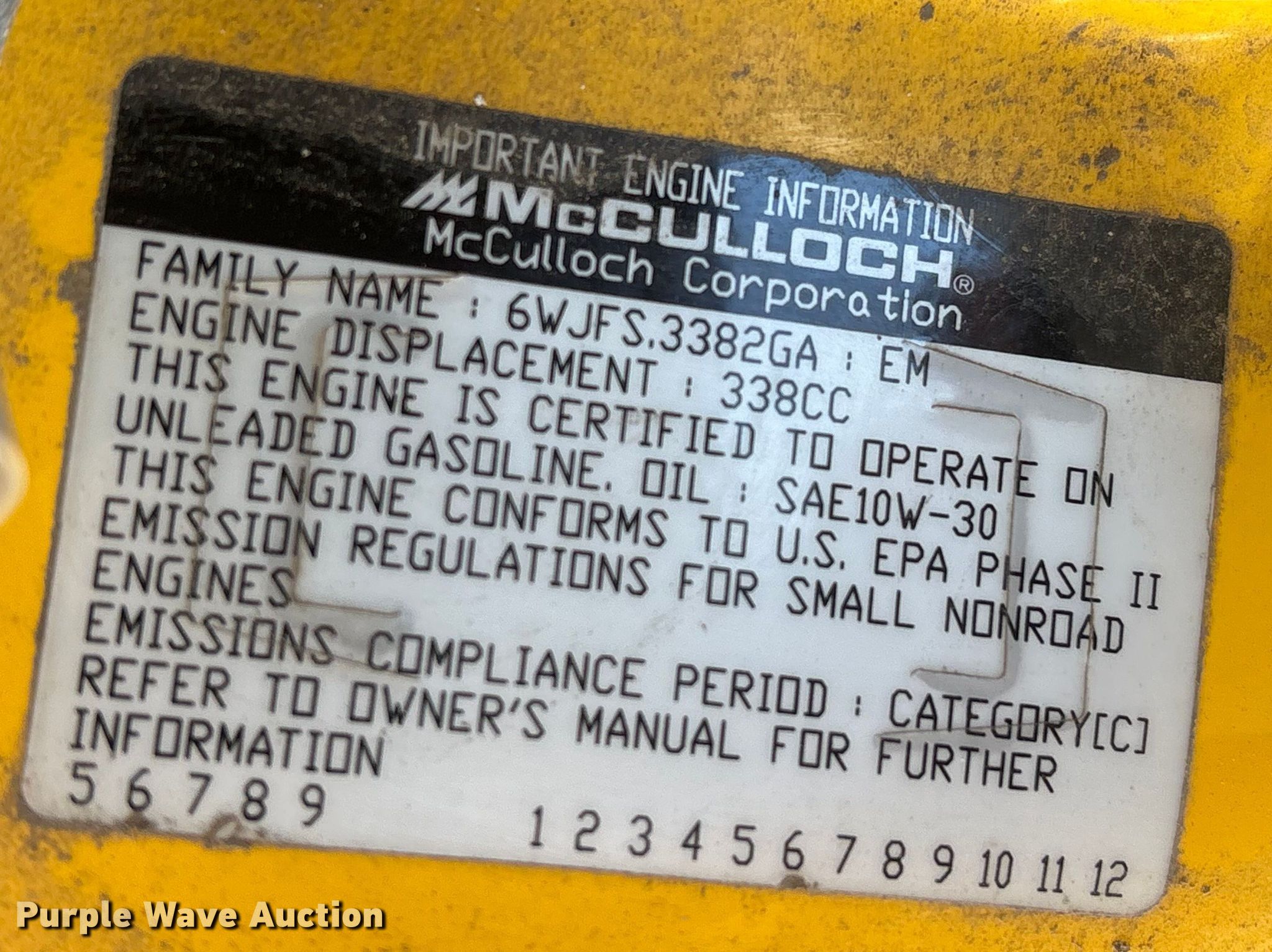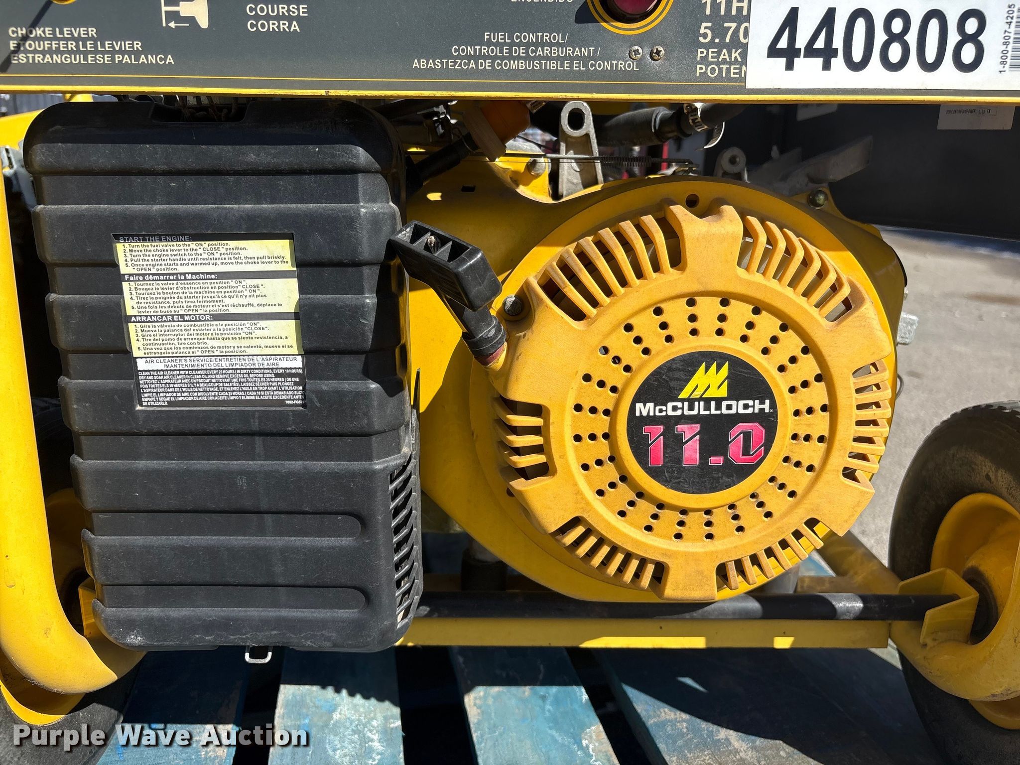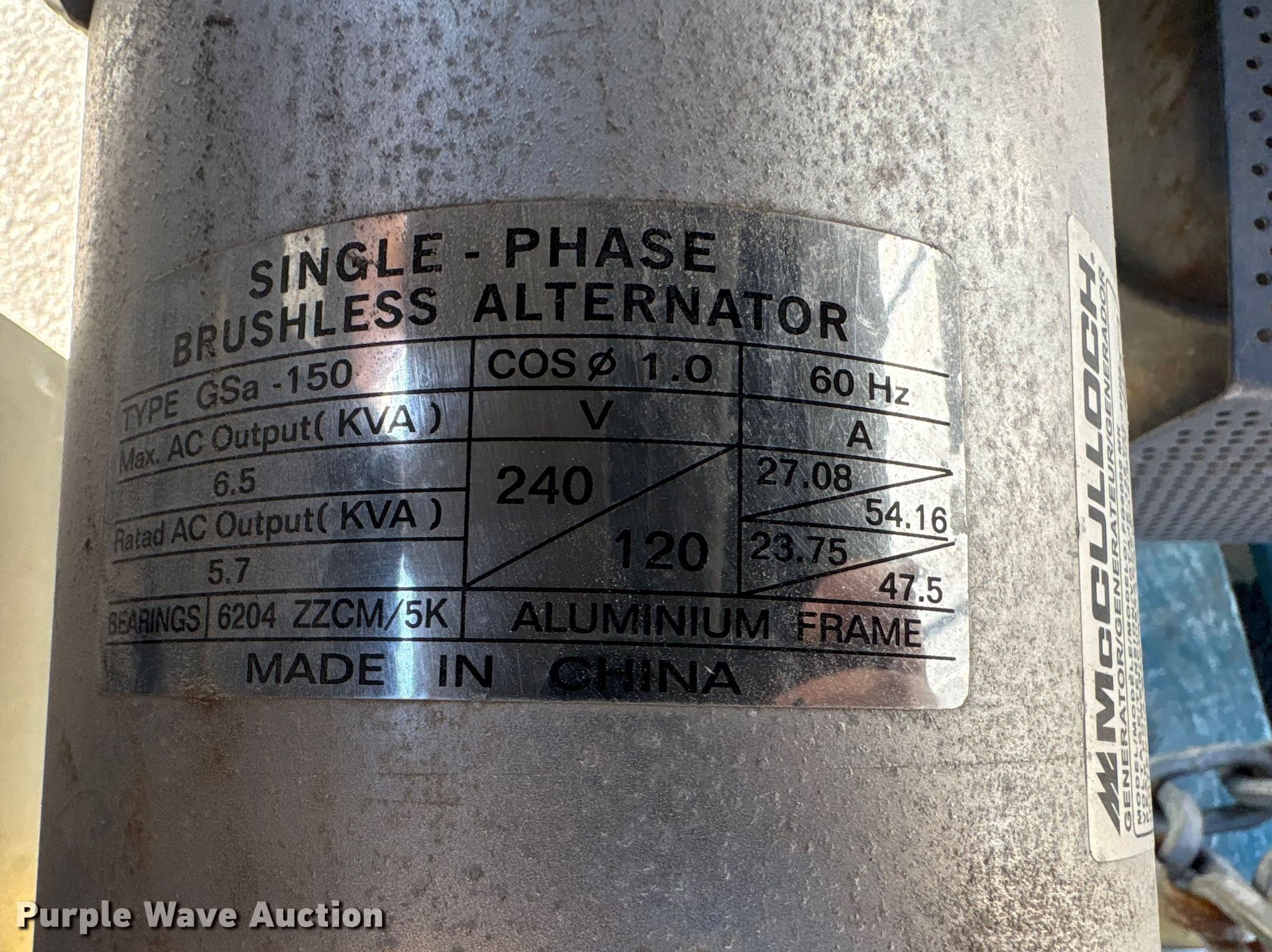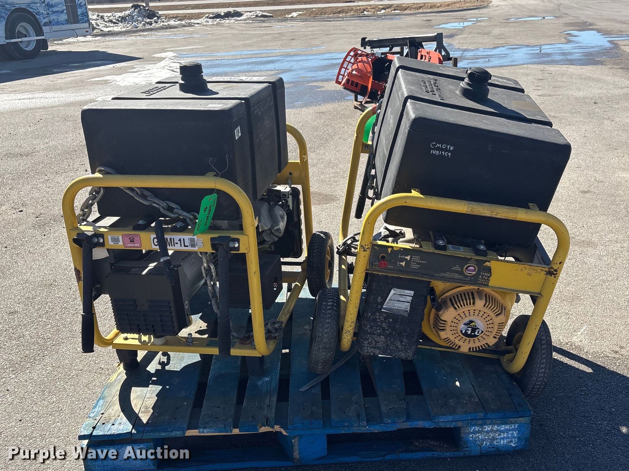 Purple Wave is selling a used Generator Set in Nebraska. This item is a (2) McCulloch FG6000MKUD-C generators with the following: Serial: 2006100-16187, Serial: 2006H00 14515, Dimensions: 30" L x 27" W x 32" H