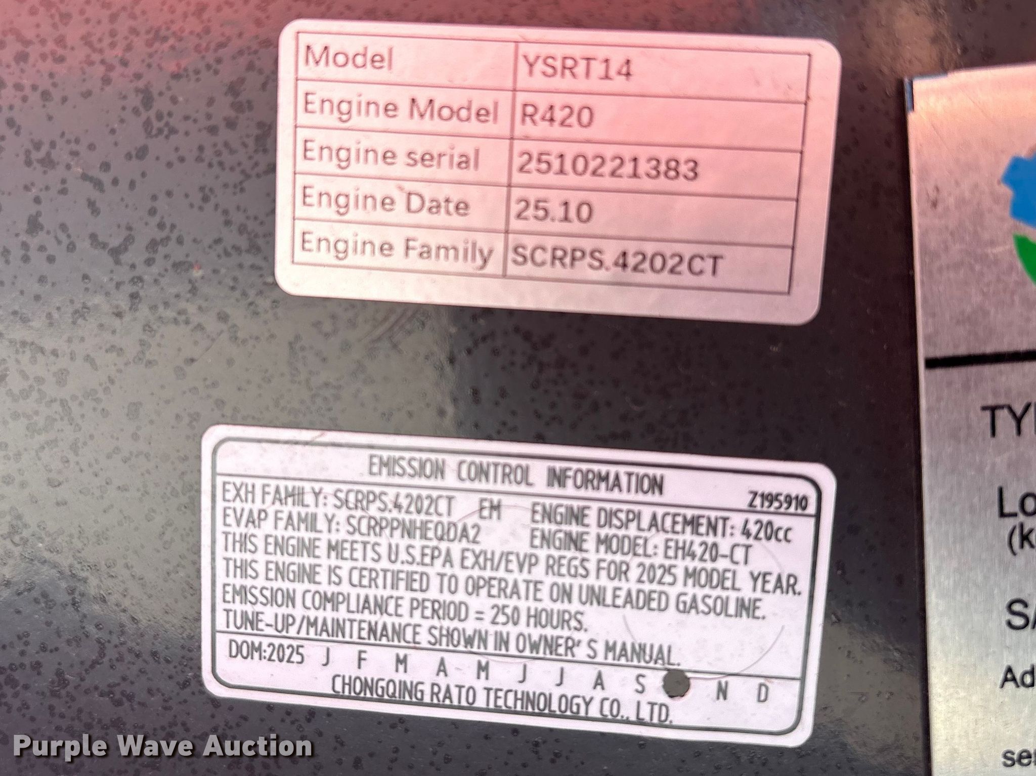 - Serial: YSRT142025L110834