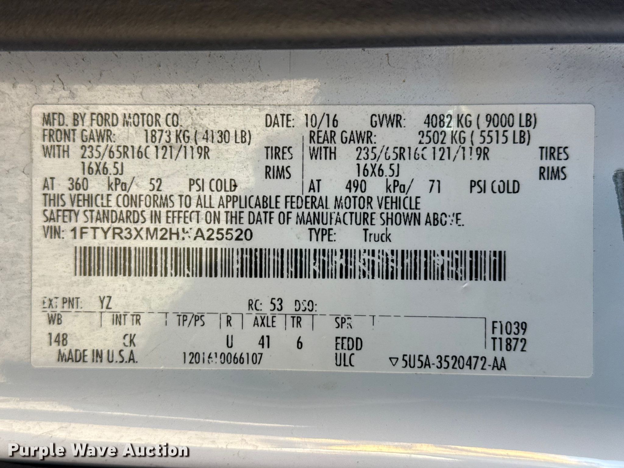 - VIN: 1FTYR3XM2HKA25520