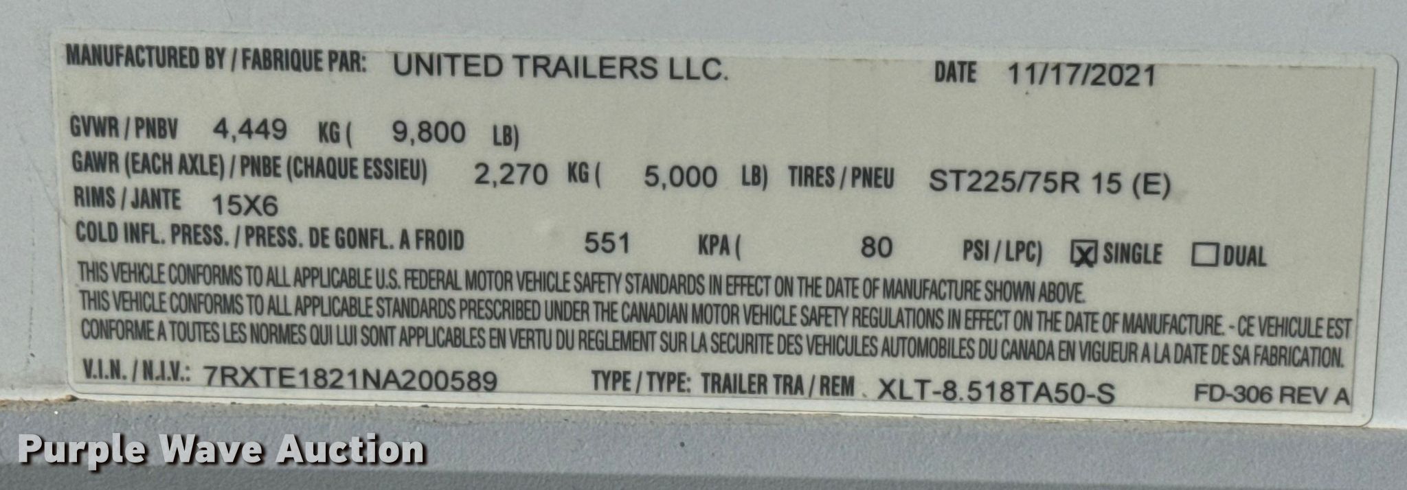 Take a look at this used 2022 United Trailers LLC enclosed cargo trailer being sold on March 11th, 2026 in the Wednesday March 11 Vehicles and Equipment Auction made by United Trailers LLC. Take a look at all of the item information below or take a look at similar auctions for Trailers.
