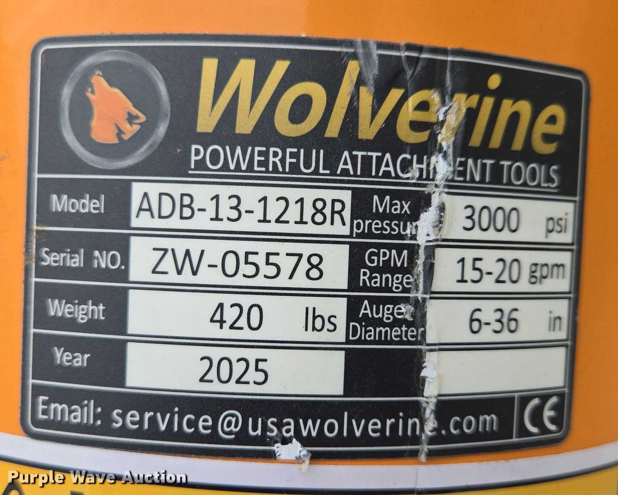 This 2025 Wolverine ADB-13-1218R skid steer auger will sell to the highest bidder regardless of price.