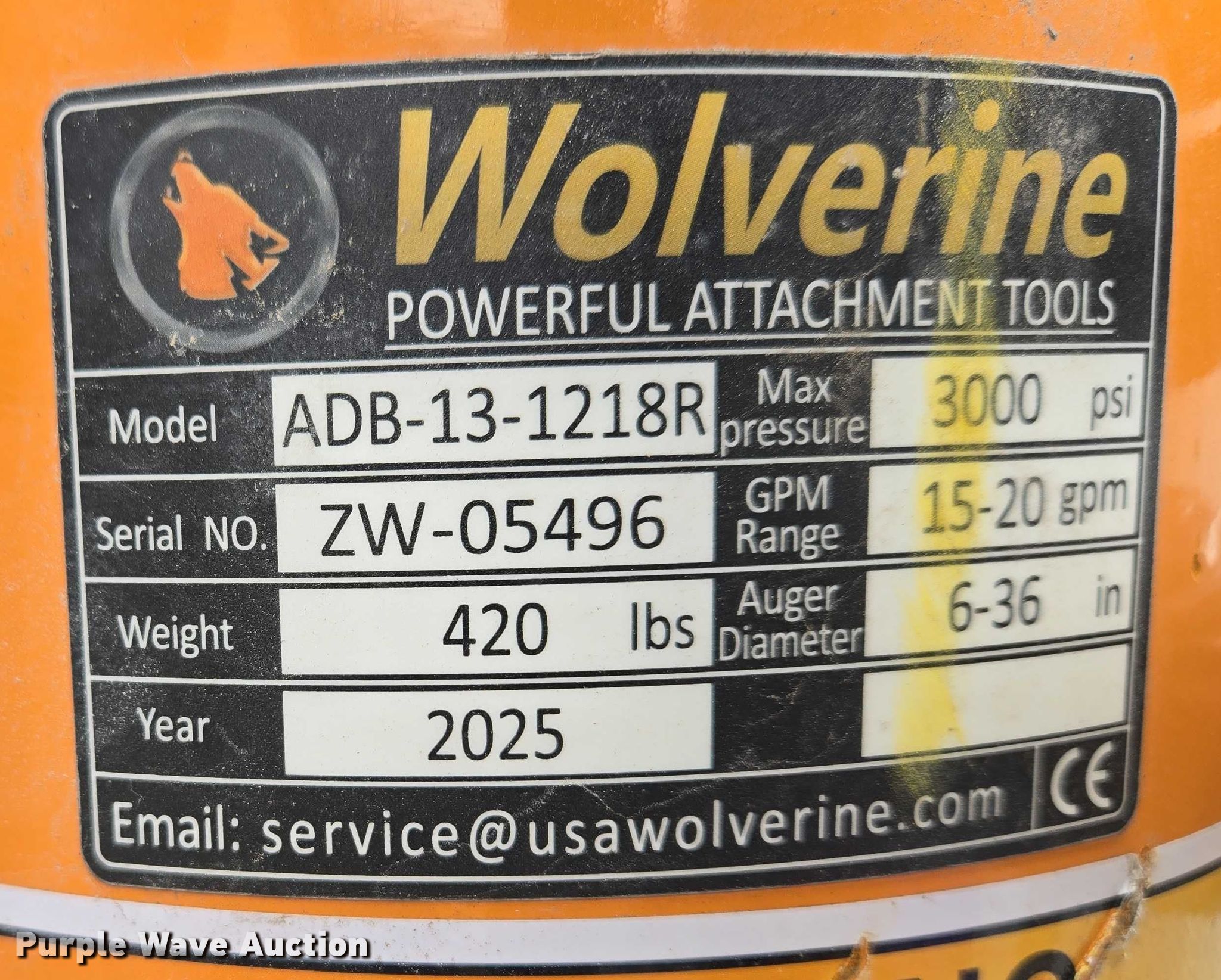 This 2025 Wolverine ADB-13-1218R skid steer auger will sell to the highest bidder regardless of price.