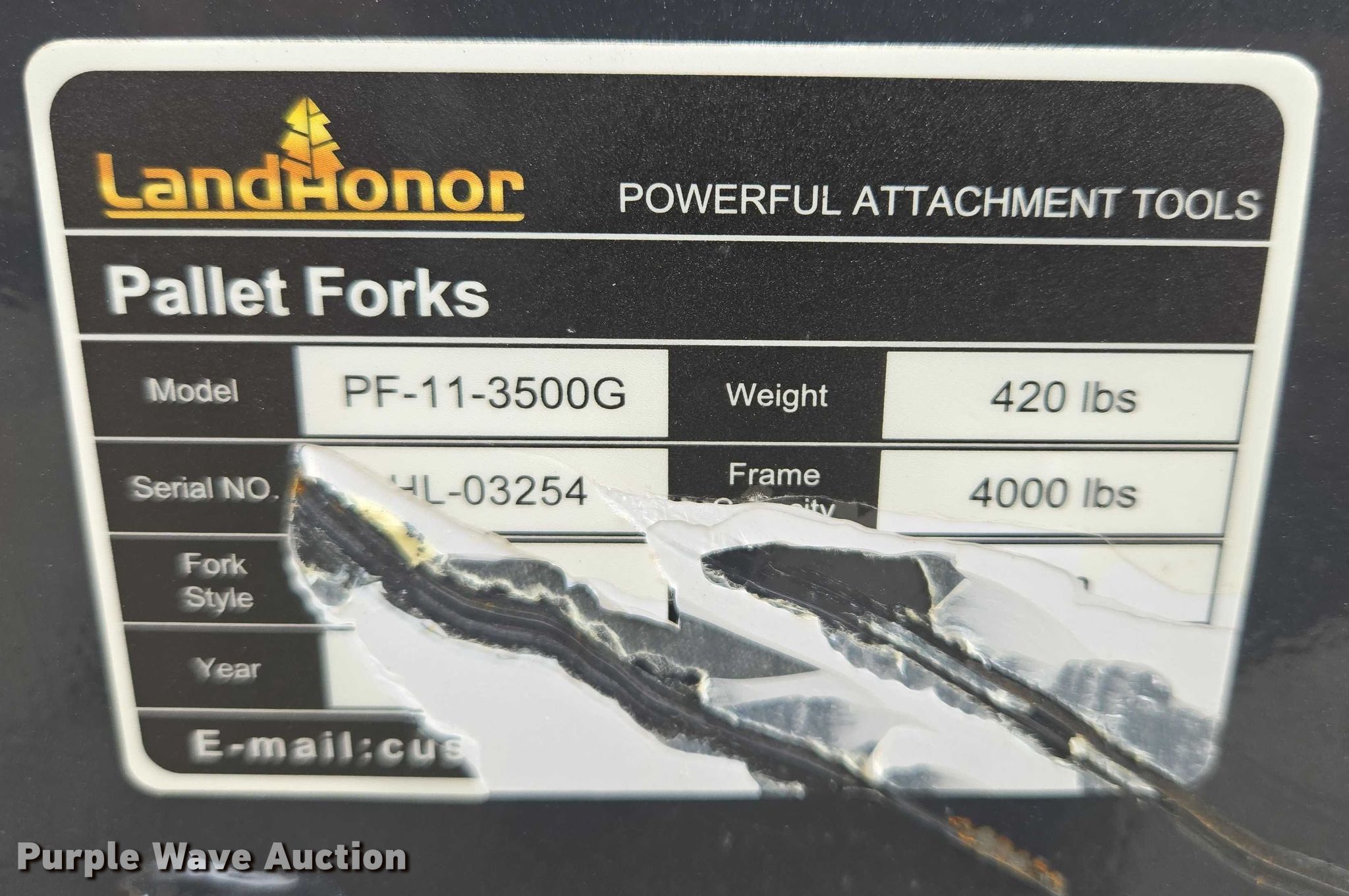 Purple Wave is selling a used Skid Steer Attach. in Nebraska. This item is a 2025 LandHonor PF-11-3500G skid steer forks with the following: Serial: HL-03254, Length: 42"