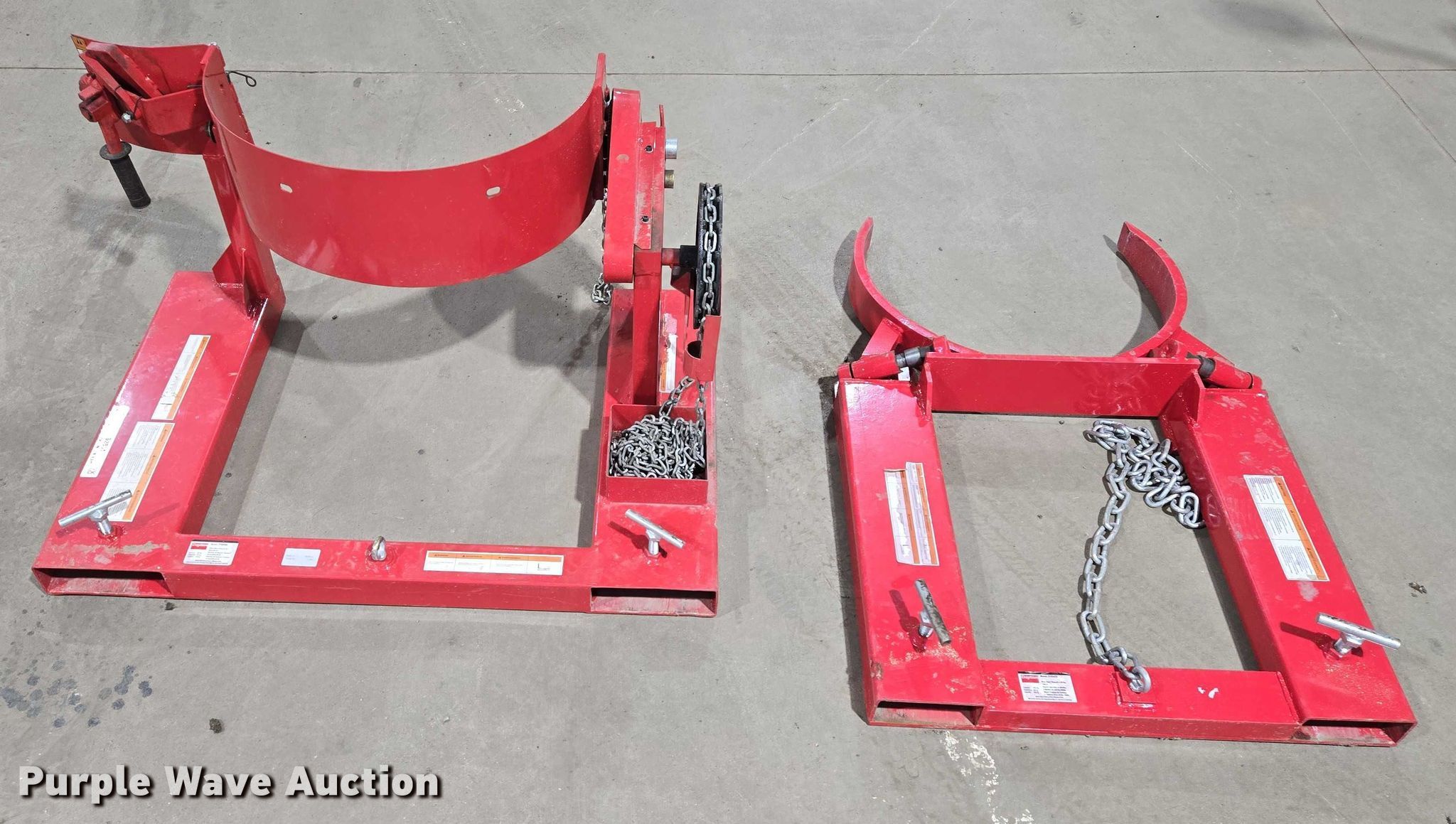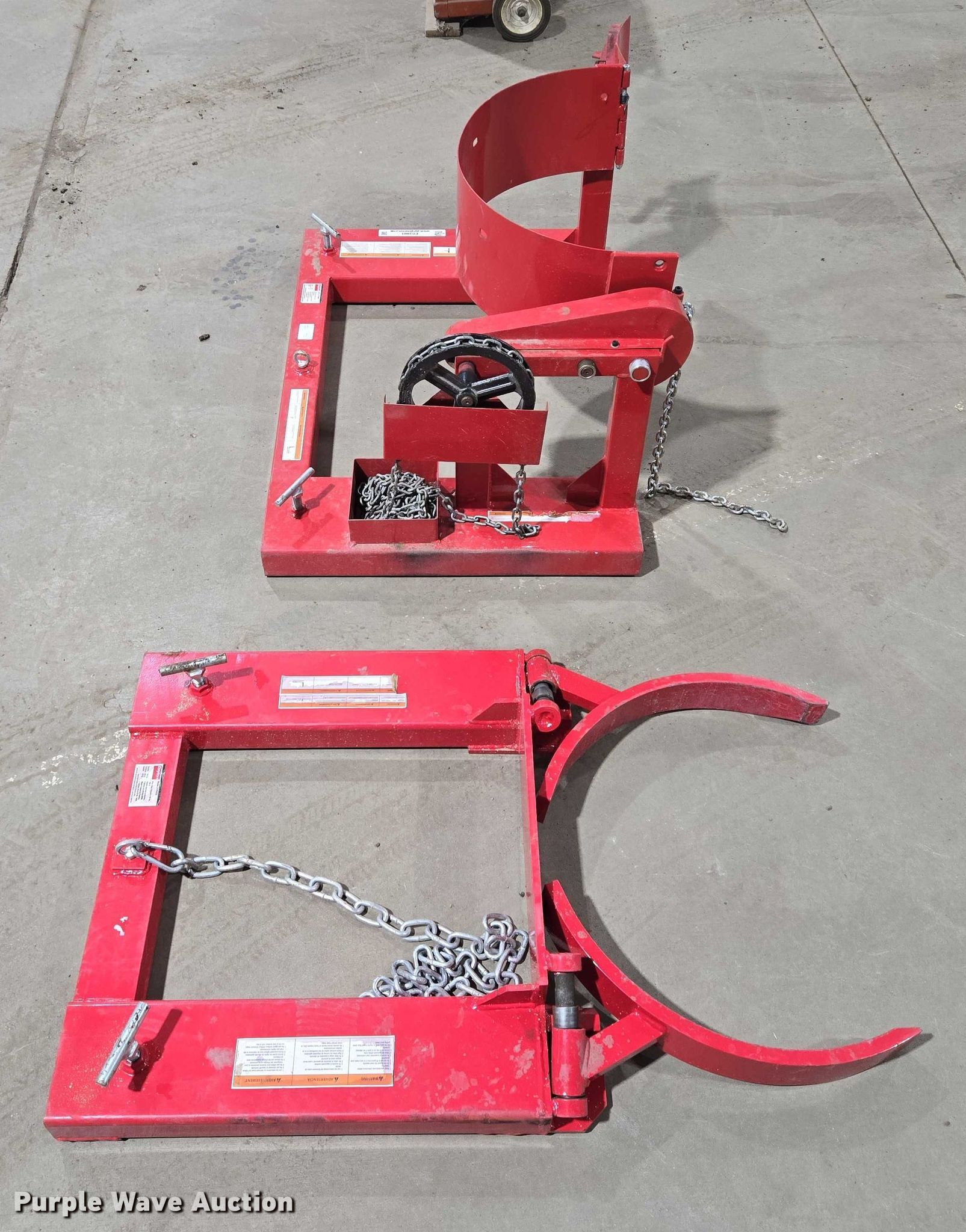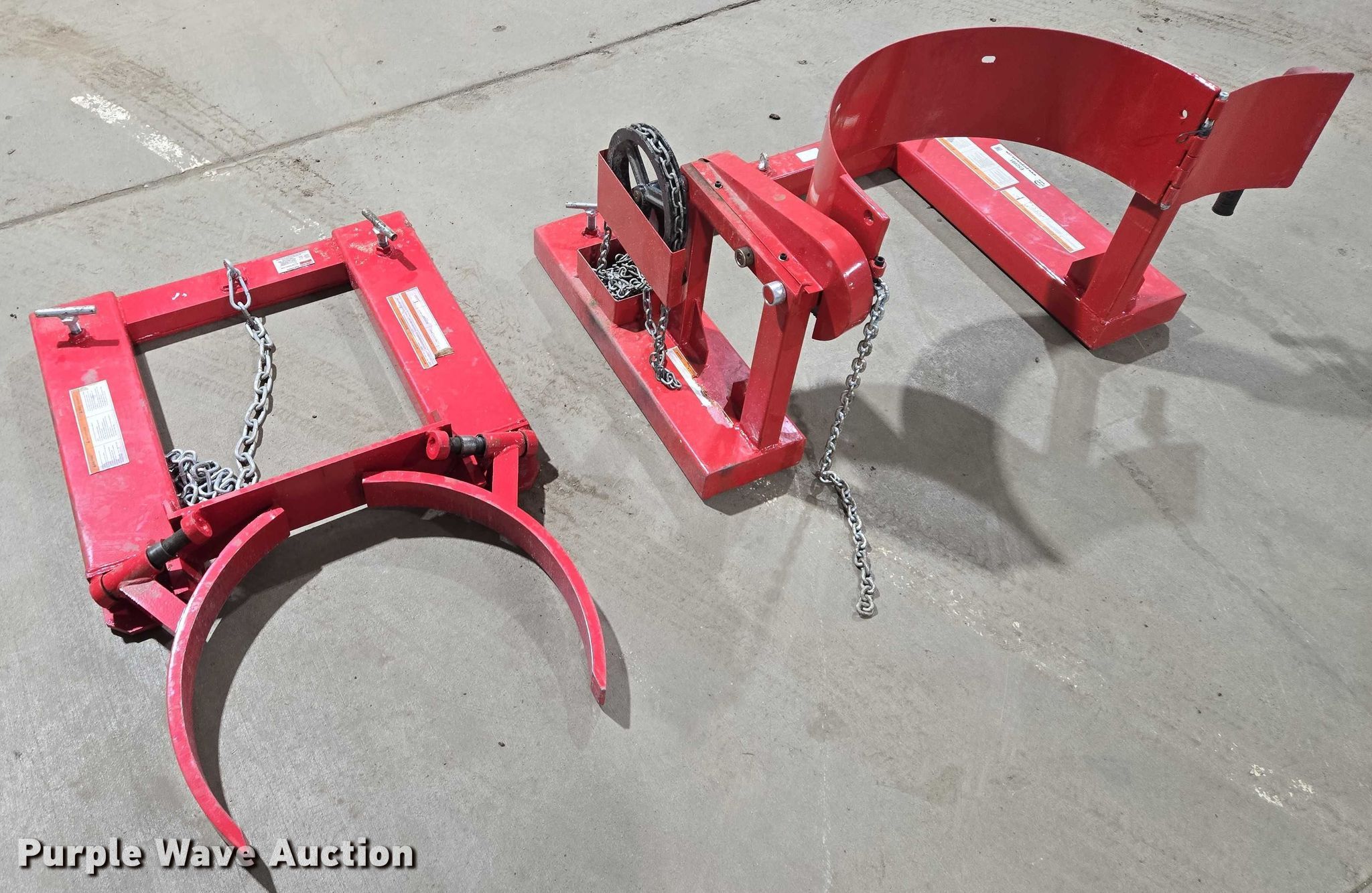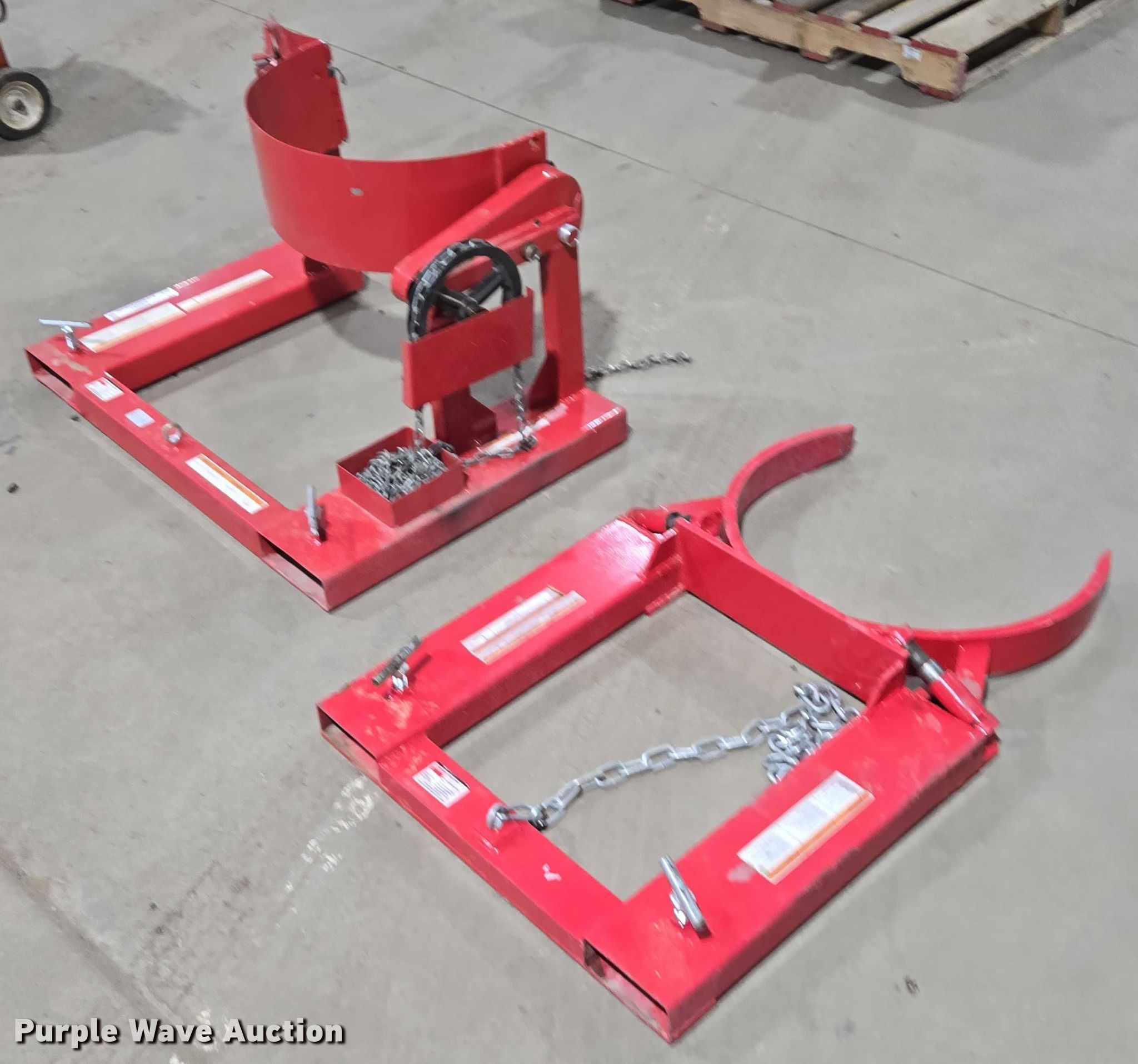 Purple Wave is selling a used Forklift Attach. in South Dakota. This item is a Forklift attachments with the following: Dayton 21VG49A drum lifter, Capacity: 800 lbs, Dayton 21VG42A drum grabber, Capacity: 1,000 lbs
