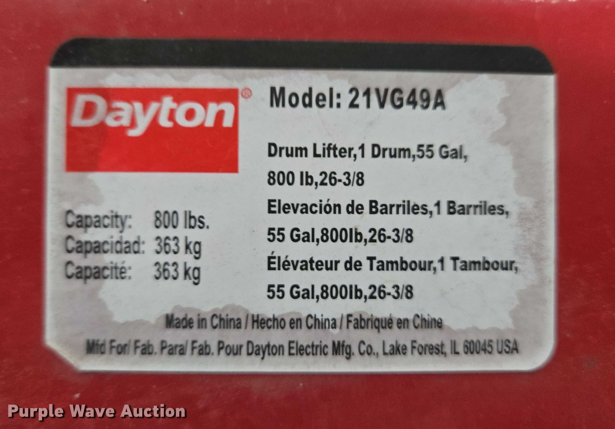 - Dayton 21VG49A drum lifter