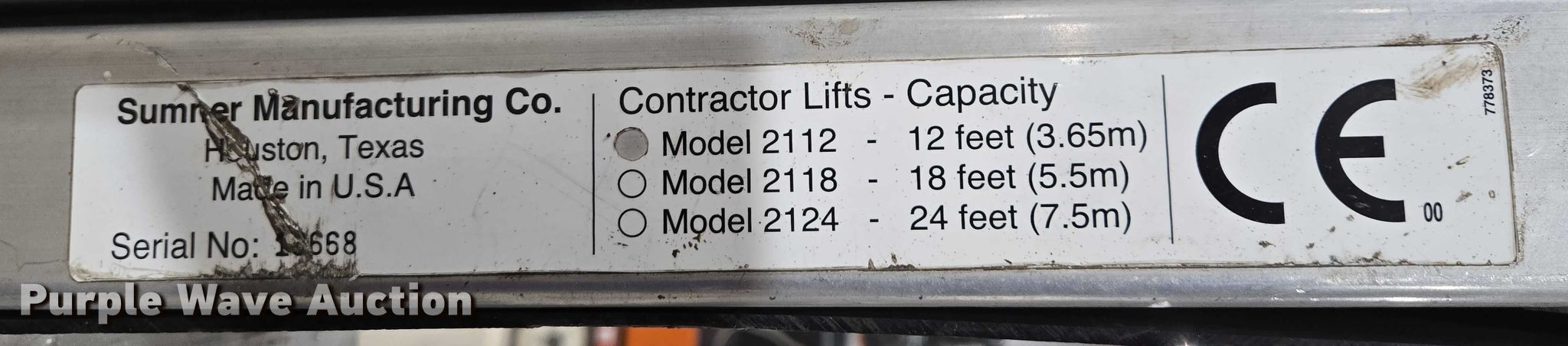 Purple Wave is selling a used Tools in South Dakota. This item is a (2 panel )lifts with the following: Summer 2112, Lift height: 12', Capacity: 650 lbs, Hi Jack, Capacity: 500 lbs