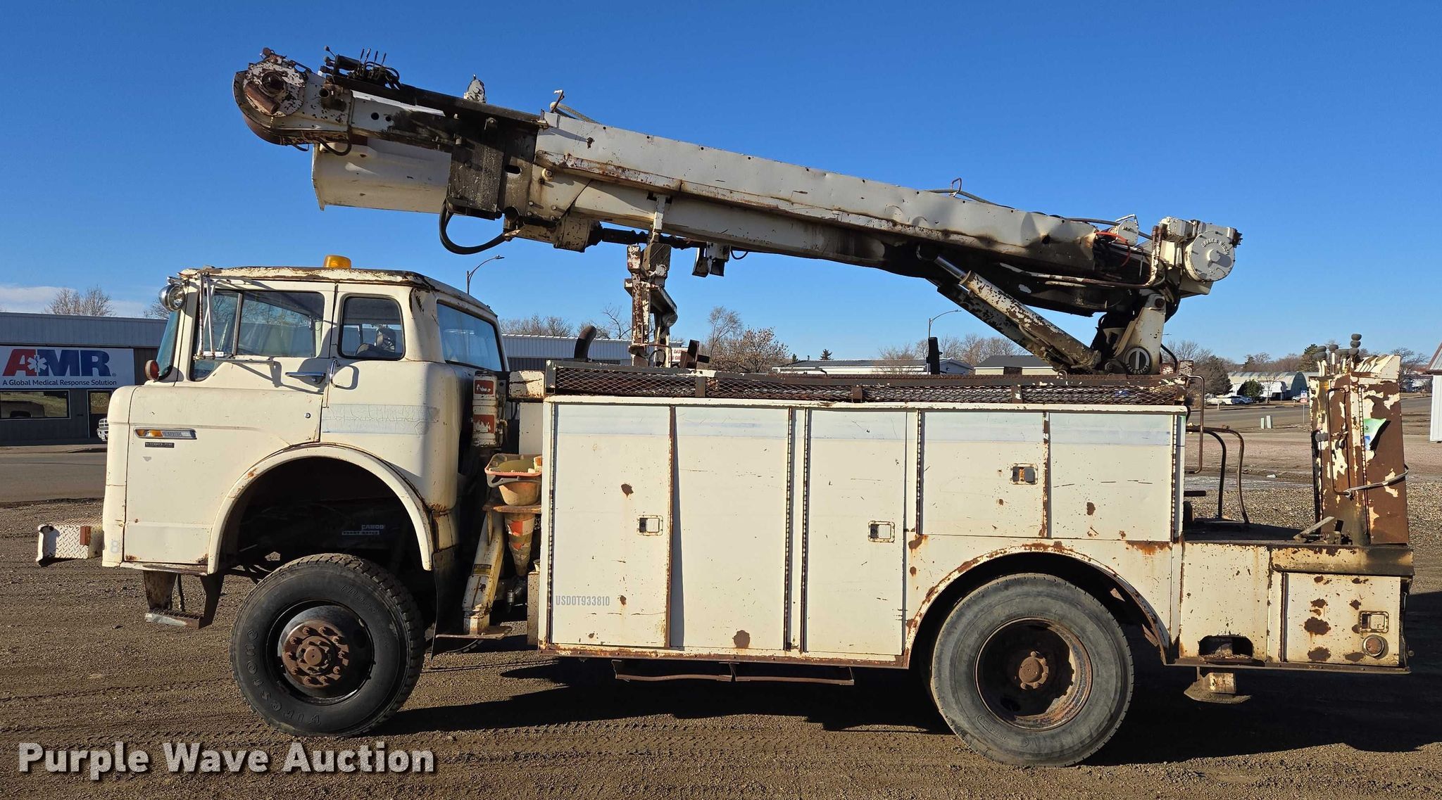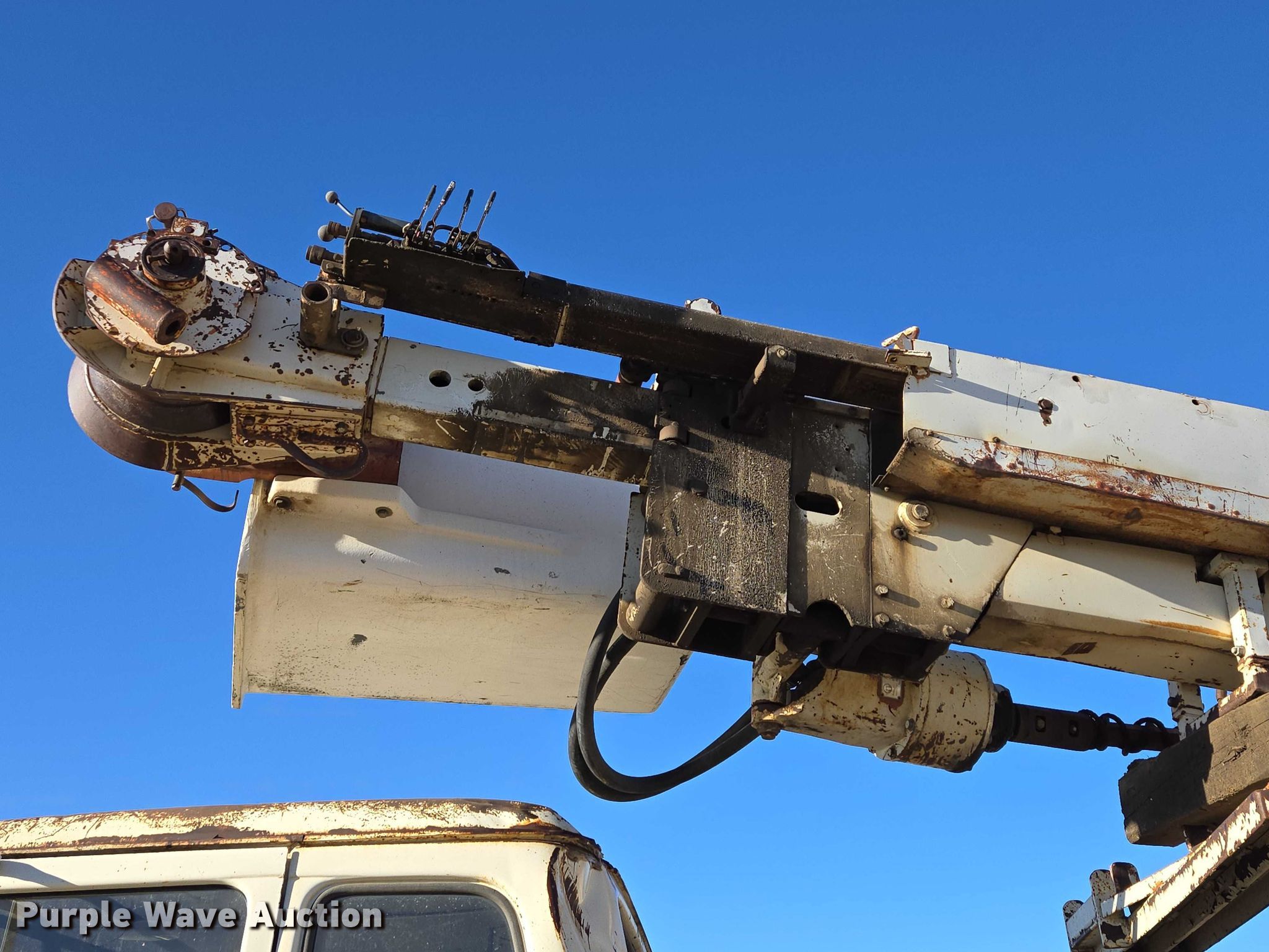This 1981 Ford 900 digger derrick truck will sell to the highest bidder regardless of price.