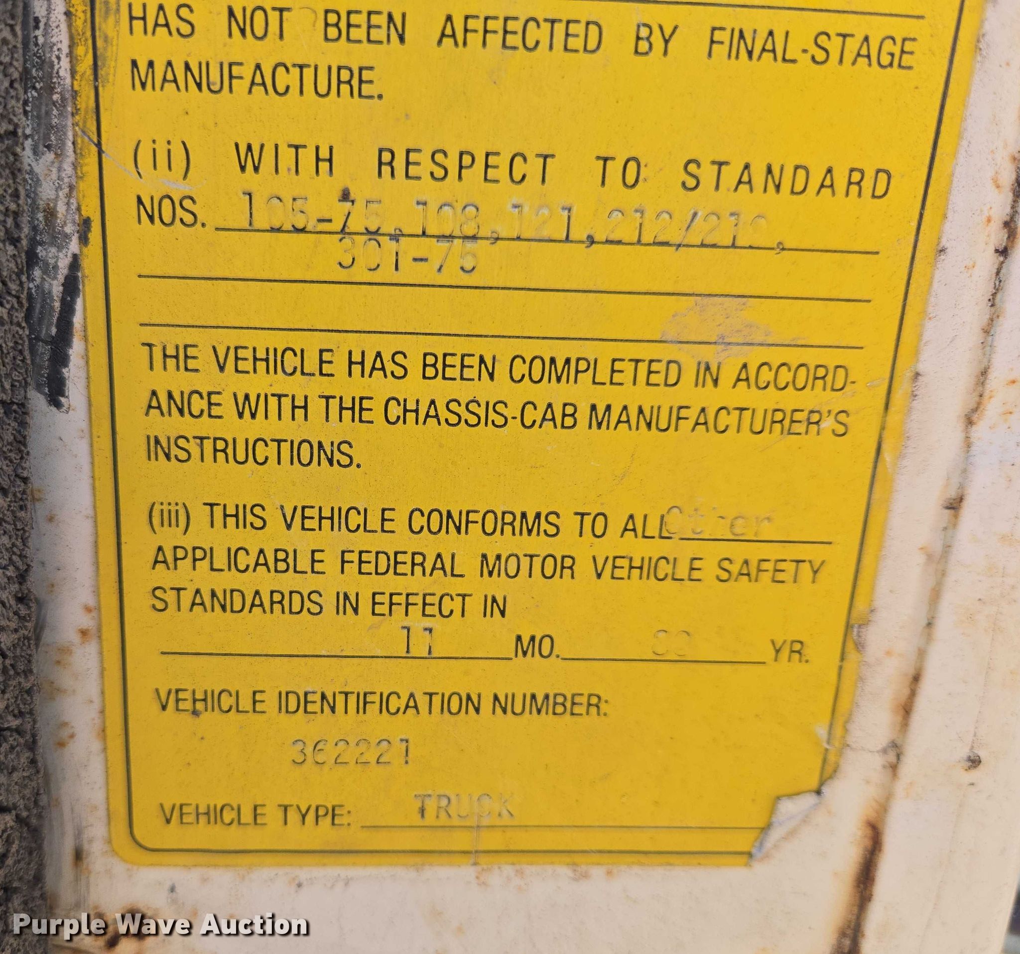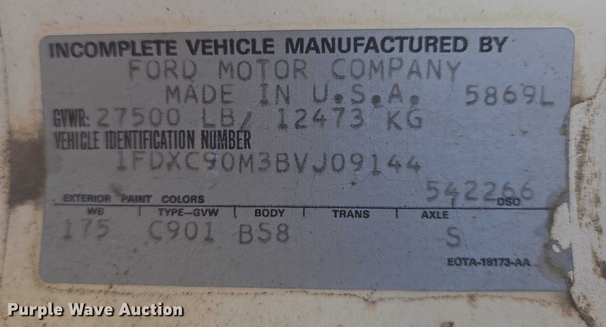 - VIN: 1FDXC90M3BVJ09144