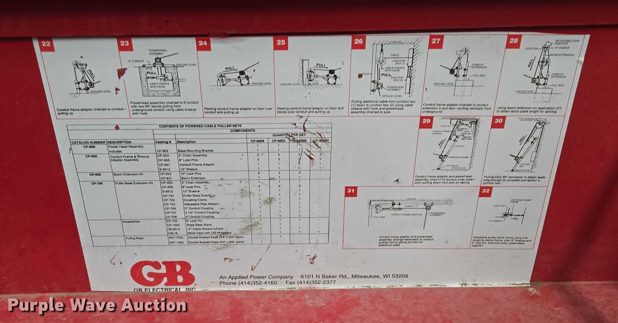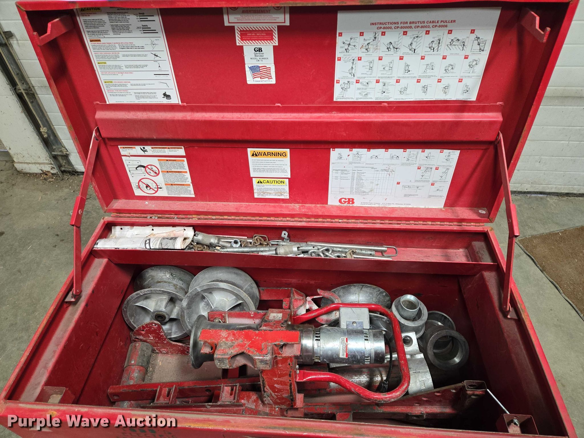 Purple Wave is selling a used Tools in South Dakota. This item is a Gardner Bender CP800 cable puller with the following: Job box
