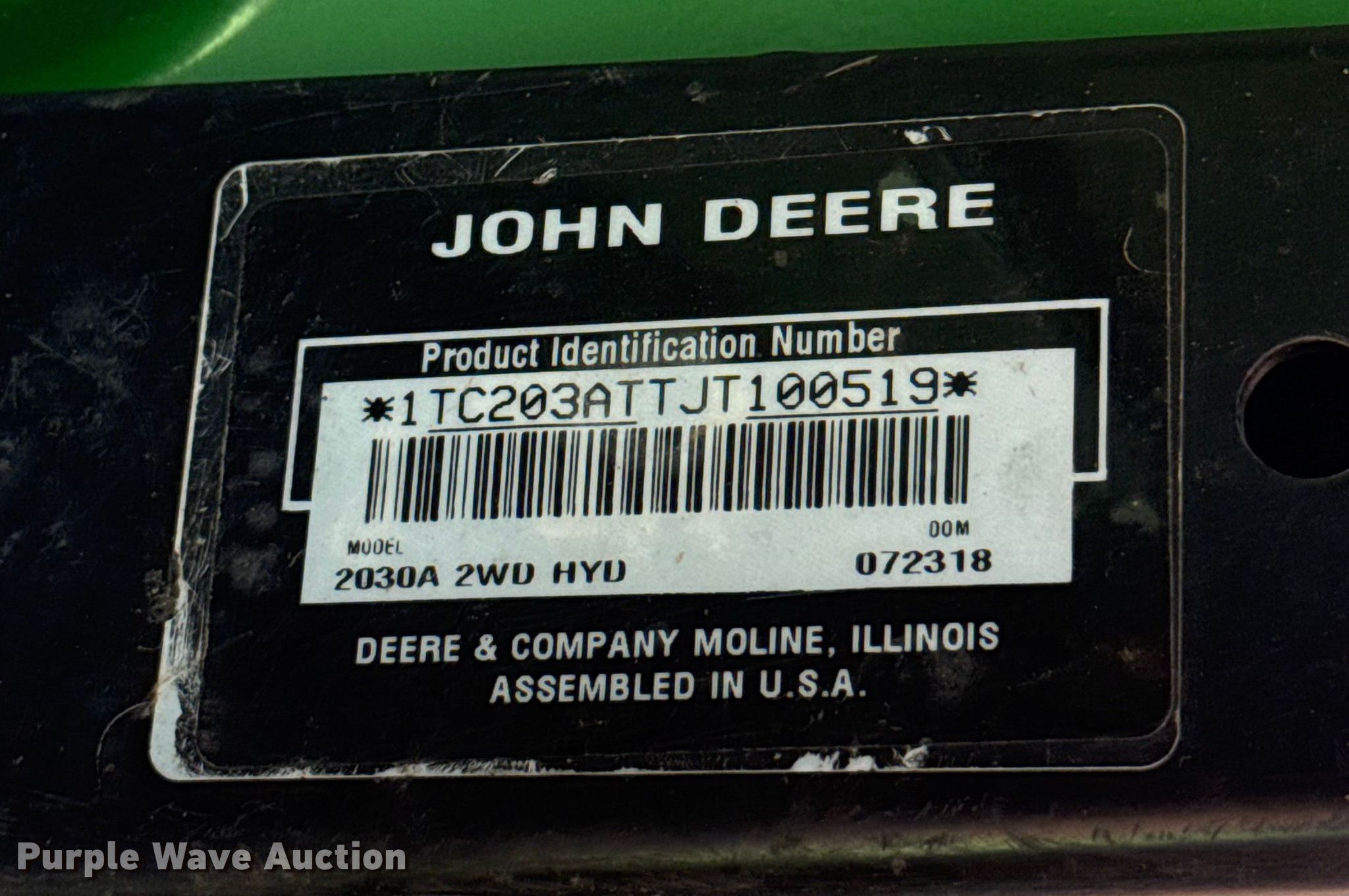 2018 John Deere 2030A utility vehicle | Wednesday March 11 Vehicles and Equipment Auction