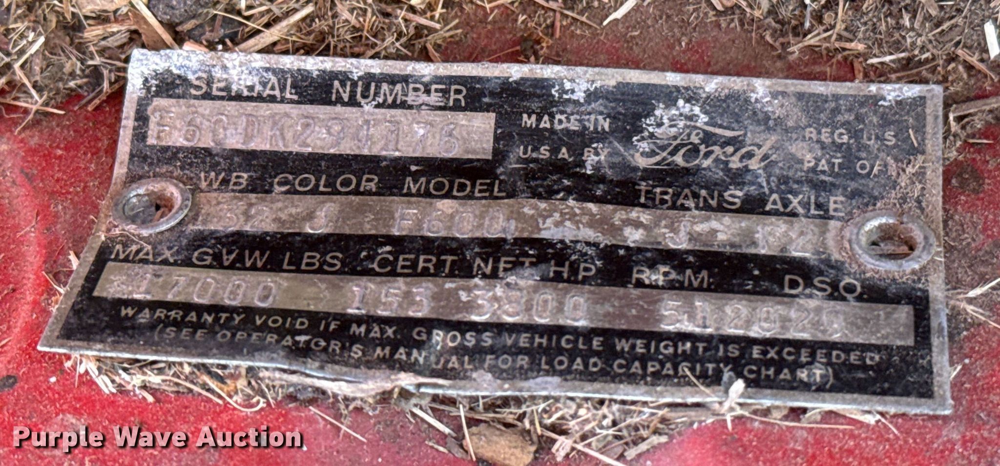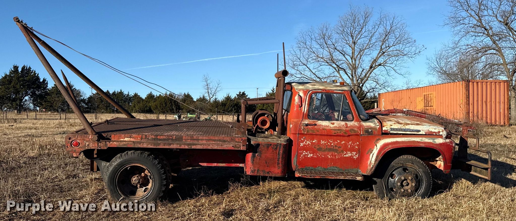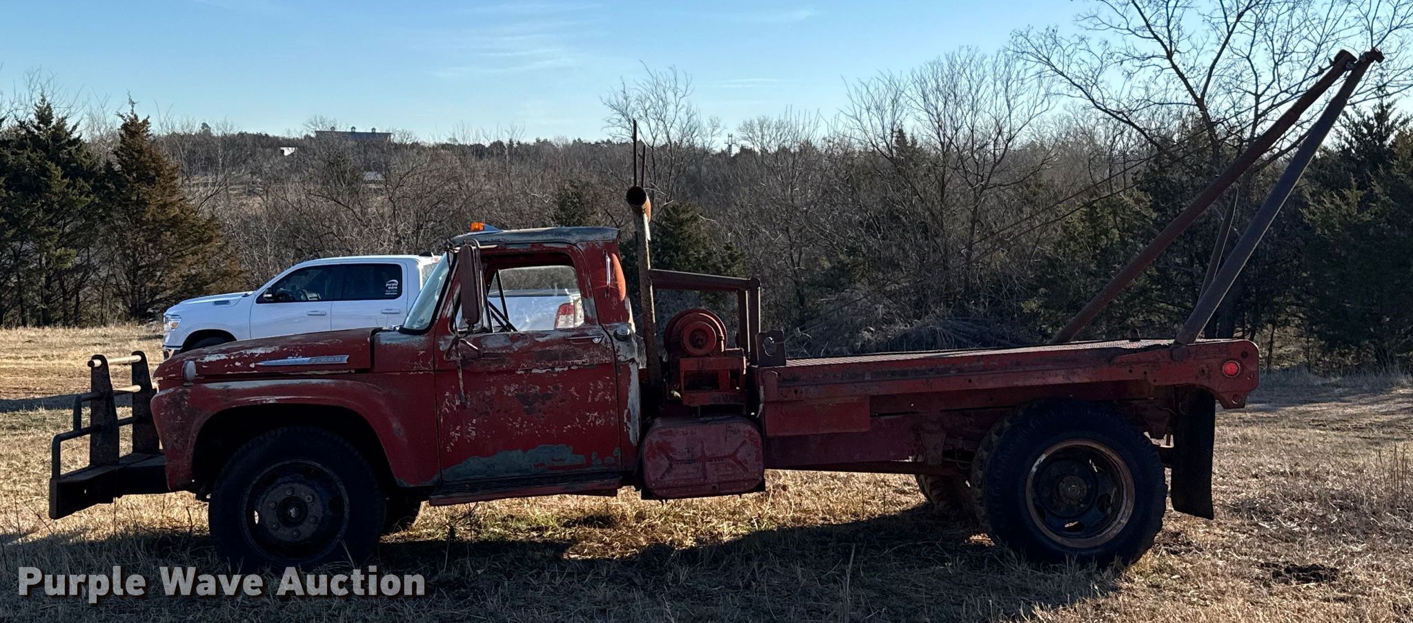 Purple Wave is selling a used Oilfield Truck in Oklahoma. This item is a 1962 Ford F600 winch truck with the following: Miles: 63,893 on odometer, VIN: F60DK294176
