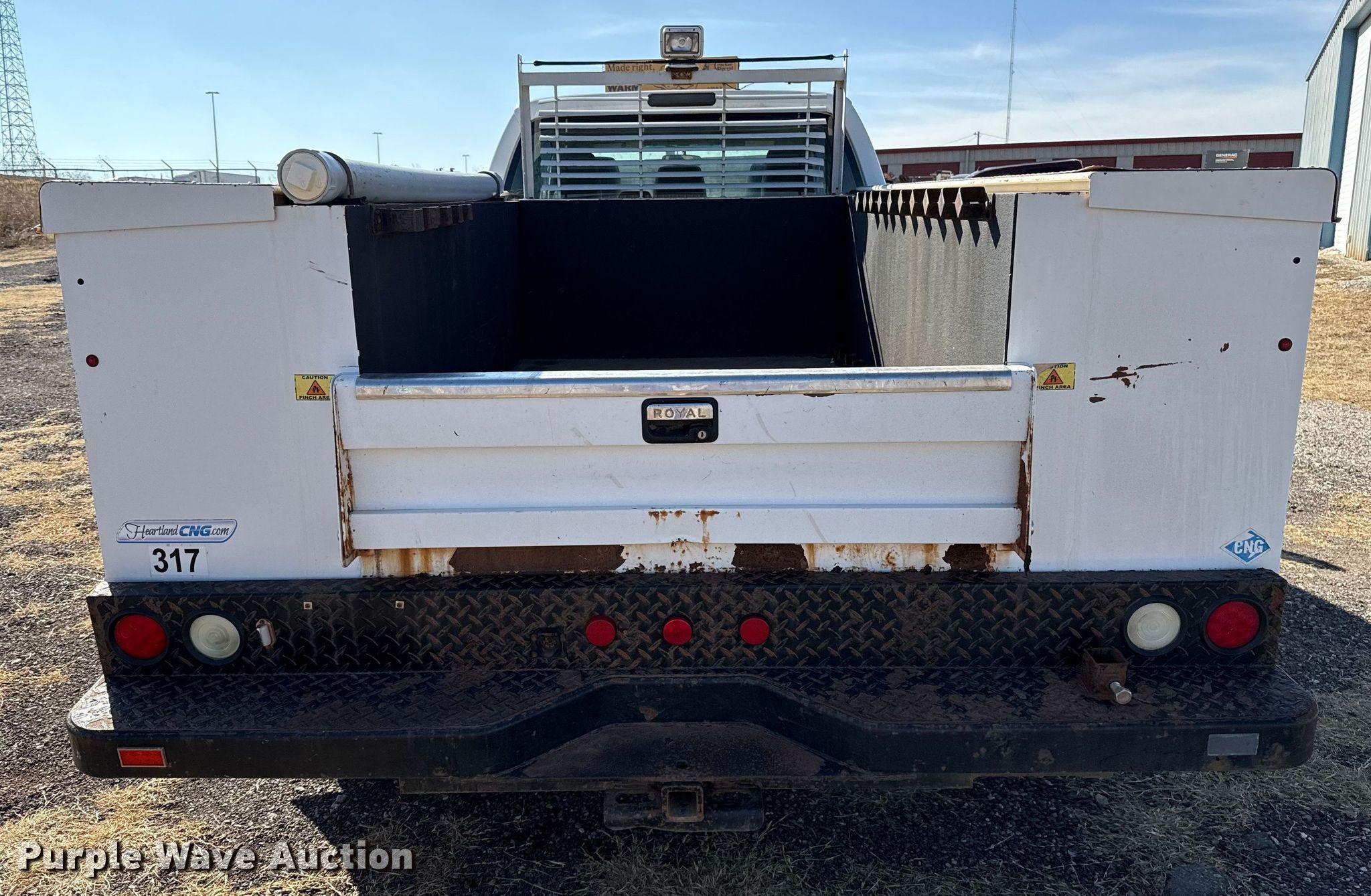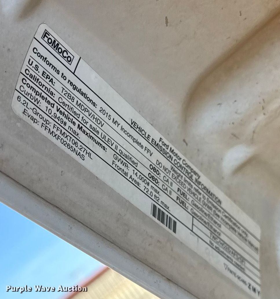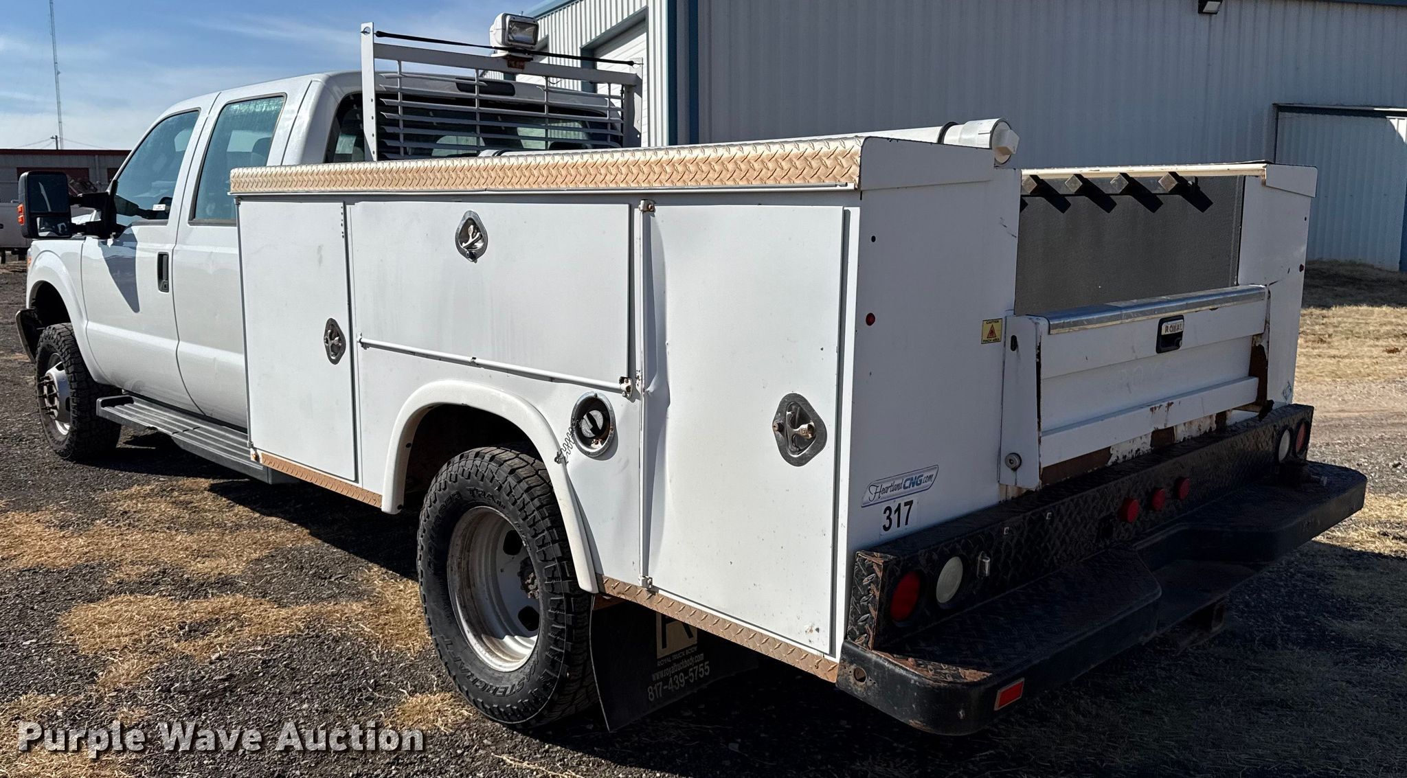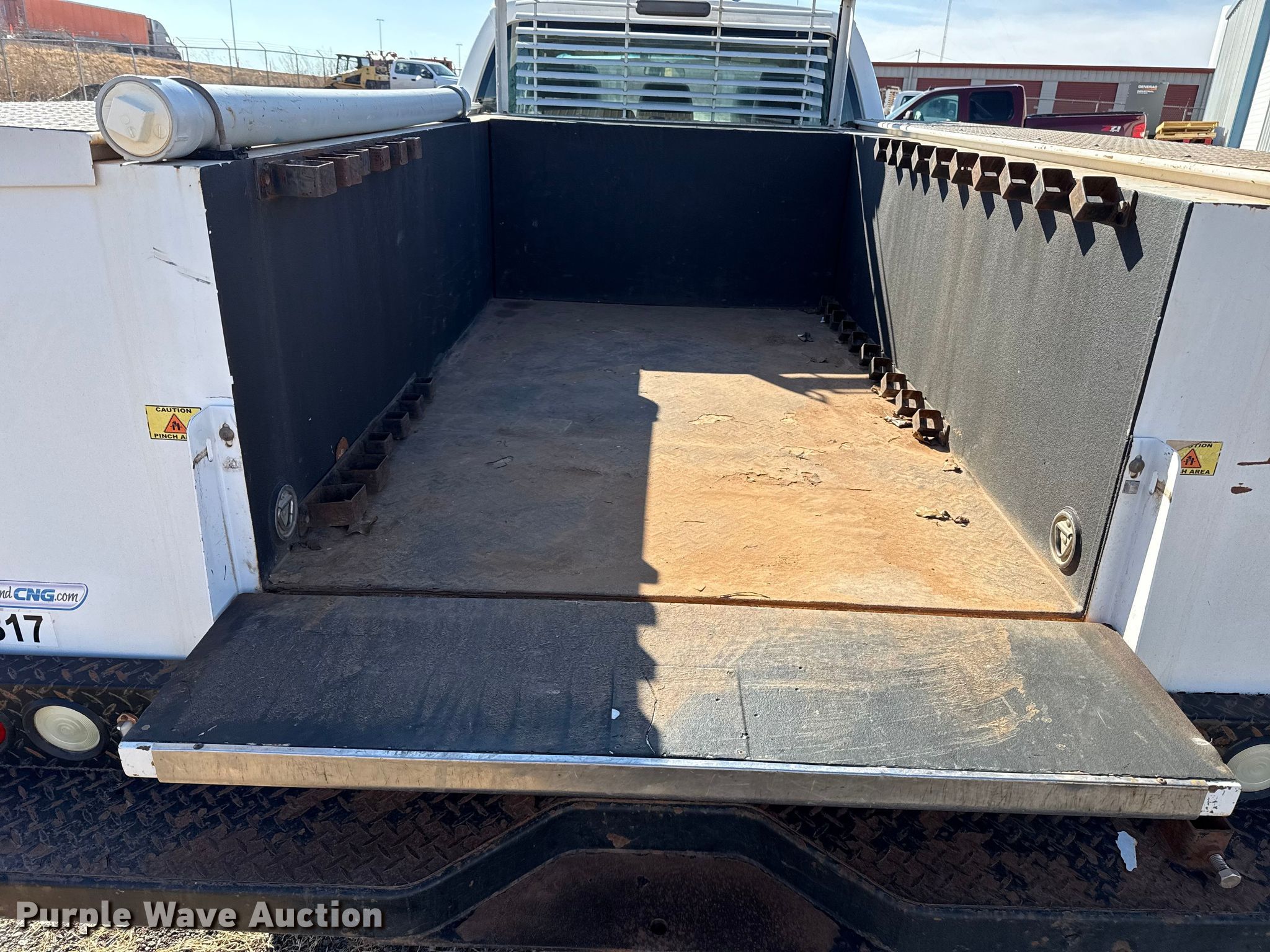 2015 Ford F350 Super Duty Crew Cab utility bed pickup truck. Miles: 302,173 on odometer, VIN: 1FD8W3H68FEB77625. Engine Displacement: 6.2L, Cylinders: 8, Fuel type: Gas. Transmission Automatic, Four wheel drive. Interior AC, Heat, Heated mirrors, Power windows, Power locks, Cruise control, Auxiliary controls, Brake controller. Features Bed Utility bed, Royal, Length: 9', Width: 94". Tires Size: LT265/70R17. Notes CNG disconnected, Dash warning indicator: Check engine, Windshield chipped or cracked, Radio screen damaged, Back right utility bed door difficult to open. Oklahoma title. Title distribution may be delayed up to 14 days from verification of funds. Jackson Electrical Construction. Wellston, OK 74881