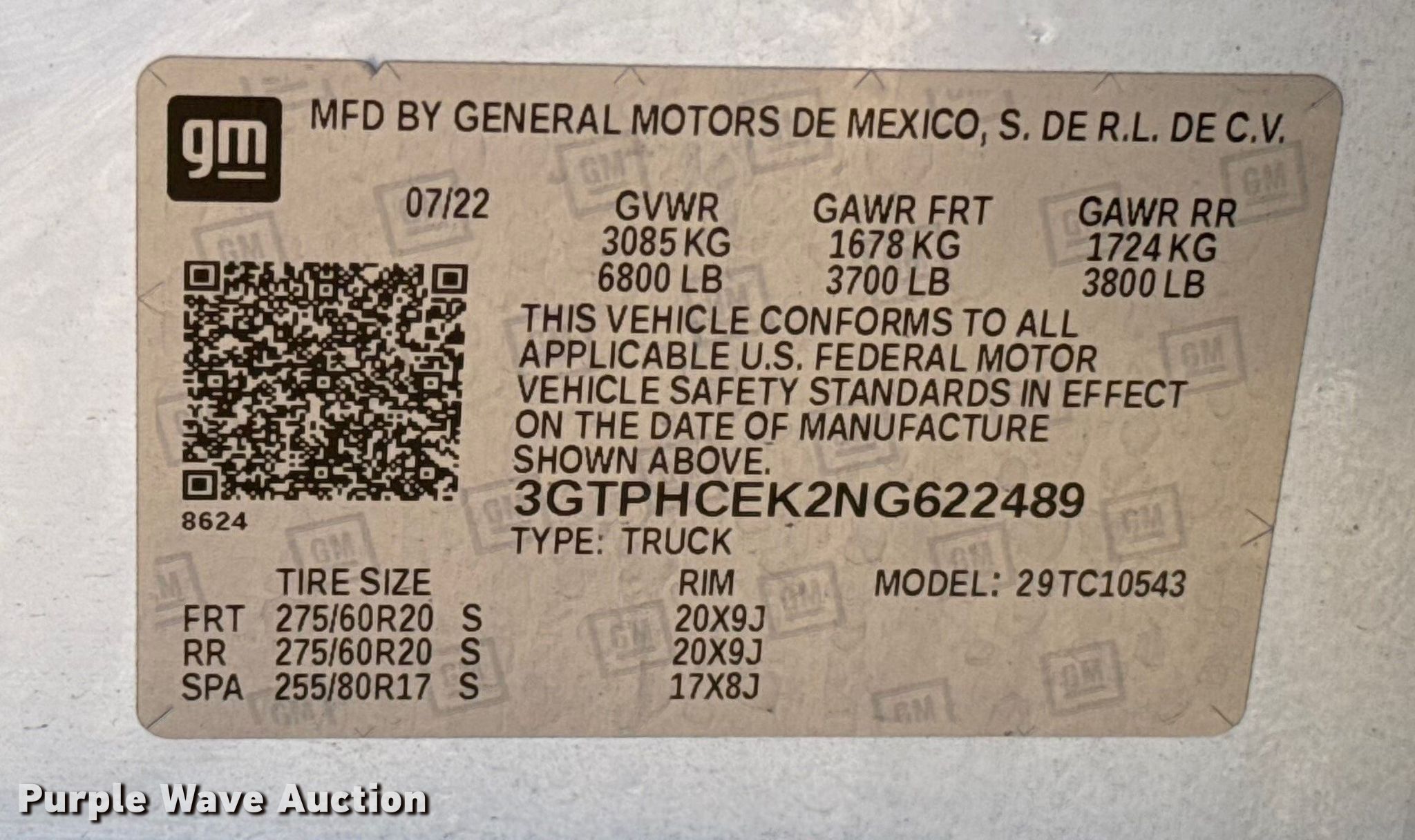 - VIN: 3GTPHCEK2NG622489