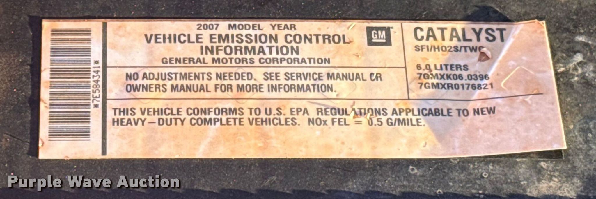 2007 Chevrolet Silverado 2500HD Ext. Cab flatbed pickup truck. Miles: 129,555 on odometer, VIN: 1GCHK29K37E584341. Engine Displacement: 6.0L, Cylinders: 8, Fuel type: Gas, HP: 364. Transmission Automatic, Four wheel drive. Interior AC, Heat, Seat: Power driver, Power windows, Power locks, Cruise control, Brake controller. Features Bed Flatbed, 903 Truck Beds, Length: 7', Width: 79", Hitch: Gooseneck. Tires Size: LT265/70R17. Notes Dash warning indicator: Check engine, TPMS, Airbag, Service four wheel drive, Non-operational passenger window switch. Oklahoma title. Title distribution may be delayed up to 14 days from verification of funds. K & M Excavation and Septic. Stroud, OK 74079