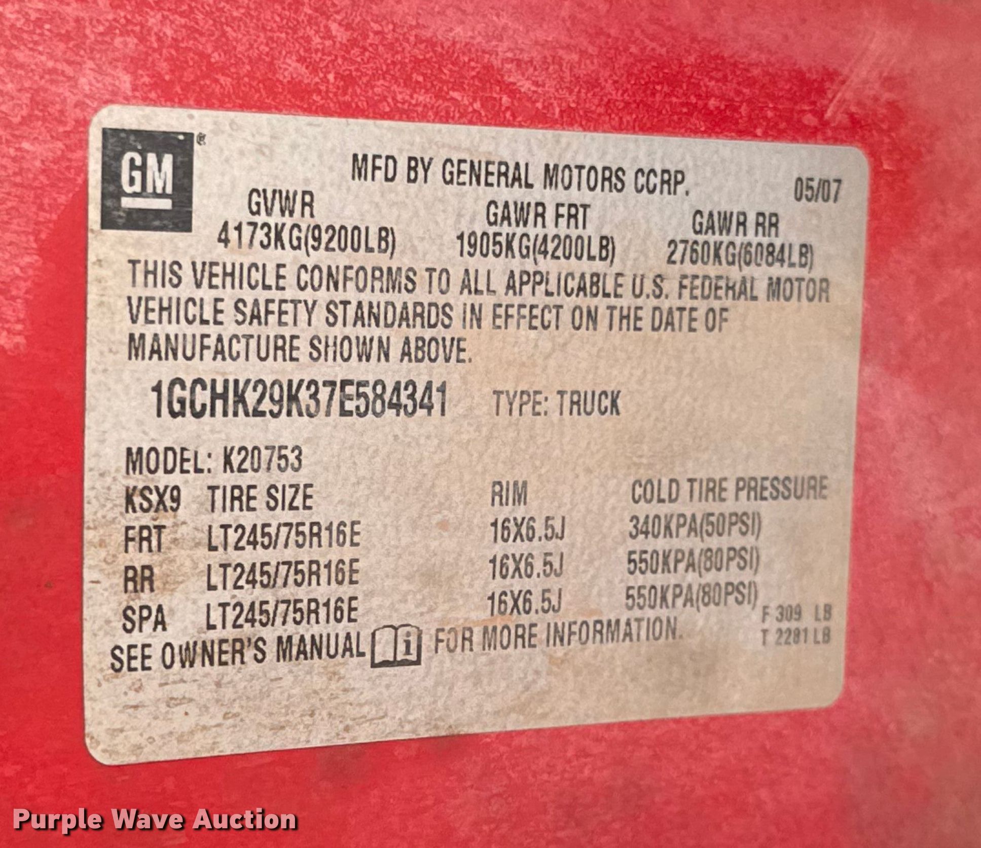 Purple Wave is selling a used 3/4 or 1 Ton Pickup or Van in Oklahoma. This item is a 2007 Chevrolet Silverado 2500HD Ext. Cab flatbed pickup truck with the following: Miles: 129,555 on odometer, VIN: 1GCHK29K37E584341