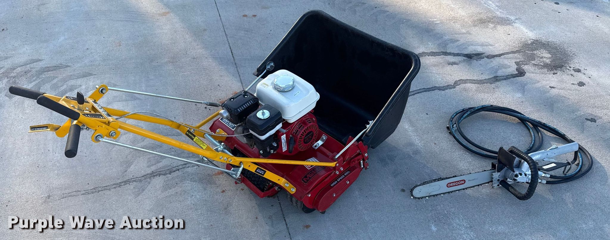 Purple Wave is selling a used Lawn Mower in Oklahoma. This item is a McLane reel mower with the following: Cutting width: 24"