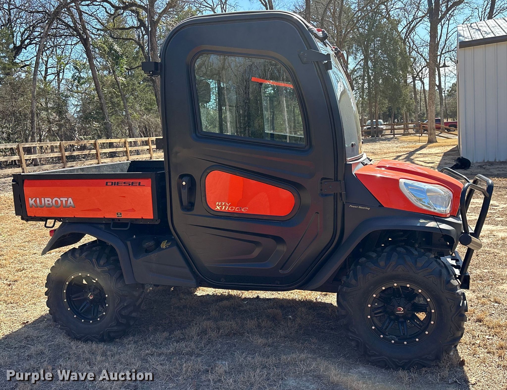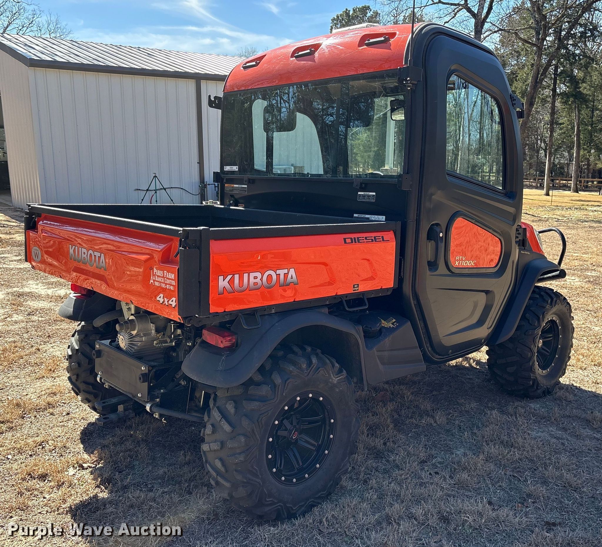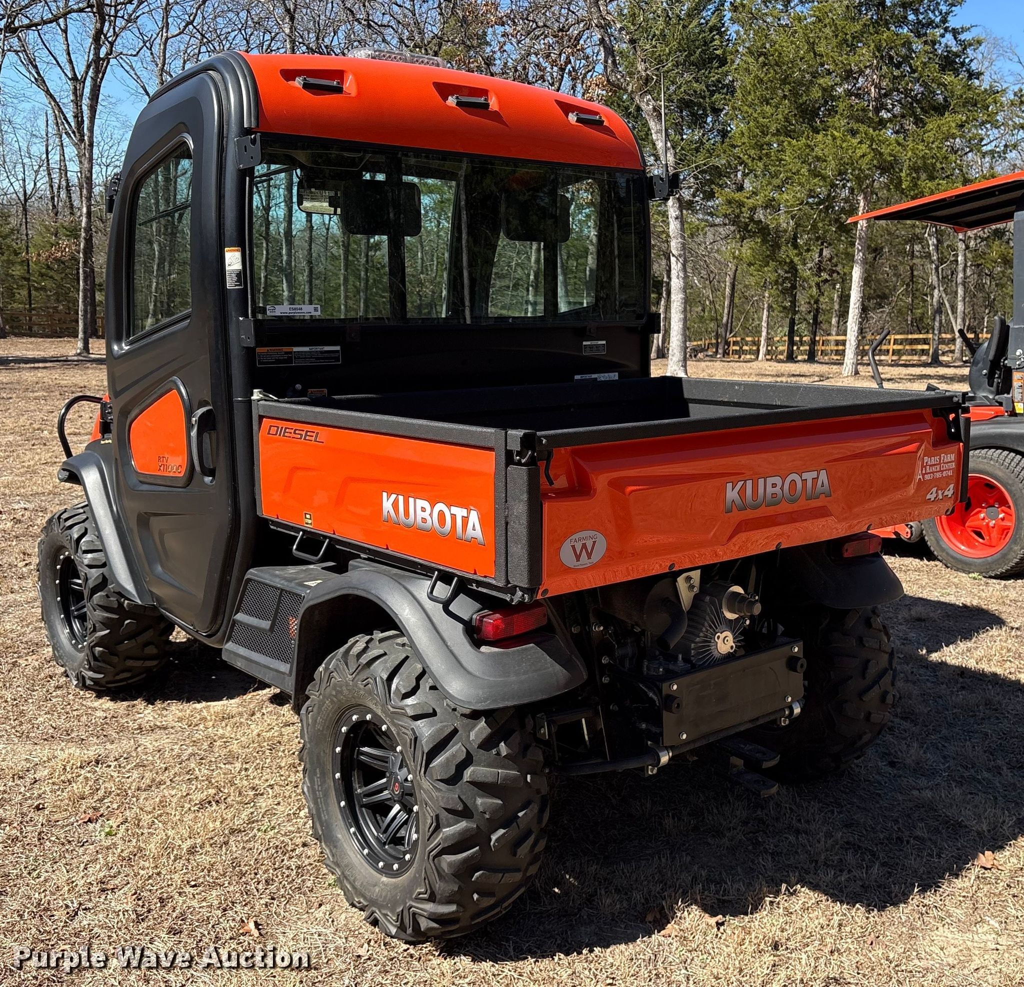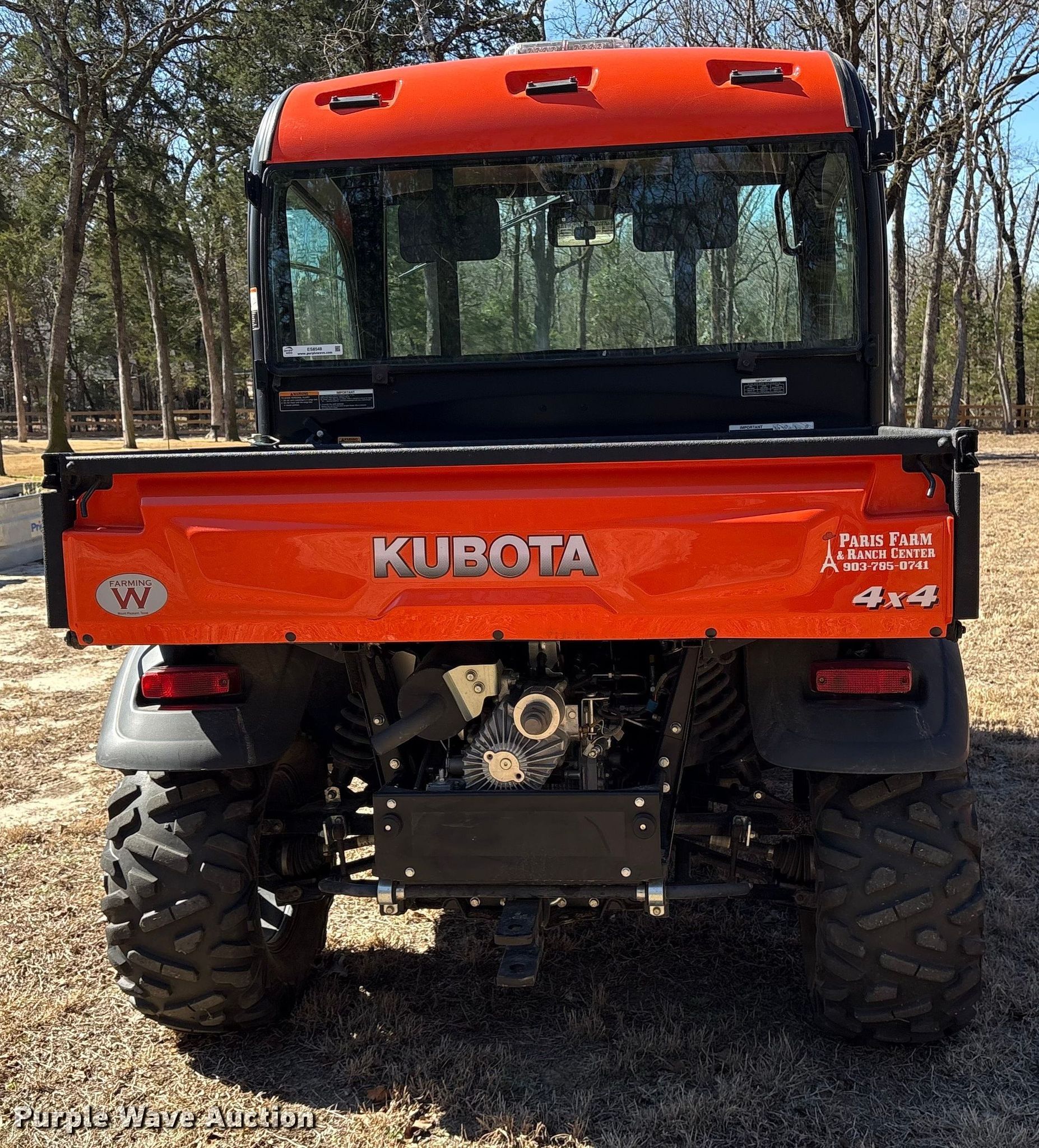 2020 Kubota RTV X1100C utility vehicle. Miles: 2,115 on odometer, Hours: 416 on meter, VIN: A5KC2GDBTLG056858. Engine Kubota D1105-E4, Serial: 1KY3098, Cylinders: 3, Fuel type: Diesel, Electric start. Transmission Automatic. Chassis Four wheel drive/ All wheel drive. Operators station Enclosed cab, AC, Heat. Features Grille guard, Receiver hitch, Dump bed 42" L x 60" W, Dump bed type: Electric/ Hydraulic. Tires Size: AT27x12-14. Texas off-highway use only title. Title distribution may be delayed up to 14 days from verification of funds. FARMING W LLC. Lindale, TX 75771