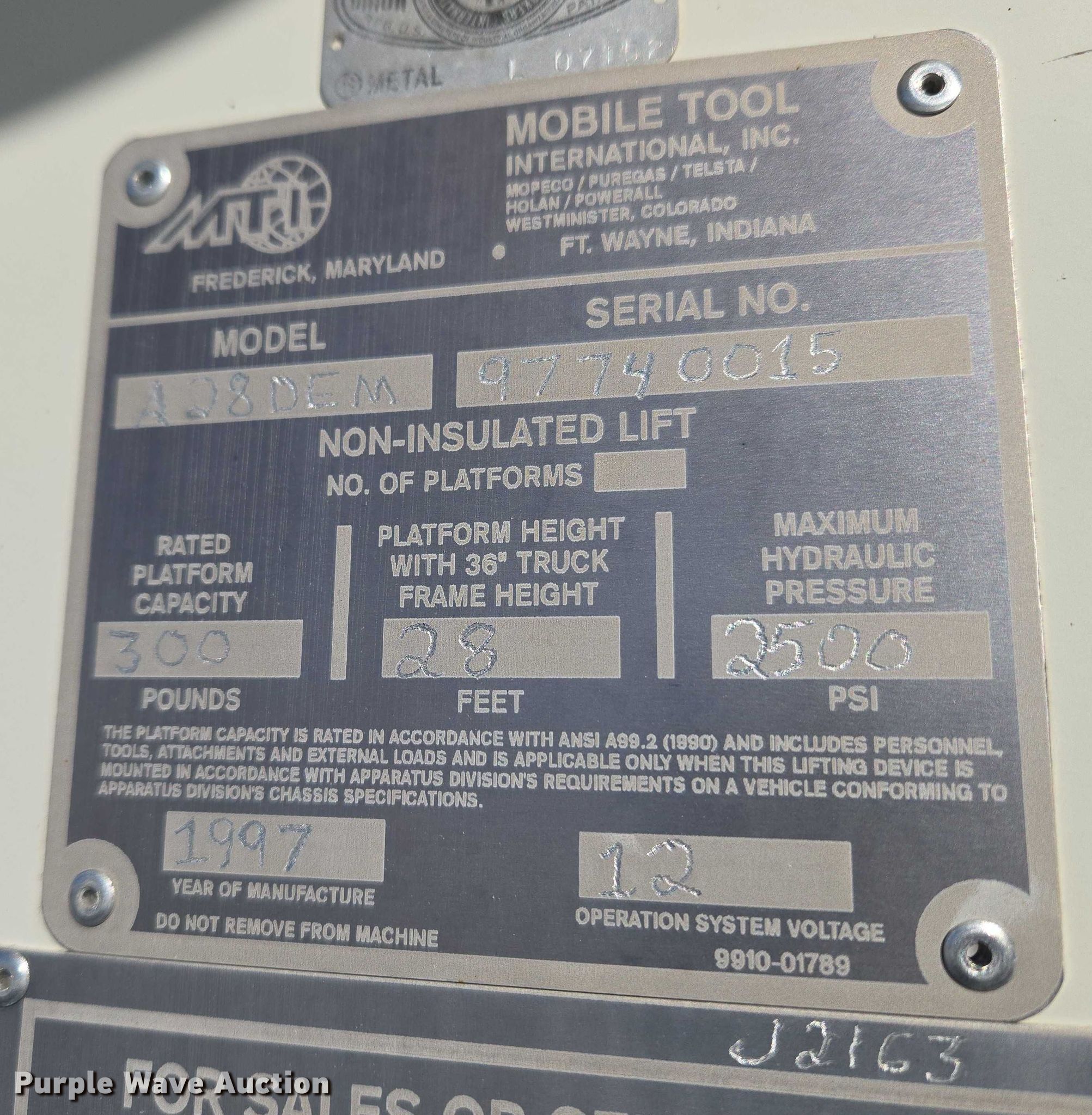 1997 Ford F350 bucket truck. Miles: 213,825 on odometer, VIN: 3FEKF38F6VMA45103. Engine Navistar, Displacement: 7.3L, Cylinders: 8, Fuel type: Diesel. Transmission Automatic. Chassis Four wheel drive, Axles: Single, Suspension: Spring, Brakes: Hydraulic, GVWR: 11,000 lbs. Interior AC, Heat. Features Bed Utility bed, Length: 11' 3", Width: 7' 5", Height: 3' 4", Boom 1997 MTI A28DEM, Serial: 9770015, Maximum lift capacity: 300 lbs, Maximum lift height: 28', Boom type: Telescopic, Man basket, Boom controls Lower, Basket.. Tires Size: LT235//85R16. Notes Windshield chipped or cracked, Driver door latch issues. Oklahoma title. Seller is an Oklahoma licensed motor vehicle dealer. Buyers may be required to provide identification to the licensed dealer to comply with state laws. Title will be assigned and distributed by the dealer. Please contact the seller for distribution questions. FWAuto Remarketing LLC. Yukon, OK 73099