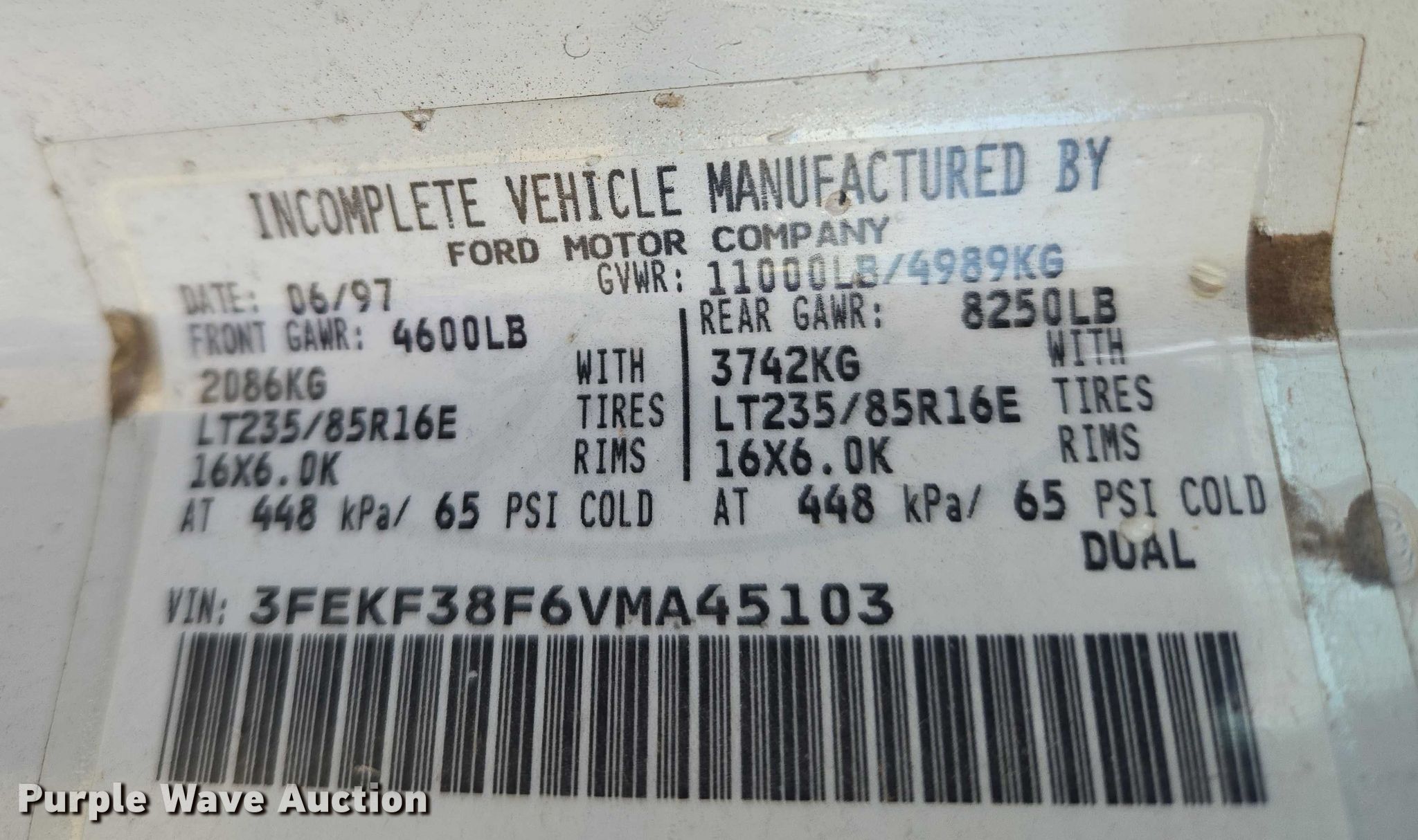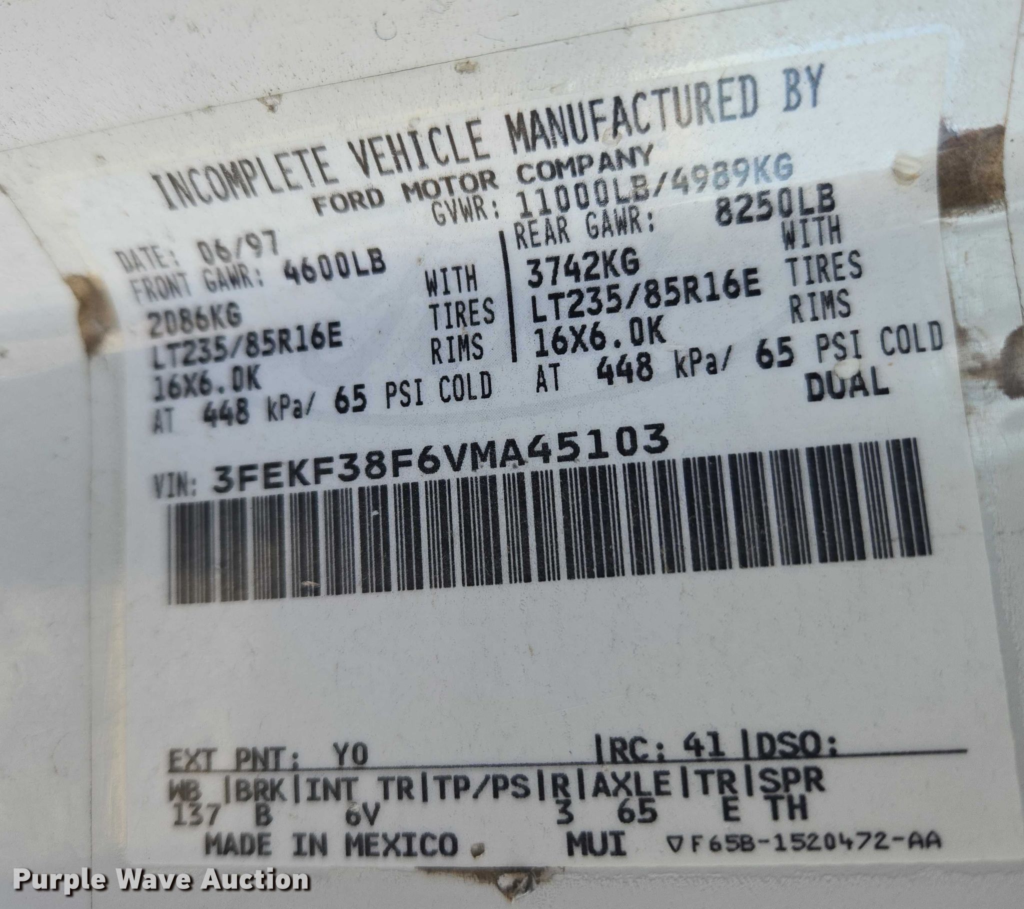 - VIN: 3FEKF38F6VMA45103