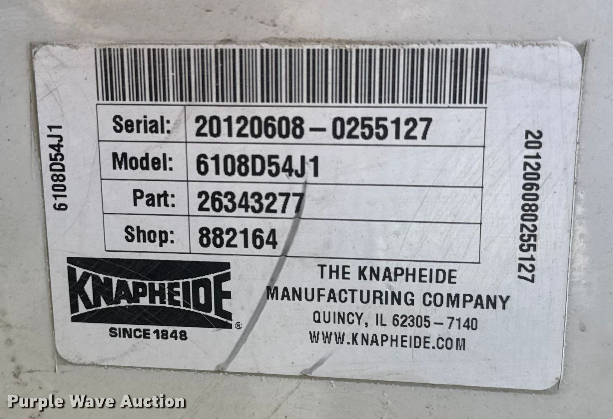 2012 Ford F450 Super Duty XL utility / service truck. Miles: 270,946 on odometer, Hours: 10,213 on meter, VIN: 1FDOW4HT1CEC73438. Engine Displacement: 6.7L, Cylinders: 8, Fuel type: Diesel. Transmission Automatic. Chassis Axles: Single, Suspension: Spring, Brakes: Hydraulic, GVWR: 16,500 lbs. Interior AC, Heat, Heated mirrors, Power windows, Power locks, Cruise control, Backup camera, Auxiliary controls, Brake controller. Features Bed Utility bed, Knapheide 6108D54J1, Serial: 20120608-0255127, Length: 8' 11", Width: 96". Tires Size: 225/70R19.5. Notes Dash warning indicator: Check engine, Windshield chipped or cracked, Emissions system modified, Unknown operating condition of back up camera. Kansas title. Title distribution may be delayed up to 14 days from verification of funds. TL Steel LLC. Burrton, KS 67020