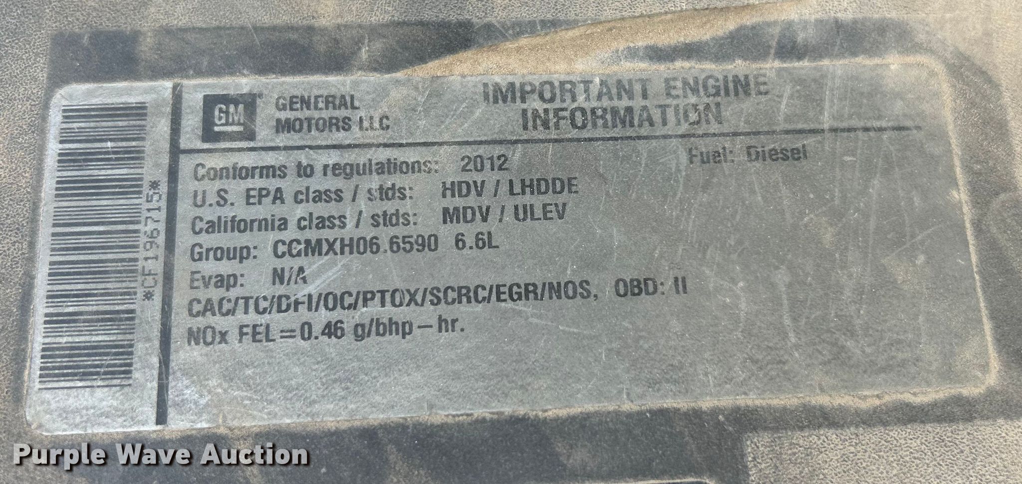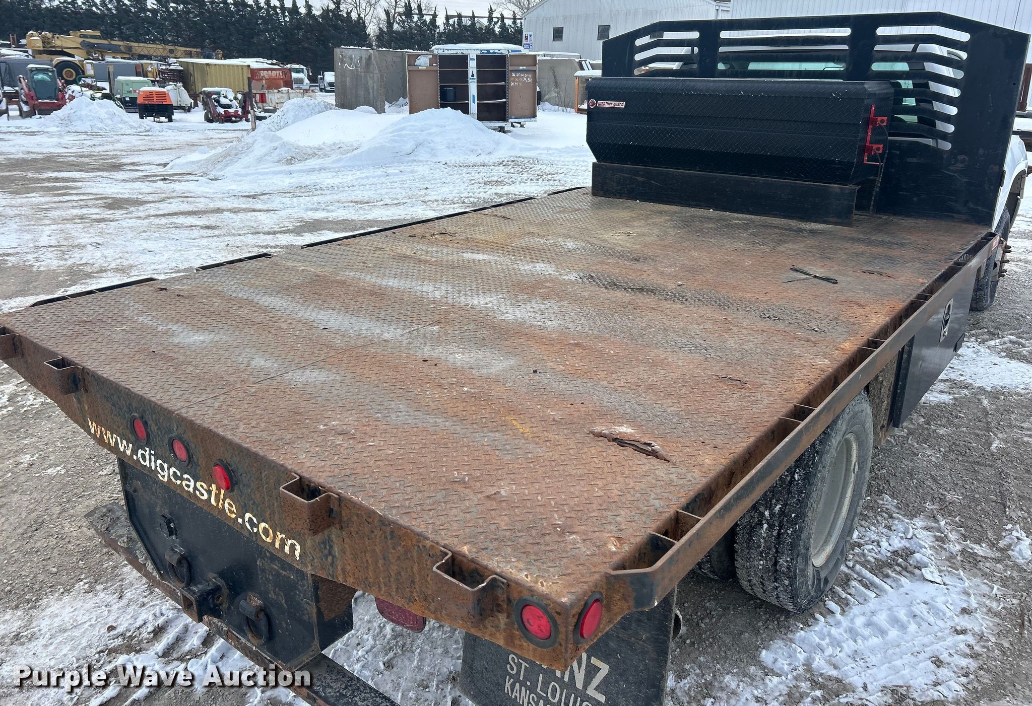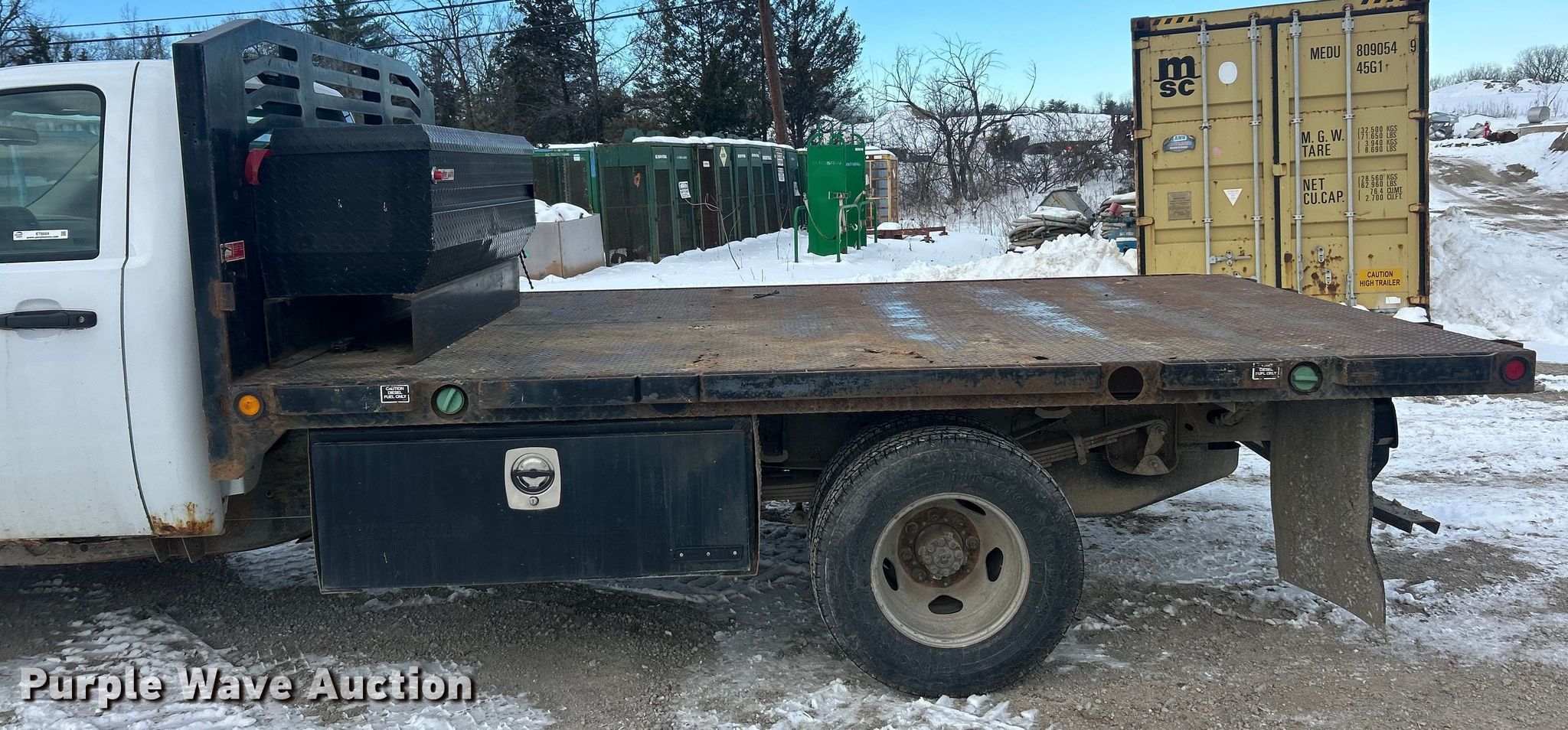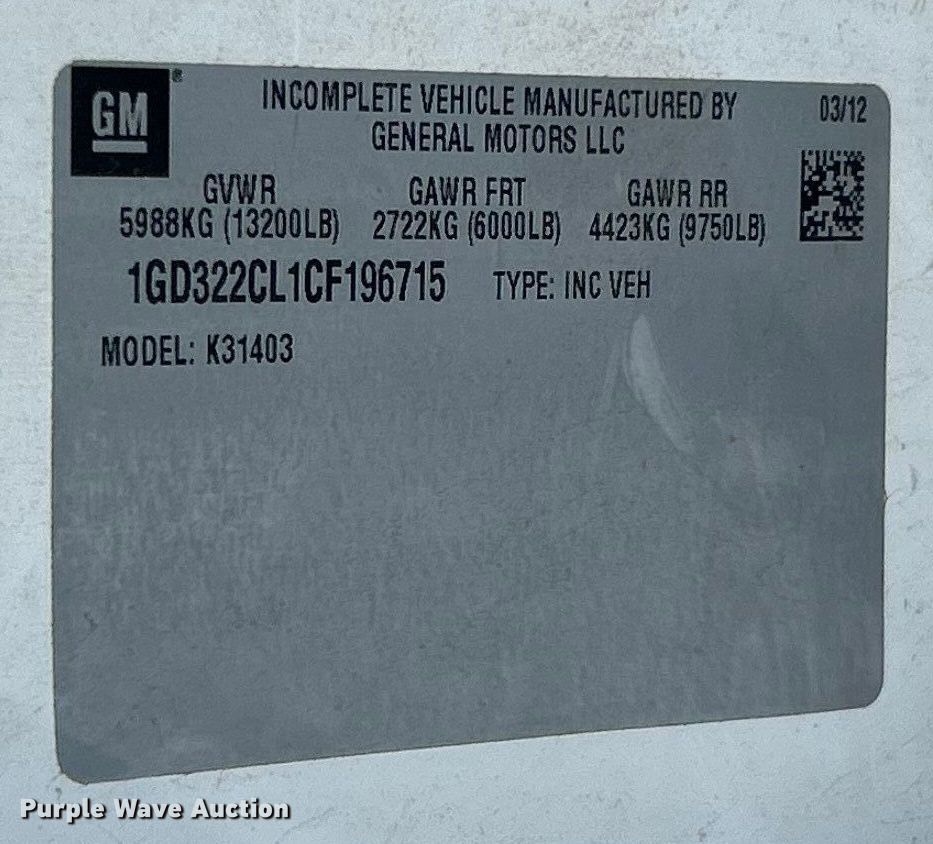 2012 GMC Sierra 3500 flatbed pickup truck. Miles: 291,366 on odometer, VIN: 1GD322CL1CF196715. Engine Displacement: 6.6L, Cylinders: 8, Fuel type: Diesel. Transmission Automatic, Four wheel drive. Interior AC, Heat, Cruise control. Features Bed Flatbed, Length: 12', Width: 91". Tires Size: 235/80R17. Notes Dash warning indicator: Check engine. Missouri title. Title distribution may be delayed up to 14 days from verification of funds. McCarthy Building Companies. St. Louis, MO 63124