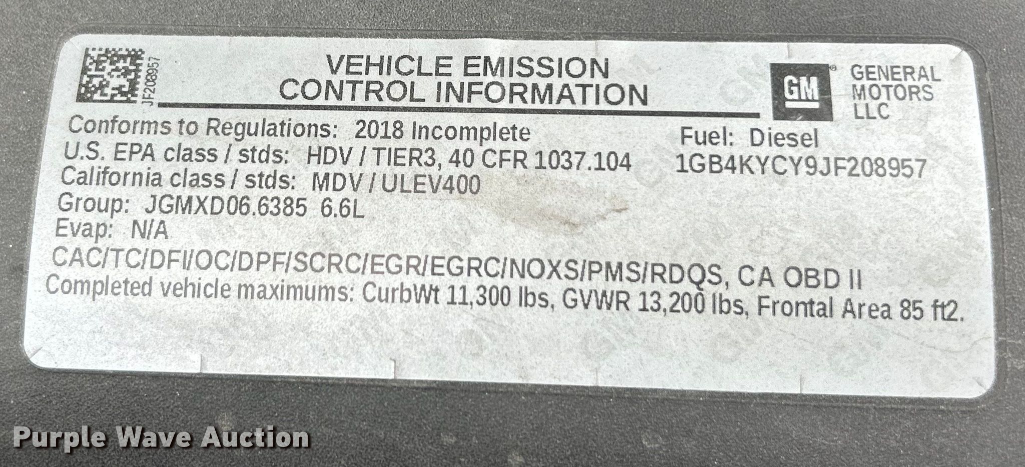 2018 Chevrolet Silverado 3500HD Crew Cab dump flatbed pickup truck. Miles: 110,609 on odometer, Hours: 4,982 on meter, VIN: 1GB4KYCY9JF208957. Engine Displacement: 6.6L, Cylinders: 8, Fuel type: Diesel. Transmission Automatic, Four wheel drive. Interior AC, Heat, Power windows, Power locks, Cruise control. Features Bed Flatbed, Hillsboro, Length: 9' 3", Width: 96", Hitch: Gooseneck. Tires Size: 235/80R17. Notes Windshield chipped or cracked. Missouri title. Title distribution may be delayed up to 14 days from verification of funds. McCarthy Building Companies. St. Louis, MO 63124