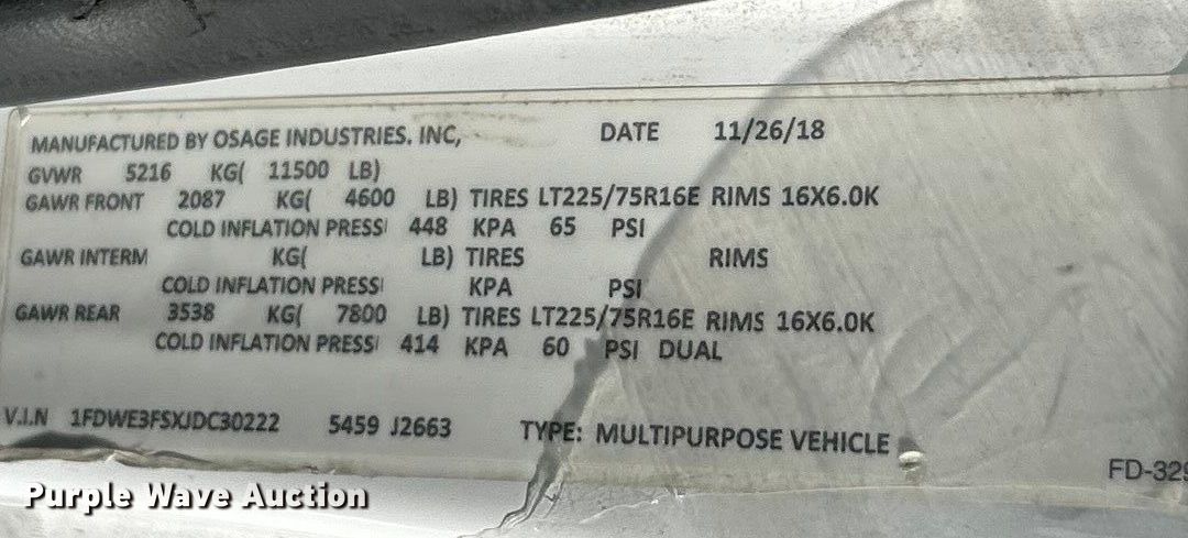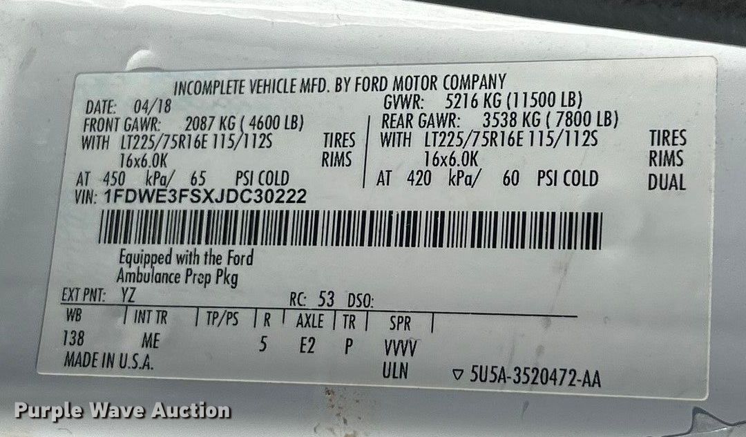 - VIN: 1FDWE3FSXJDC30222