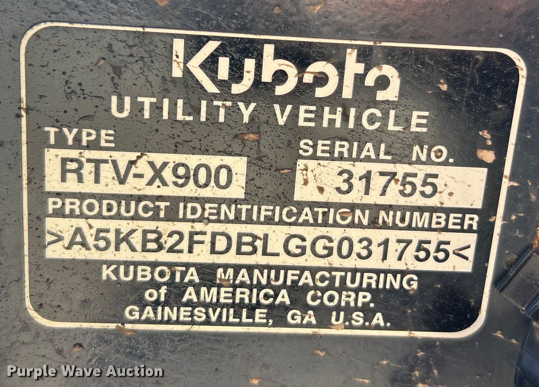 Purple Wave is selling a used Utility Vehicle in Missouri. This item is a Kubota RTV-X900 utility vehicle with the following: Miles: 7,252 on odometer, VIN: A5KB2FDBLGG031755, Serial: 31755