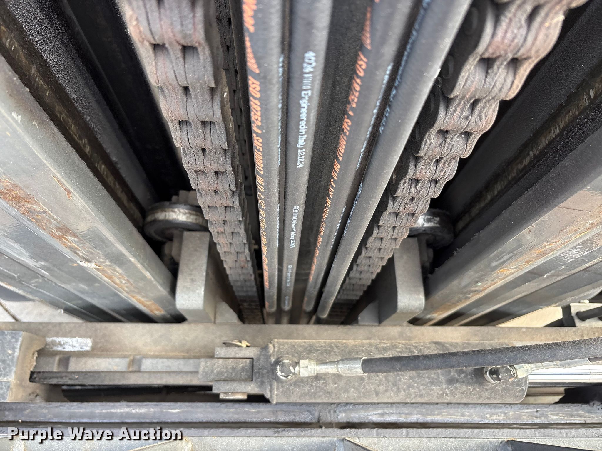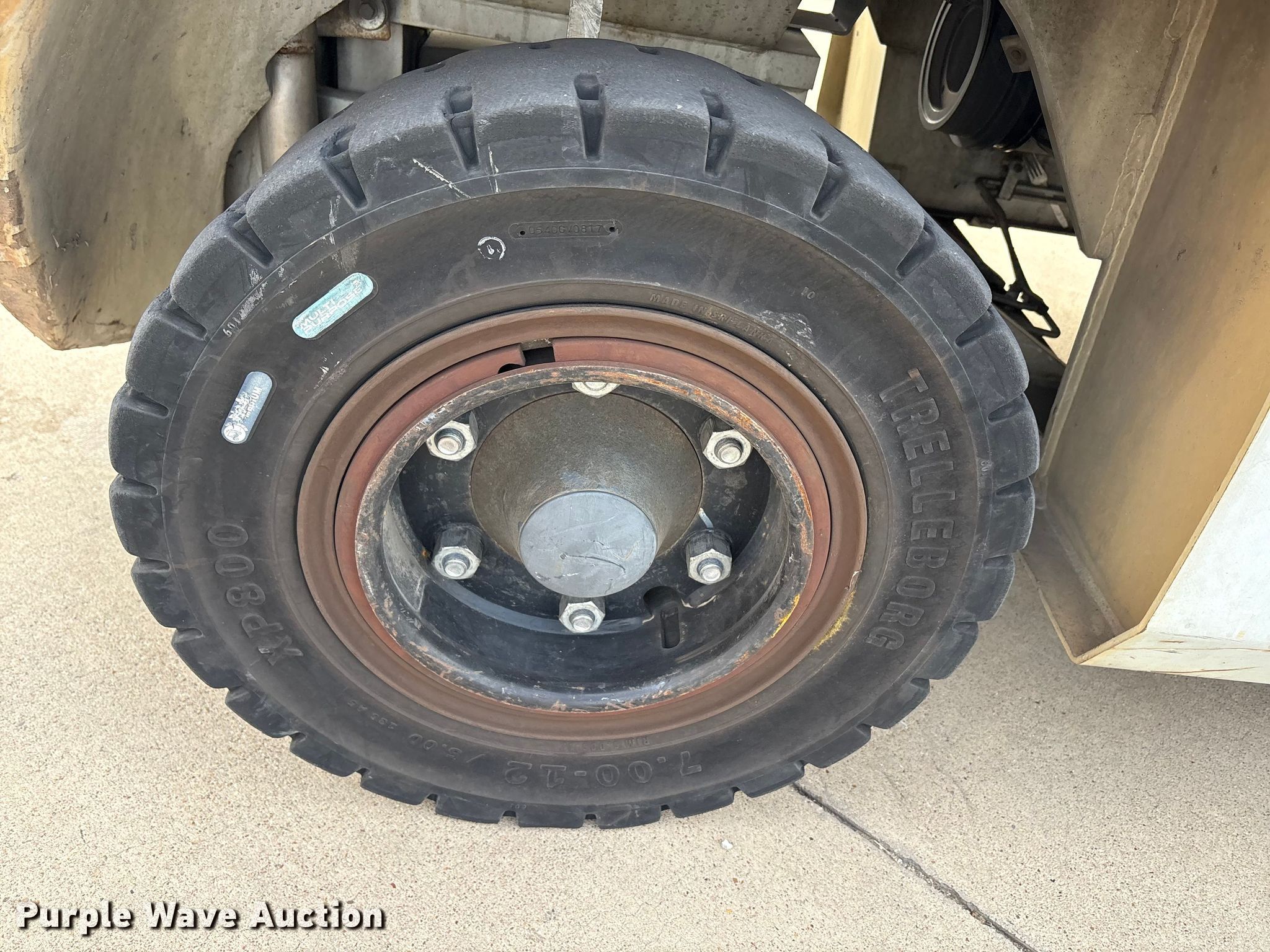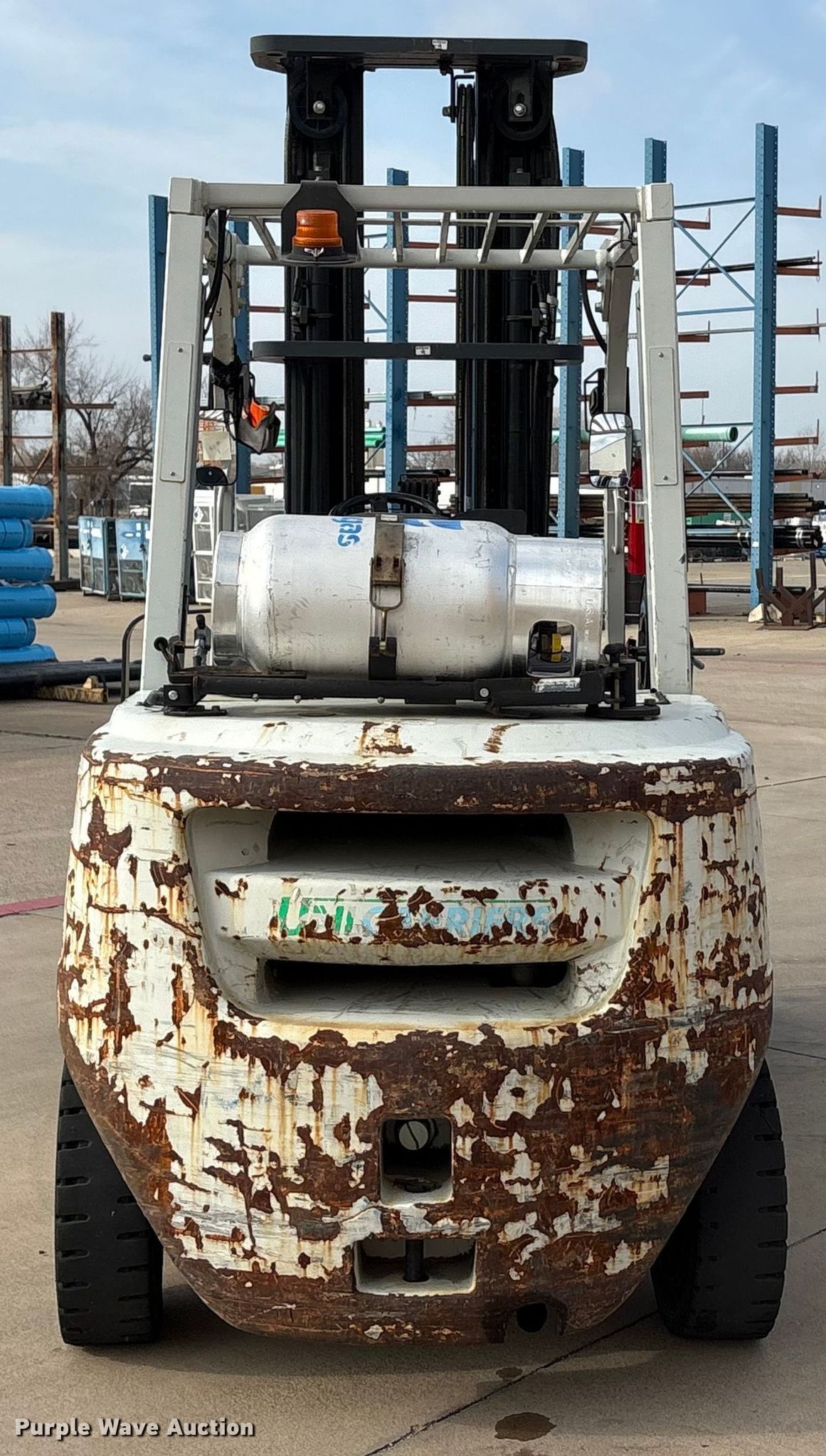 2018 UniCarriers PF110YLP forklift. Hours: 5,307 on meter, Serial: JG1F4-940416, Unit #: SFS2848. Engine GCT TB45L, Displacement: 4.5L, Cylinders: 6, Fuel type: LPG. Transmission Automatic. Operators station OROPS. Features Maximum lift capacity: 8,535 lbs, Maximum lift height: 236", Collapsed mast height: 117", Mast stages: 3, Side shift, Mast tilt, Fork positioner, Fork length: 70". Tires Front: 8.25-15, Rear: 7.00-12, Solid. Notes Warning indicator: Master warning. Ferguson. Euless, TX 76040