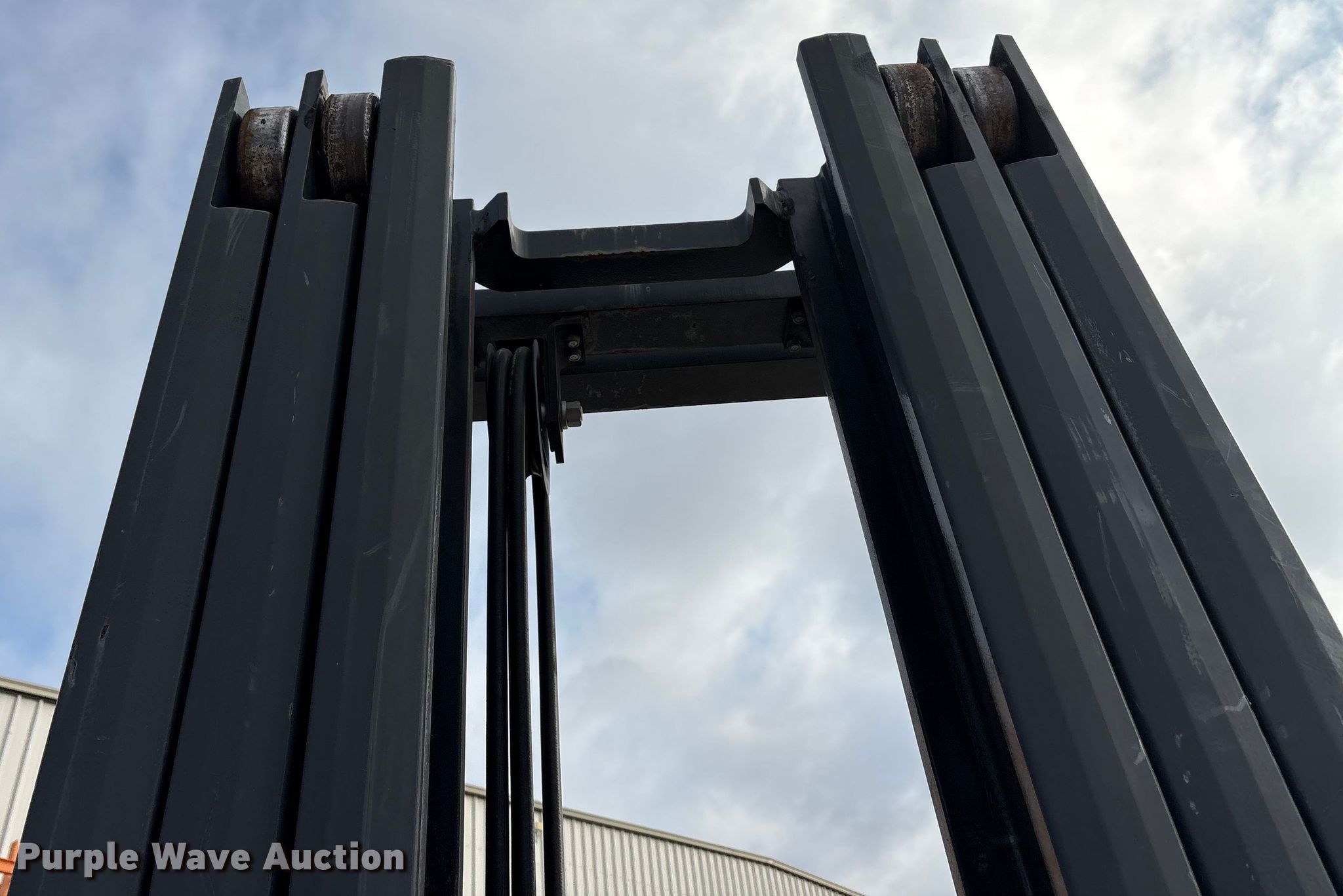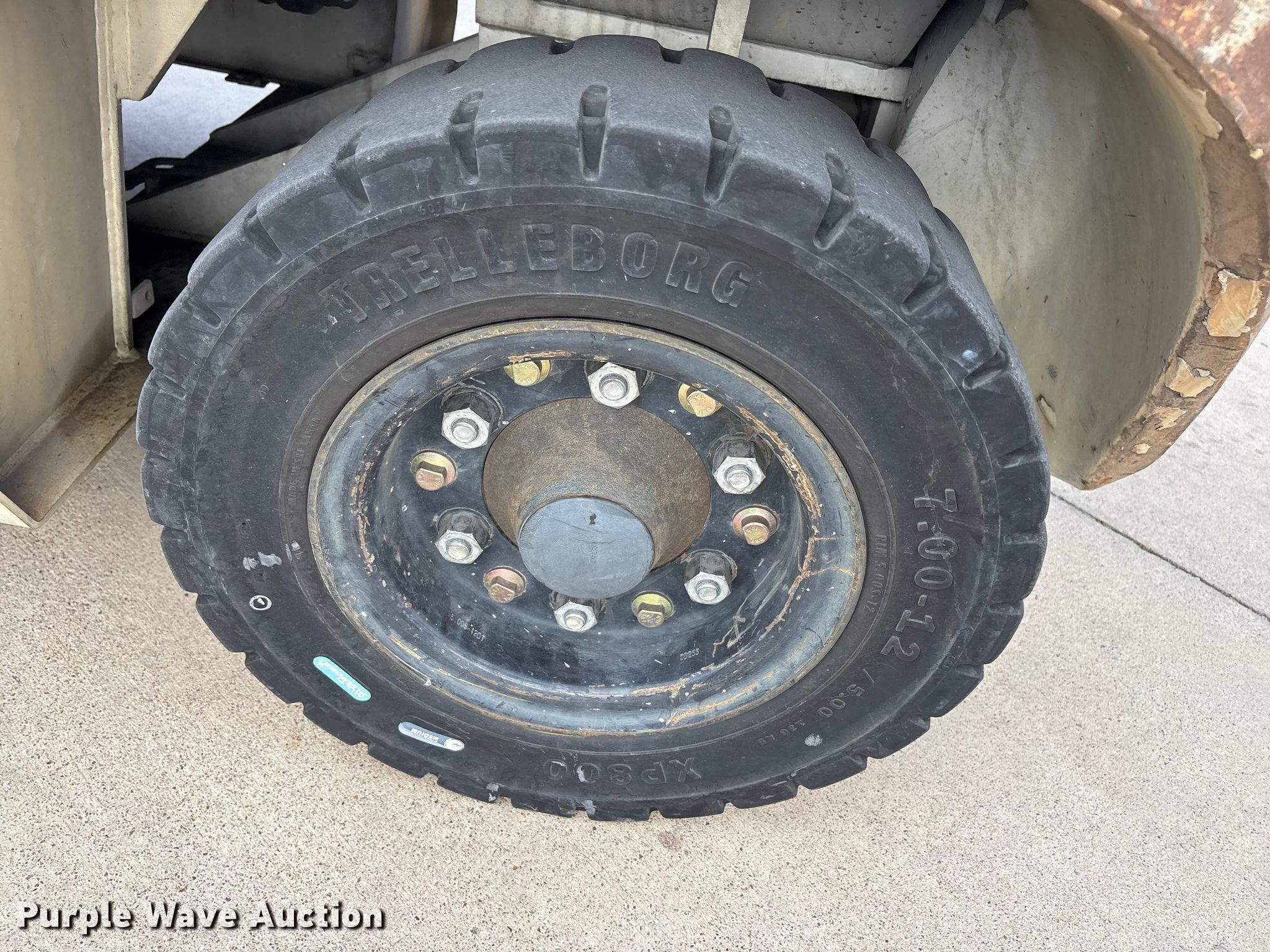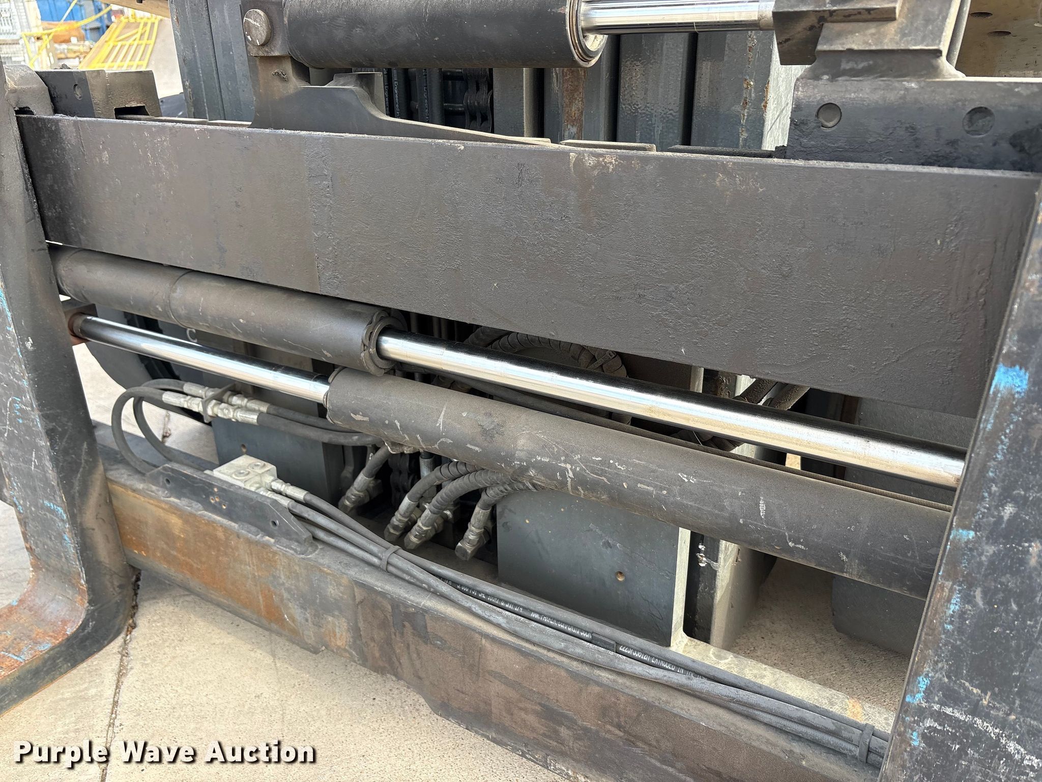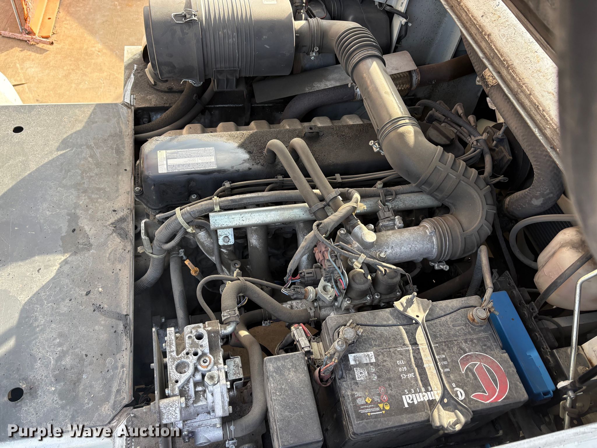 2018 UniCarriers PF110YLP forklift. Hours: 5,307 on meter, Serial: JG1F4-940416, Unit #: SFS2848. Engine GCT TB45L, Displacement: 4.5L, Cylinders: 6, Fuel type: LPG. Transmission Automatic. Operators station OROPS. Features Maximum lift capacity: 8,535 lbs, Maximum lift height: 236", Collapsed mast height: 117", Mast stages: 3, Side shift, Mast tilt, Fork positioner, Fork length: 70". Tires Front: 8.25-15, Rear: 7.00-12, Solid. Notes Warning indicator: Master warning. Ferguson. Euless, TX 76040