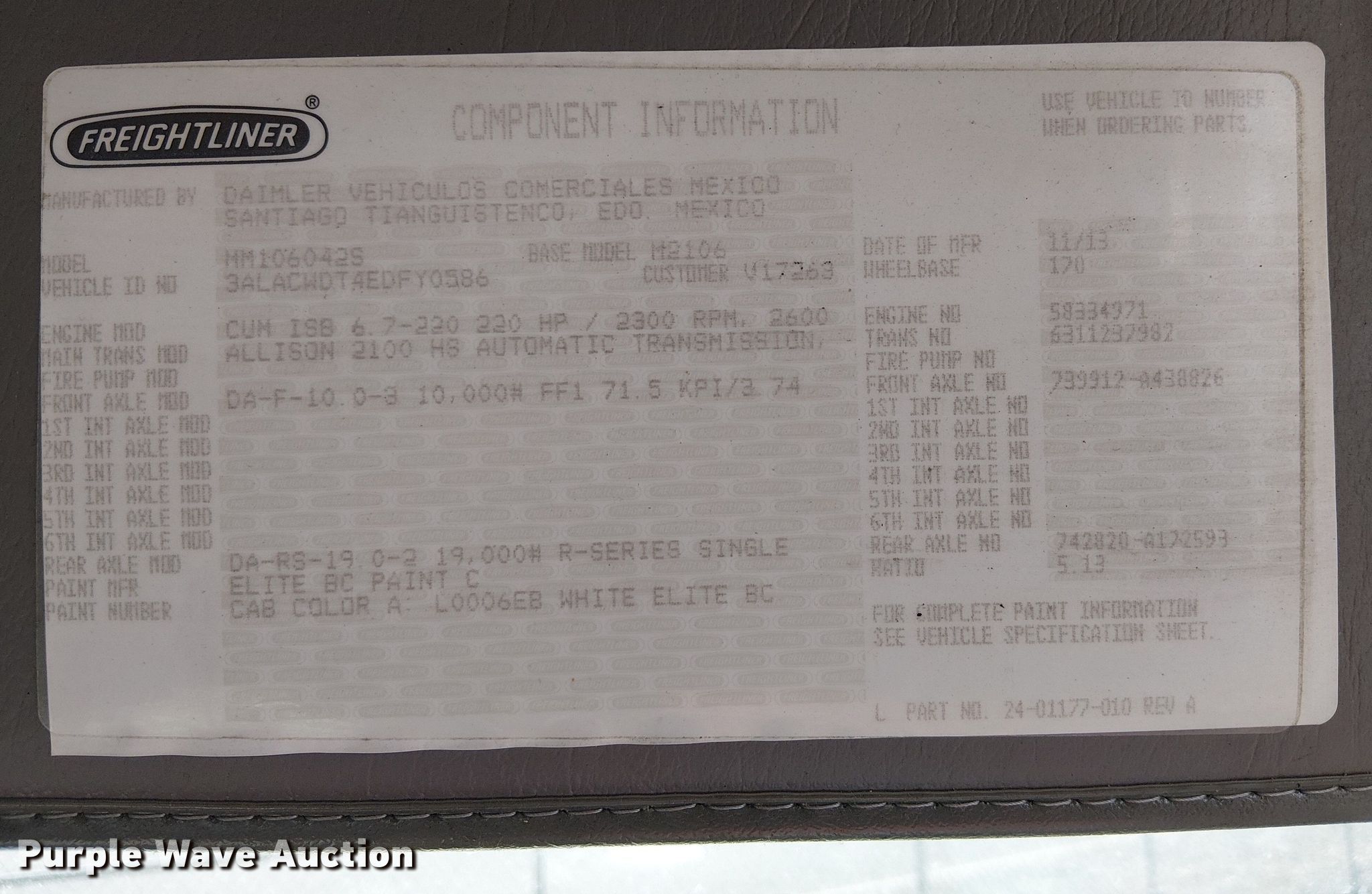 Purple Wave is selling a used Delivery Truck or Van in Arizona. This item is a 2014 Freightliner M2 delivery truck with the following: Miles: 210,636 on odometer, Hours: 11,773 on meter, VIN: 3ALACWDT4EDFY0586