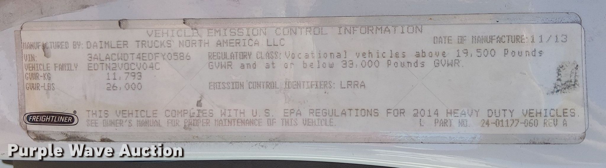 Take a look at this used 2014 Freightliner M2 delivery truck being sold on March 11th, 2026 in the Wednesday March 11 Vehicles and Equipment Auction made by Freightliner. Take a look at all of the item information below or take a look at similar auctions for Trucks.