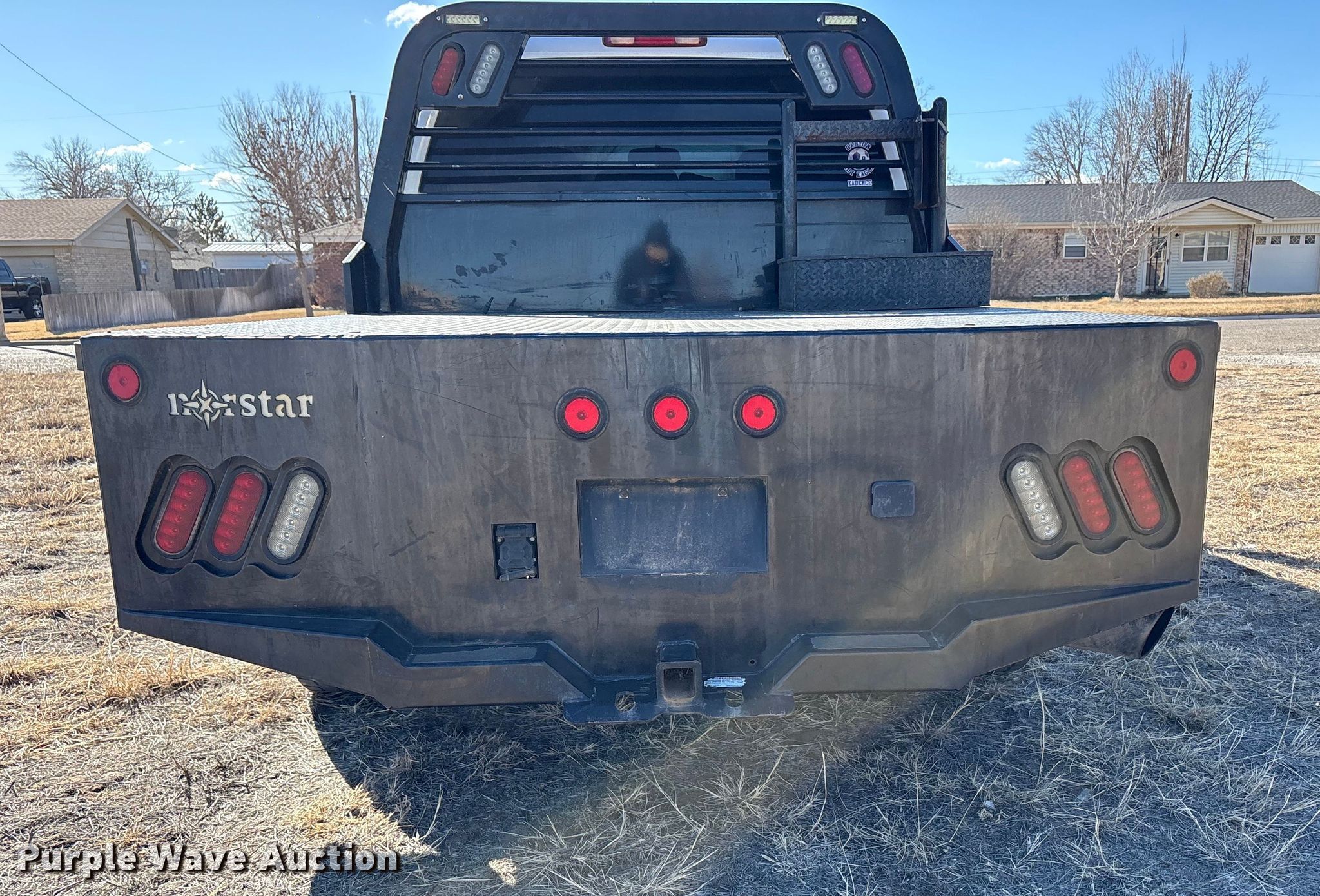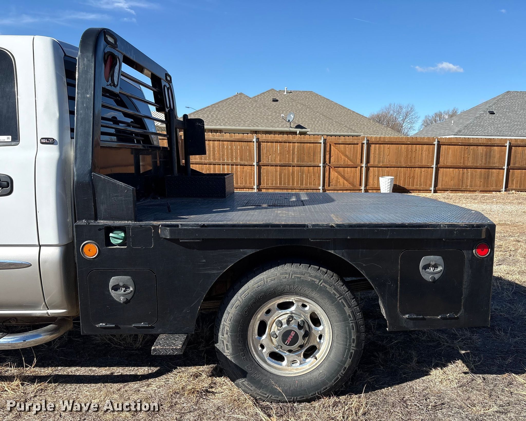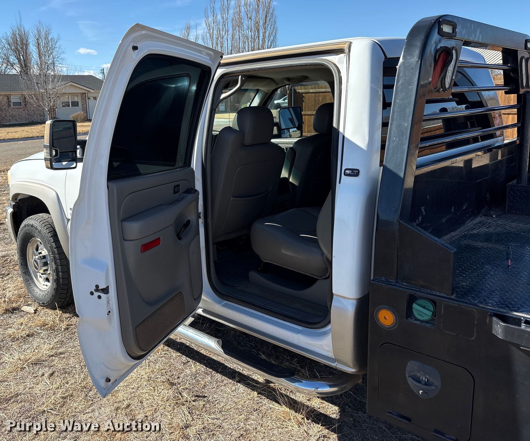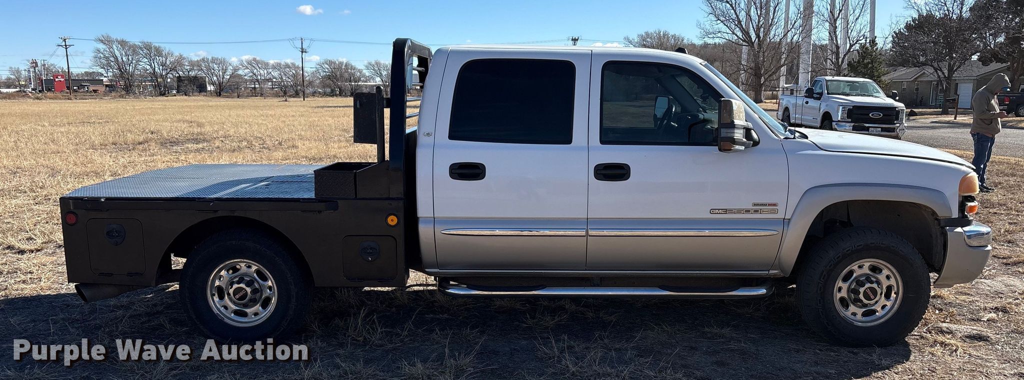 2005 GMC Sierra Crew Cab flatbed pickup truck. Miles: 251,517 on odometer, VIN: 1GTHK23225F878670. Engine Displacement: 6.6L, Cylinders: 8, Fuel type: Diesel. Transmission Automatic, Four wheel drive. Interior AC, Heat, Seat: Heated, Power windows, Power locks, Cruise control, Brake controller. Features Bed Flatbed, Pronghorn, Length: 7', Width: 6' 8", Hitch: Fifth wheel plate. Tires Size: 265/75R16. Notes Dash warning indicator: Check engine, Windshield chipped or cracked, Emissions system modified. Texas title. Title distribution may be delayed up to 30 days from verification of funds. Dalhart, TX 79022