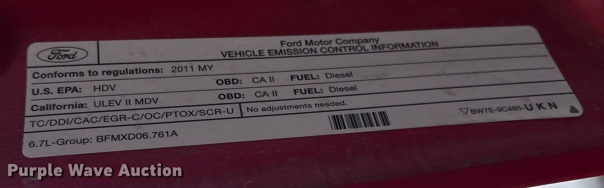 2011 Ford F250 Crew Cab pickup truck. Miles: 211,755 on odometer, Hours: 8,705 on meter, VIN: 1FT7W2BT1BEA66613. Engine Displacement: 6.7L, Cylinders: 8, Fuel type: Diesel, HP: 400. Transmission Automatic, Four wheel drive. Interior AC, Heat, Seat: Heated, Cooled, Power driver, Power passenger, Heated mirrors, Power windows, Power locks, Cruise control, Backup camera, Brake controller. Tires Size: 37X12.50R20LT, Rear: 275/70R18. Notes Dash warning indicator: TPMS, Airbag, Reduced Engine Power, Oil Change Required, Check Coolant Additive, Fuel Filter Change Required. Oklahoma title. Title distribution may be delayed up to 14 days from verification of funds. Firstar Bank. Sallisaw, OK 74955