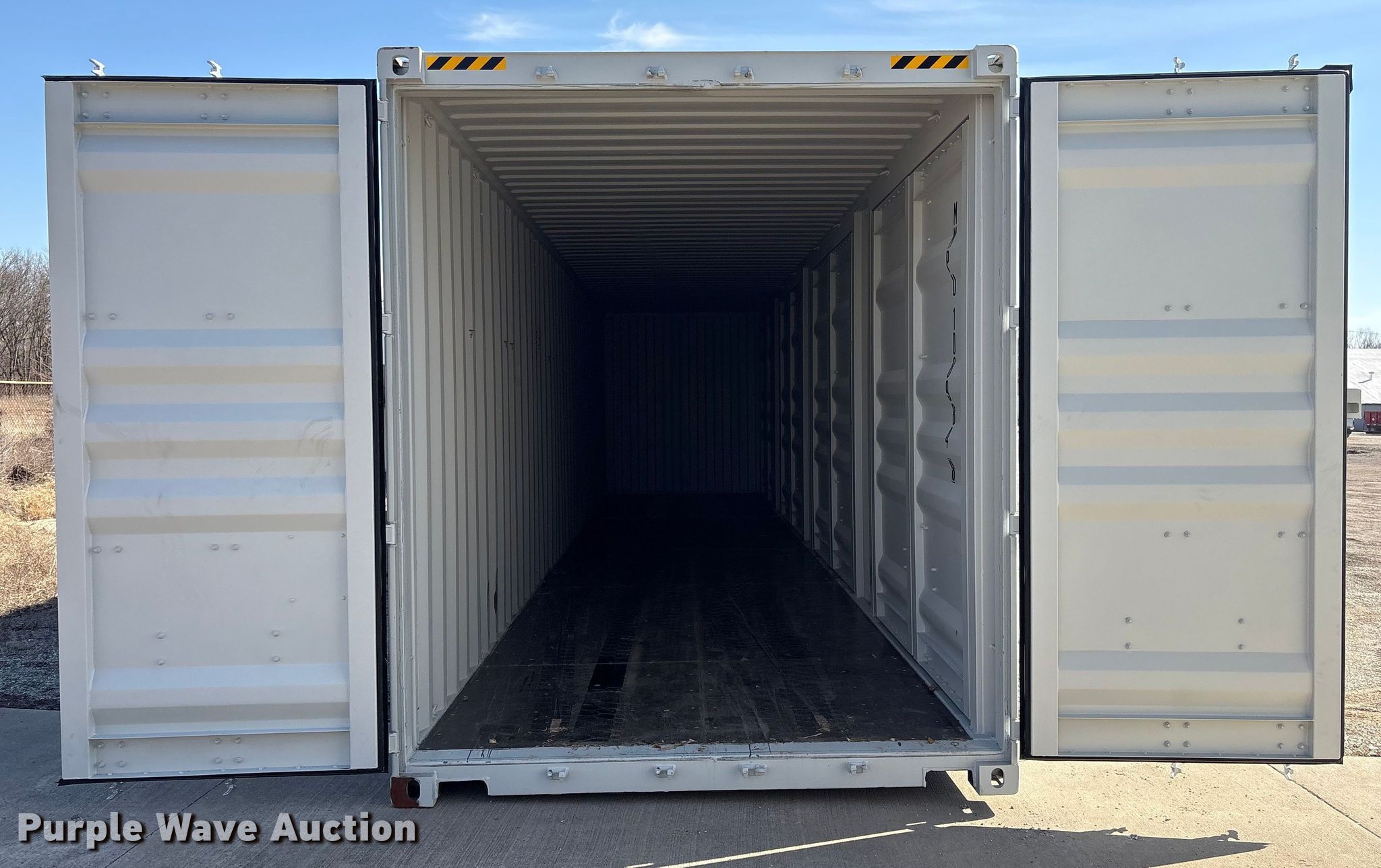 2025 shipping container. Serial: DFCM188882. Dimensions Overall Length: 40', Width: 96", Height: 9' 6", Interior Length: 39' 7", Width: 7' 6", Height: 8' 10". Features (4) side doors. Rockin h Truck& Equipment Service llc. Miami, OK 74354