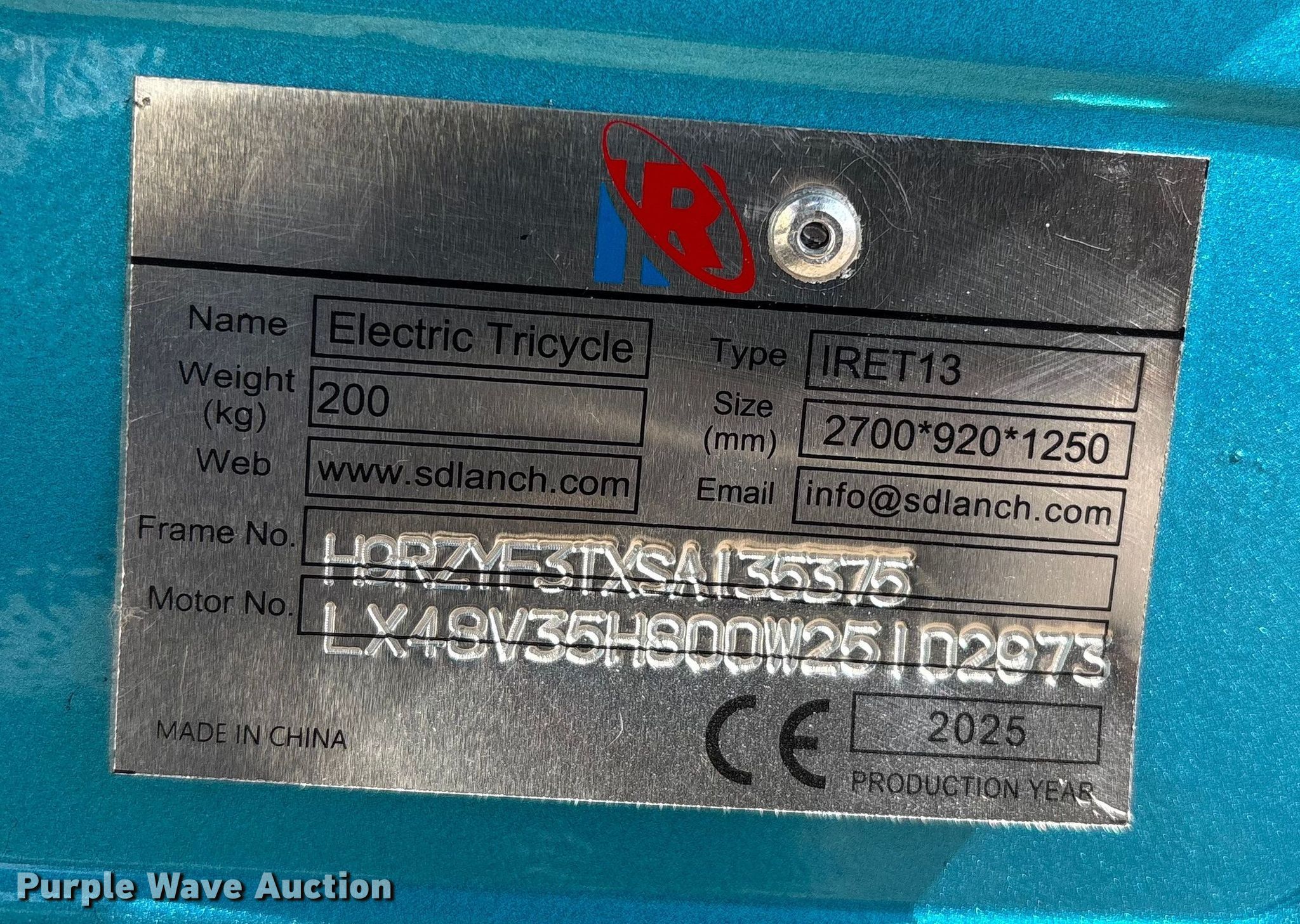 Purple Wave is selling a used Golf Cart in Oklahoma. This item is a 2025 IRanch IRET13 electric tricycle with the following: Serial: H9RZYF3TXSA135375