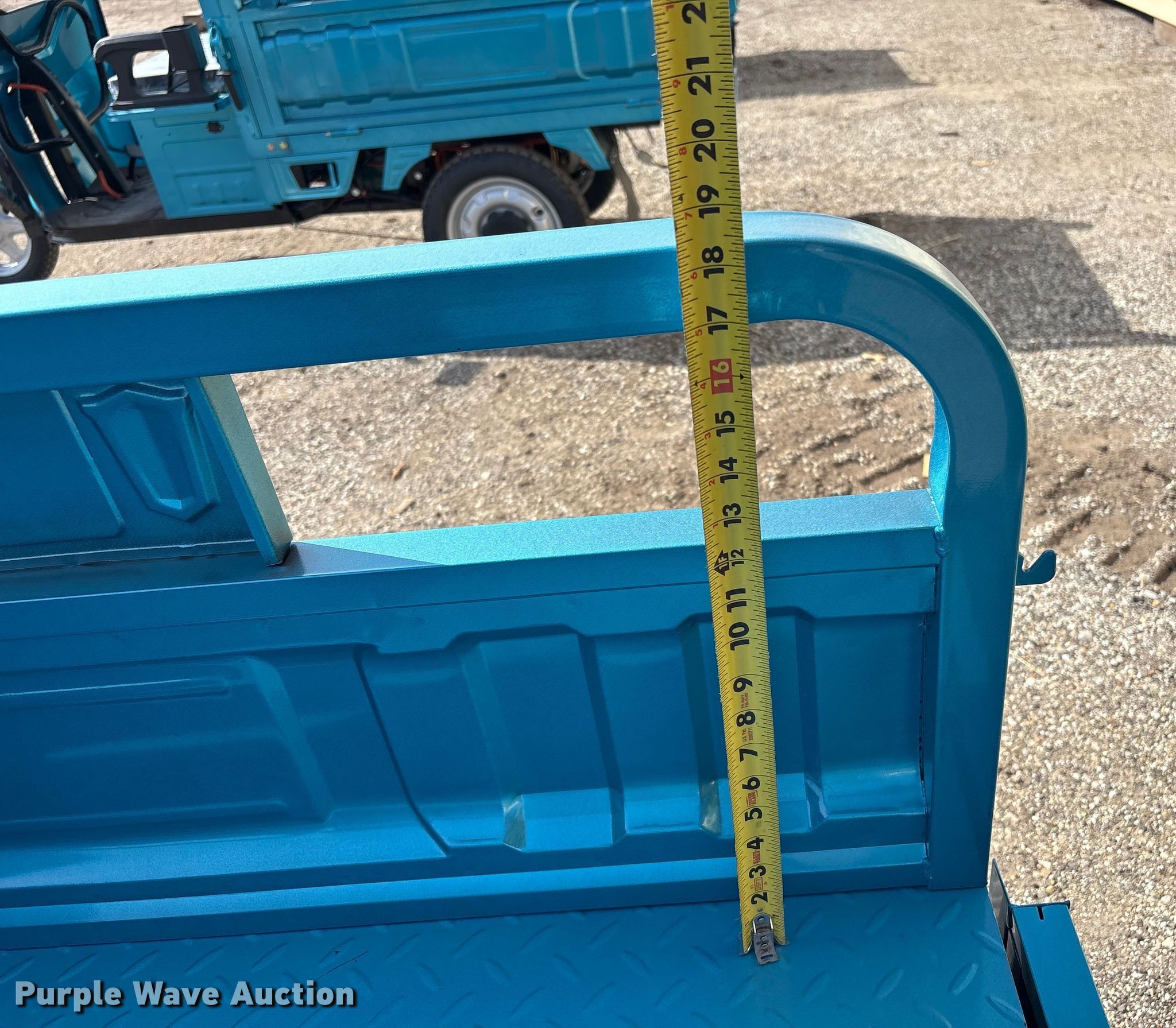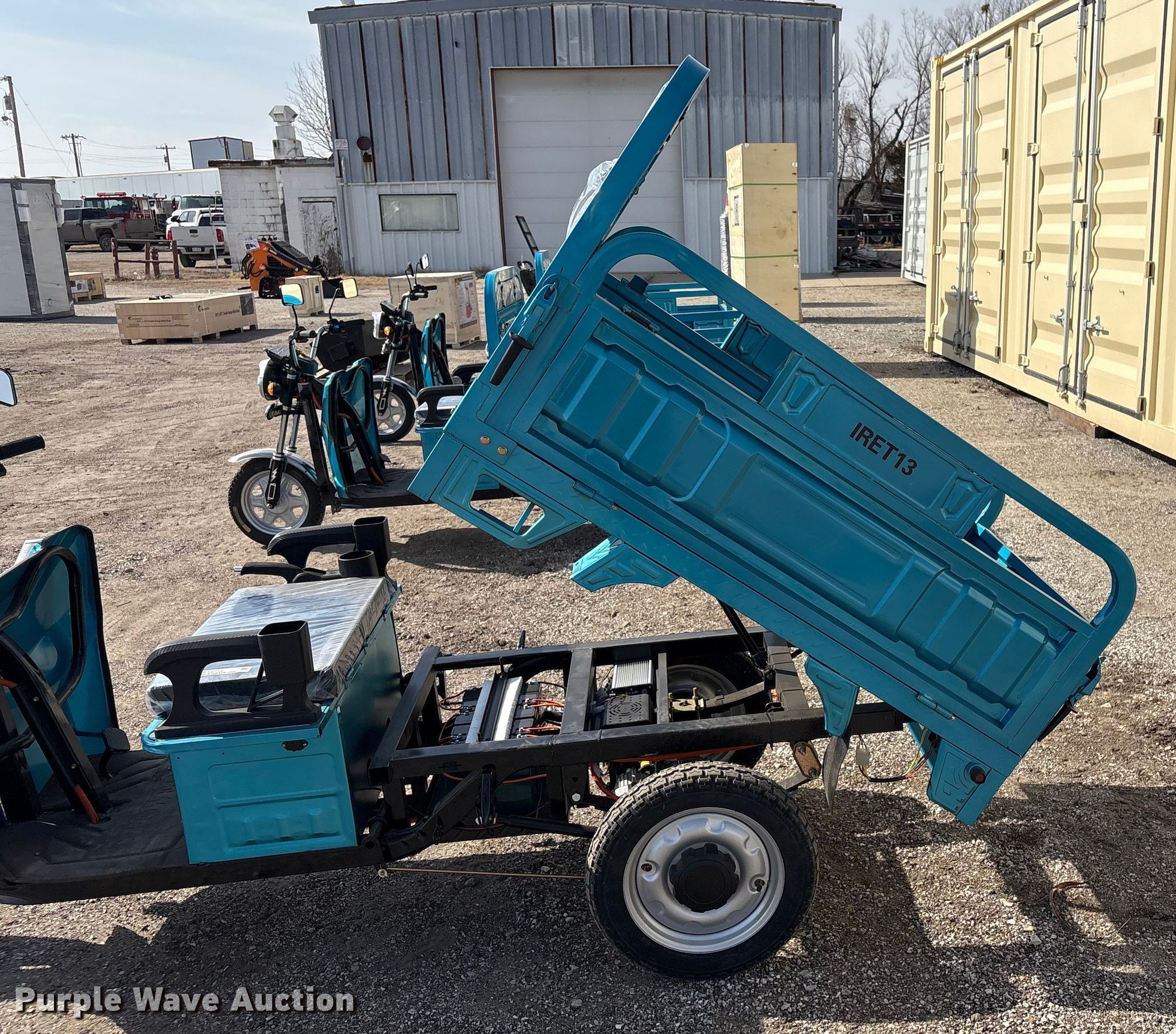 2025 IRanch IRET13 Electric tricycle. Serial: H9RZYF3TXSA136092. Electric Motor Charger: Single phase. Transmission Automatic. Features Dump bed 50" L x 36" W, Dump bed type: Manual. Tires Size: 3.00-12. Transfer of ownership documentation will be a bill of sale. Rockin h Truck& Equipment Service llc. Miami, OK 74354