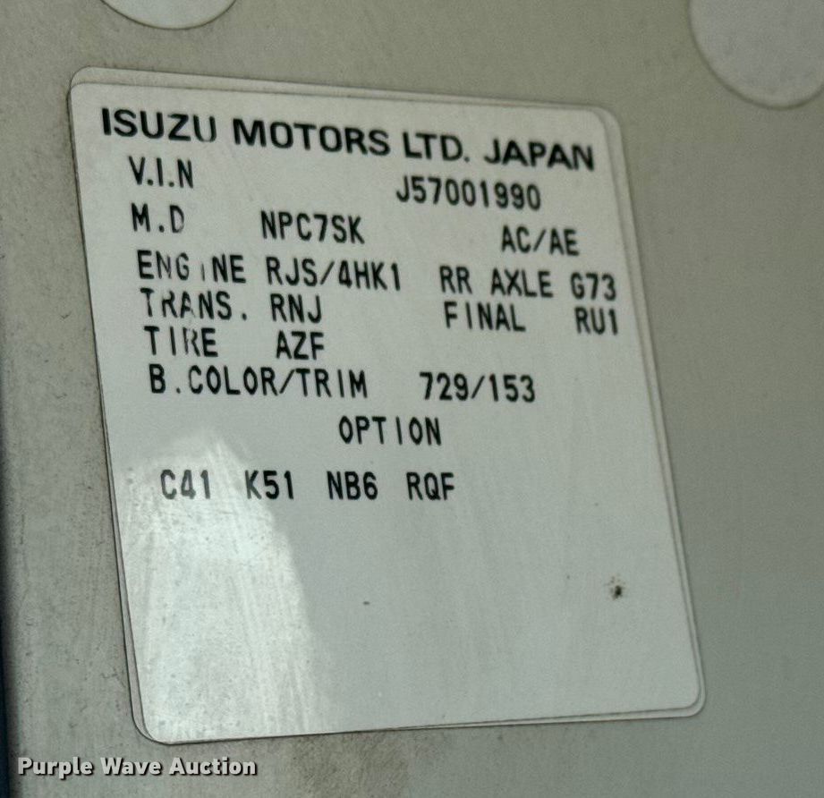 2005 GMC W3500 box truck. Miles: 142,351 on odometer, VIN: J8DB4B16X57001990. Engine Isuzu, Displacement: 5.2L, Cylinders: 4, Fuel type: Diesel. Transmission Automatic. Chassis Axles: Single, Suspension: Spring, Brakes: Hydraulic, GVWR: 12,000 lbs. Interior Heat, Cruise control. Features Bed Box bed, Supreme, Serial: VA16084096 30300196, Length: 16' 6", Width: 95", Height: 84", E-track rail system, Floor: Wood. Tires Size: 215/85R16. Notes Windshield chipped or cracked, Jump start required during on-site data collection, Oil leak. Oklahoma title. Title distribution may be delayed up to 14 days from verification of funds. CDK Distribution, Inc... Wichita, KS 67209