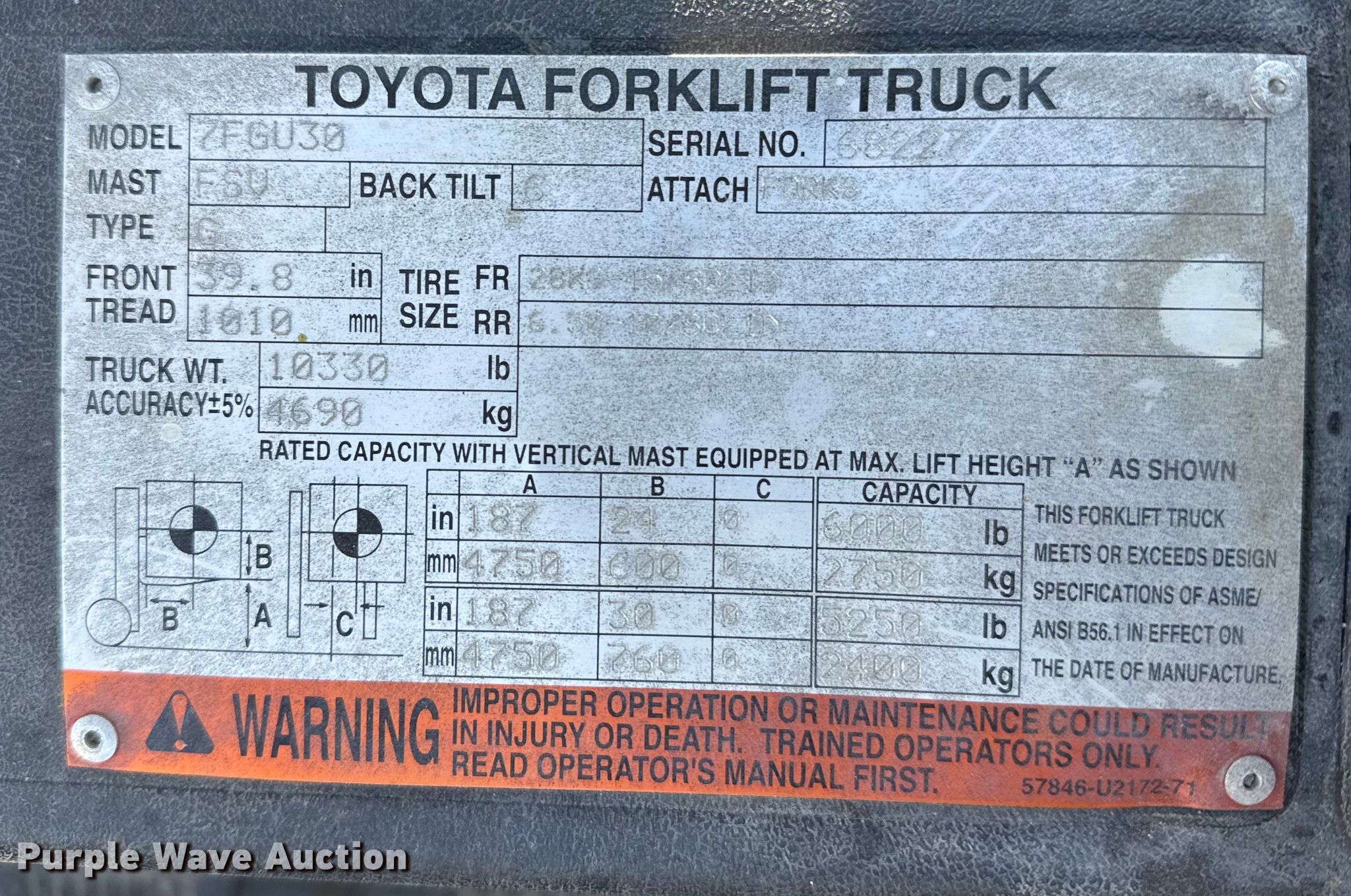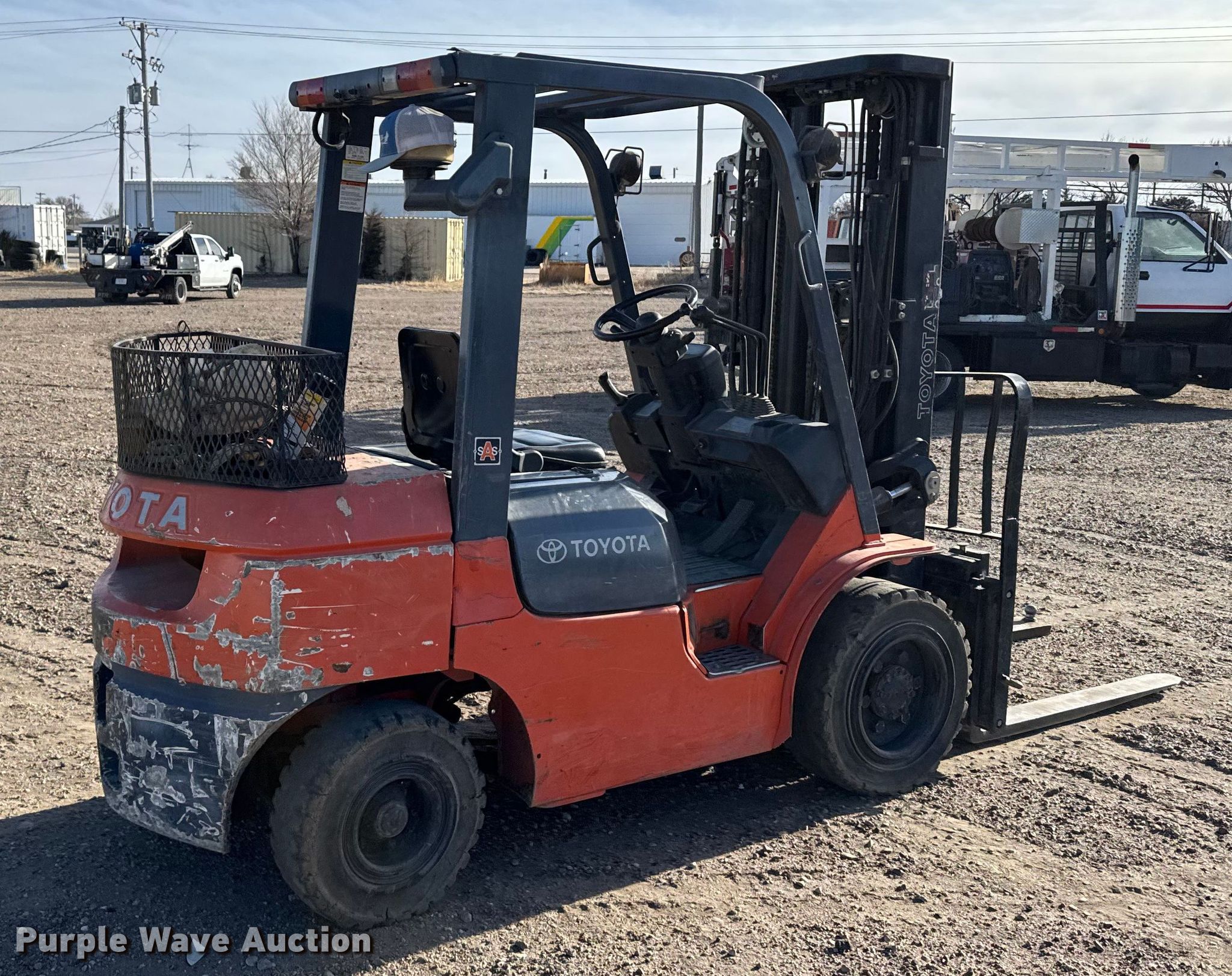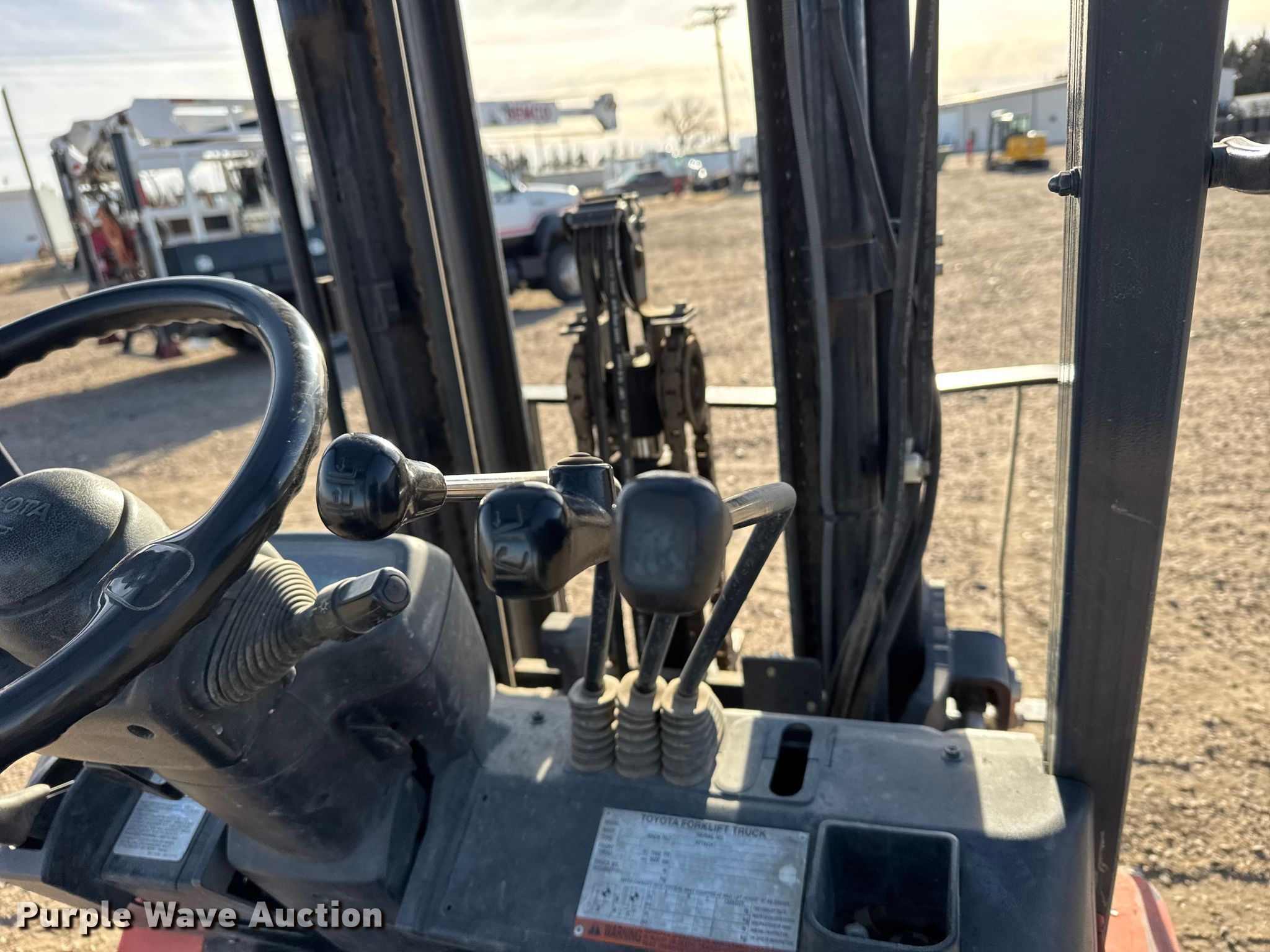 Purple Wave is selling a used Cushion Tire or Pneumatic Forklift in Kansas. This item is a Toyota 7FGU30 forklift with the following: Hours: 3,626 on meter, Serial: 68227