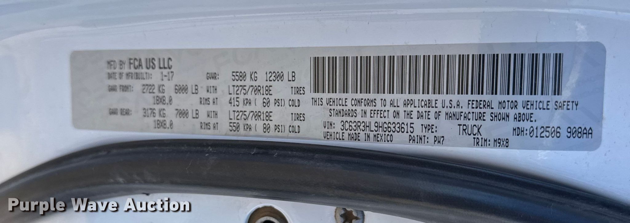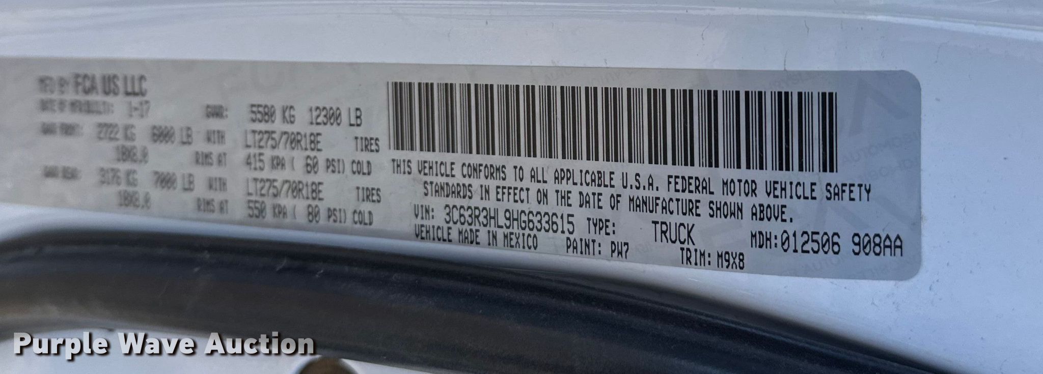 - VIN: 3C63R3HL9HG633615