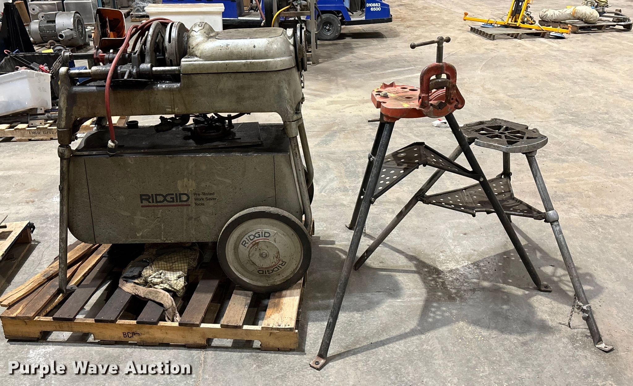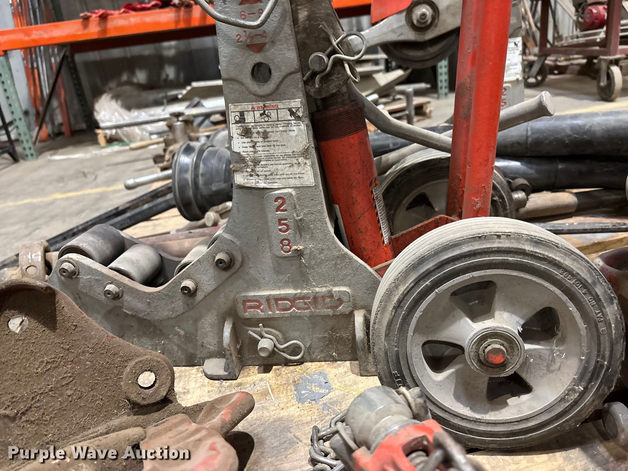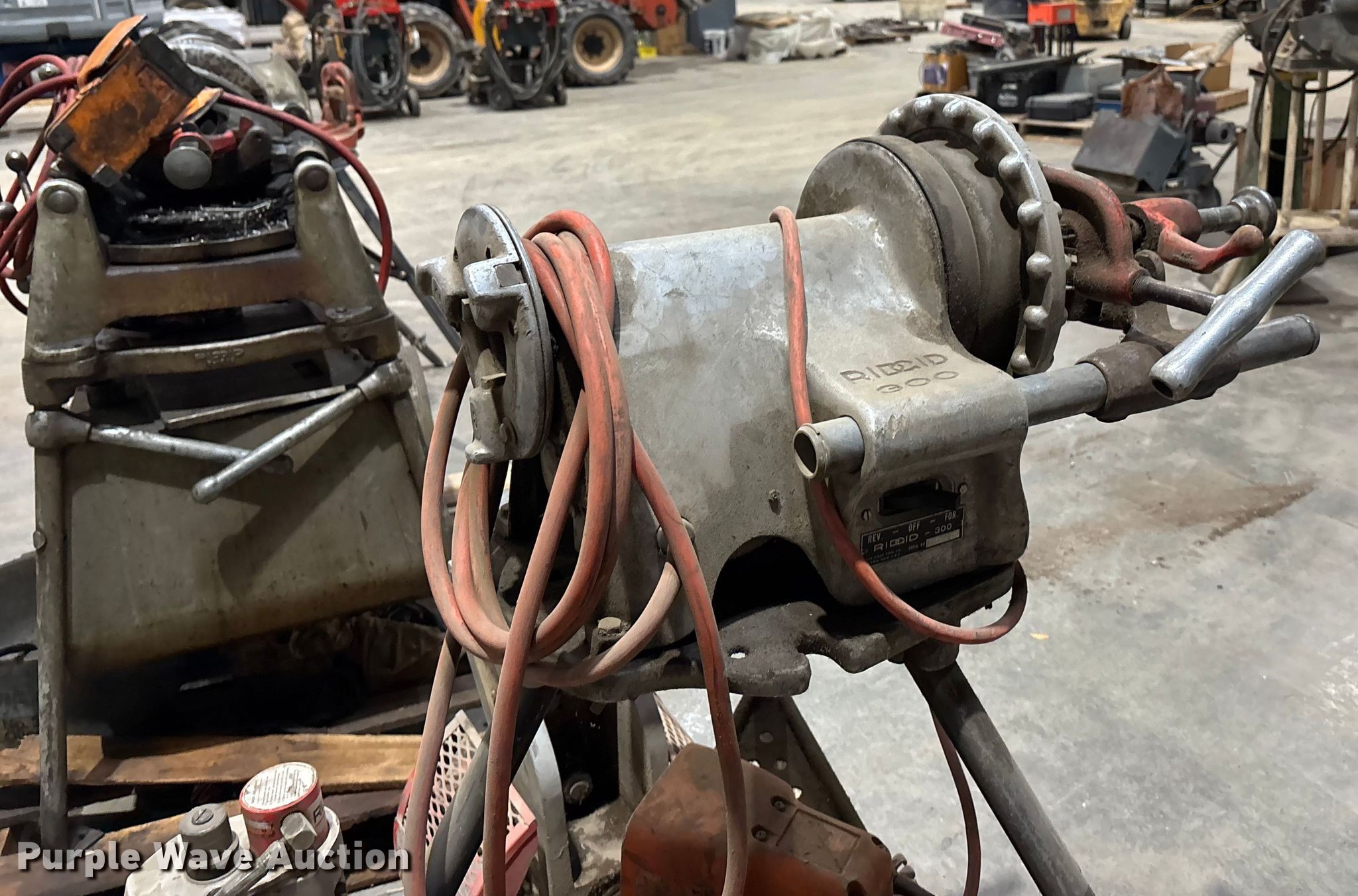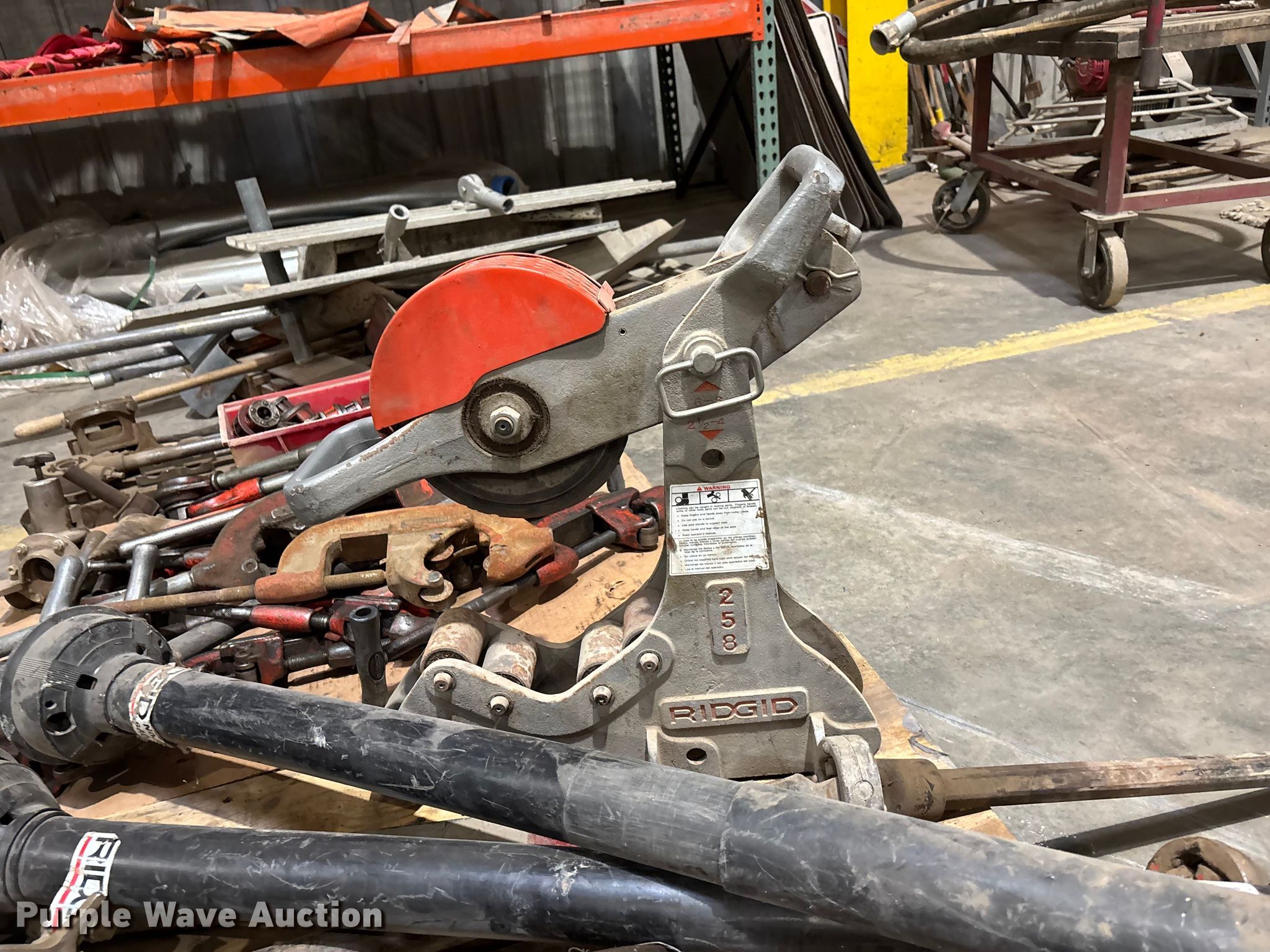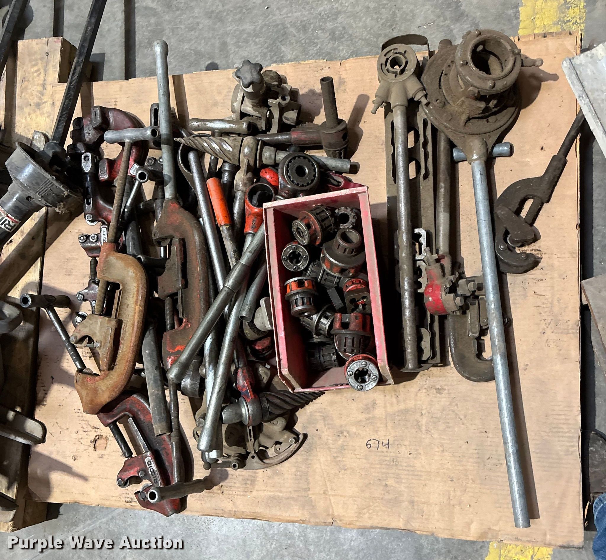 Purple Wave is selling a used Tools in Kansas. This item is a Tools with the following: Pipe Bender, Size: 3" conduit, Rigid pipe threaders, (2) Rigid 258 pipe cutters, Pipe stands, Chain cutters, Chain wrenches, Rigid 300, Rigid 801 and more