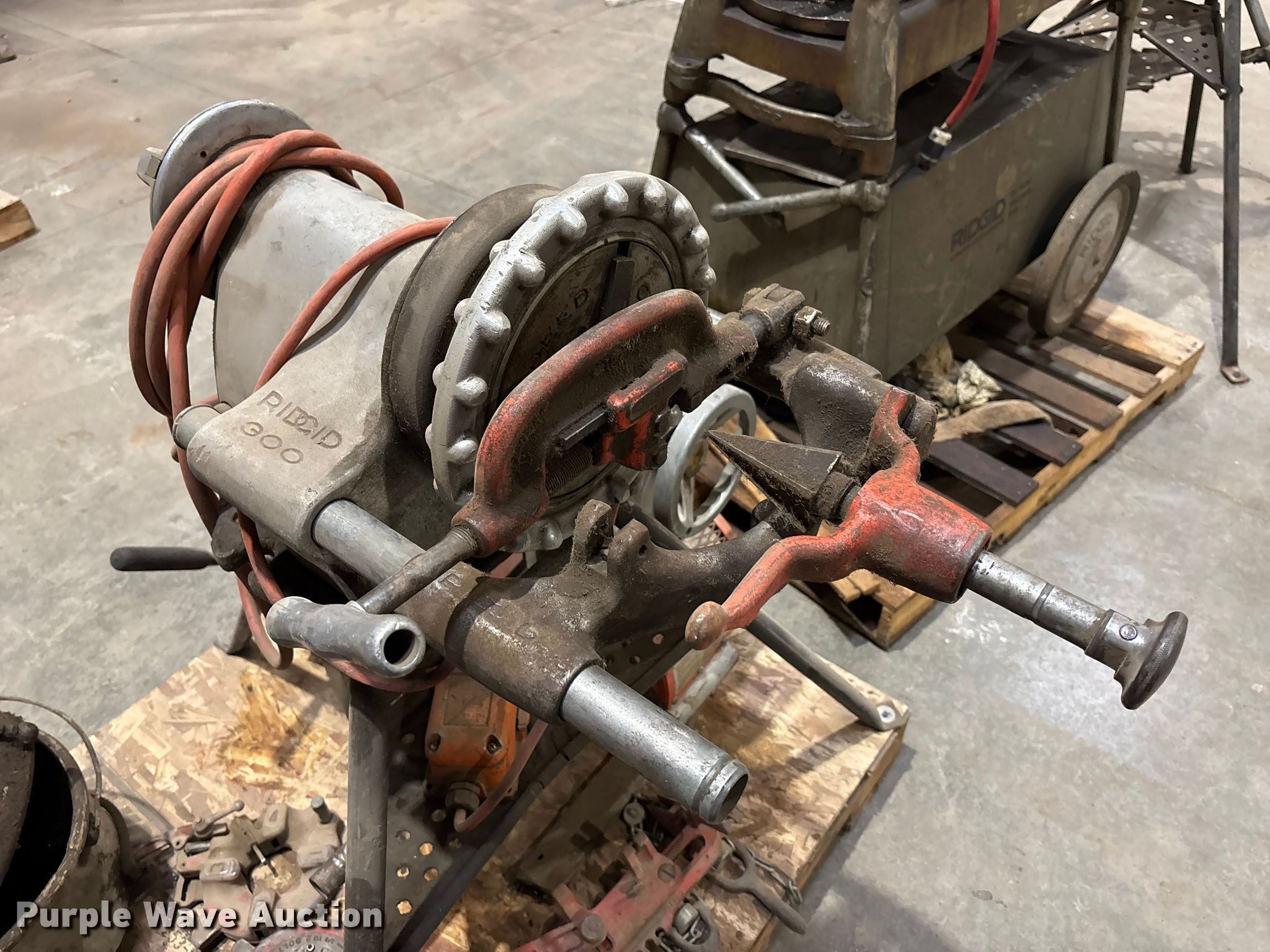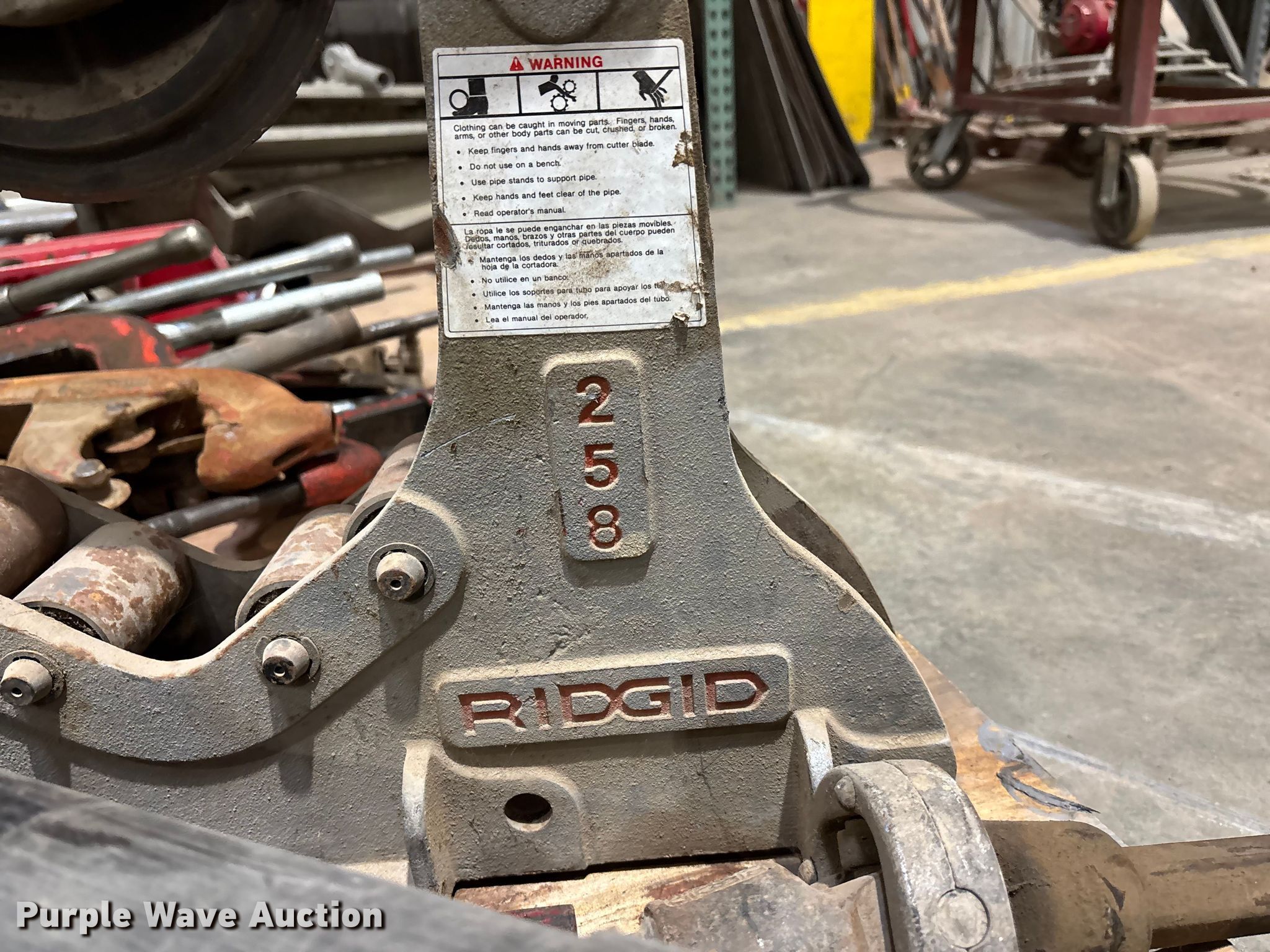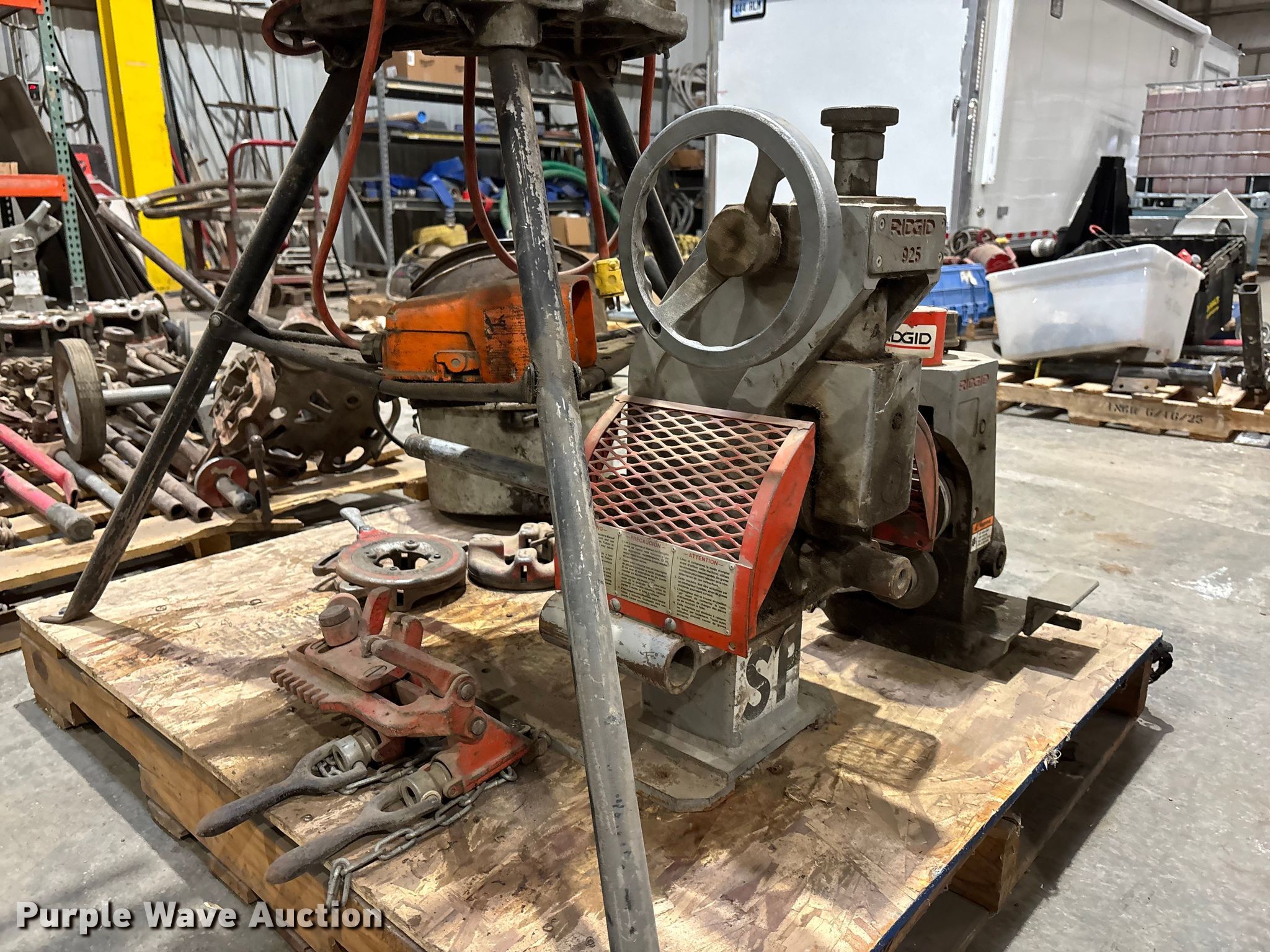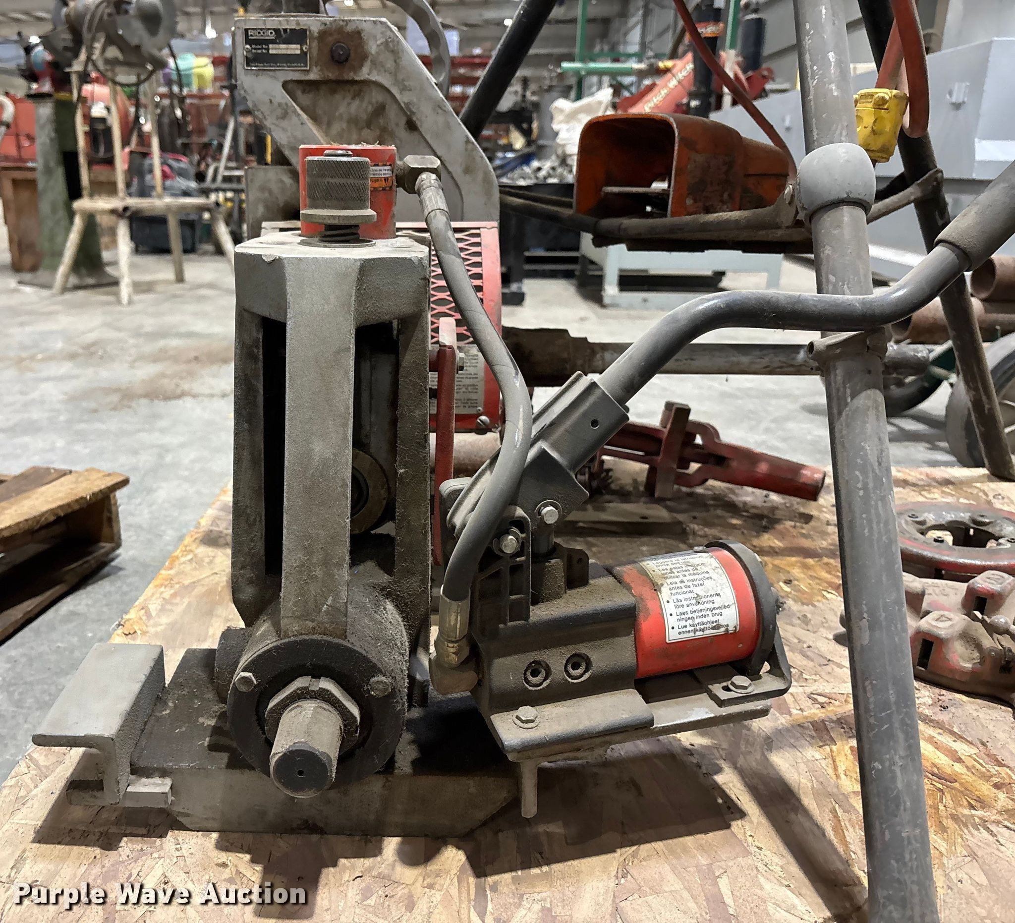 Purple Wave is selling a used Tools in Kansas. This item is a Tools with the following: Pipe Bender, Size: 3" conduit, Rigid pipe threaders, (2) Rigid 258 pipe cutters, Pipe stands, Chain cutters, Chain wrenches, Rigid 300, Rigid 801 and more