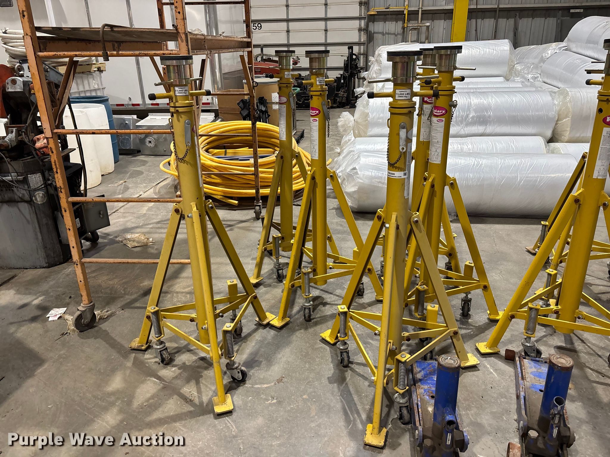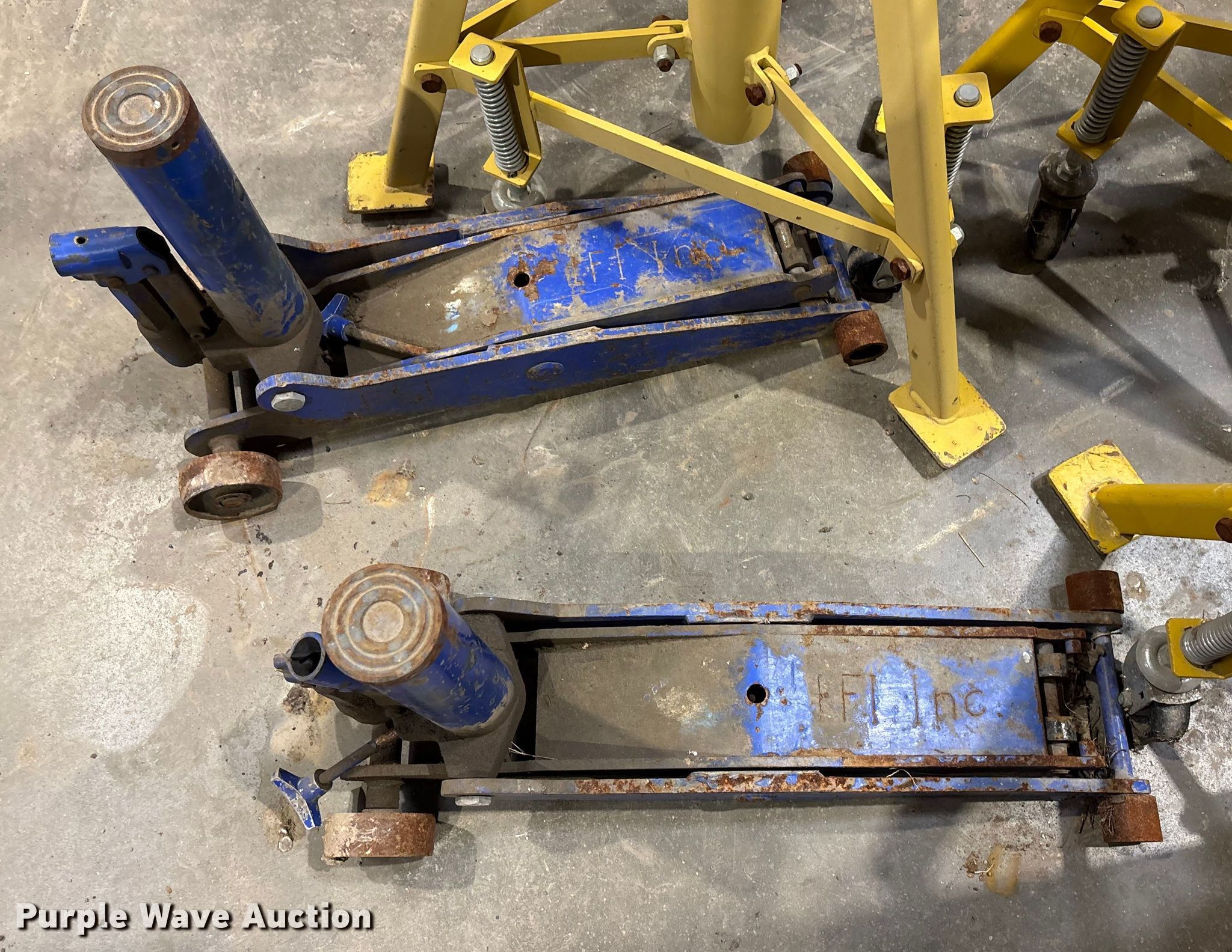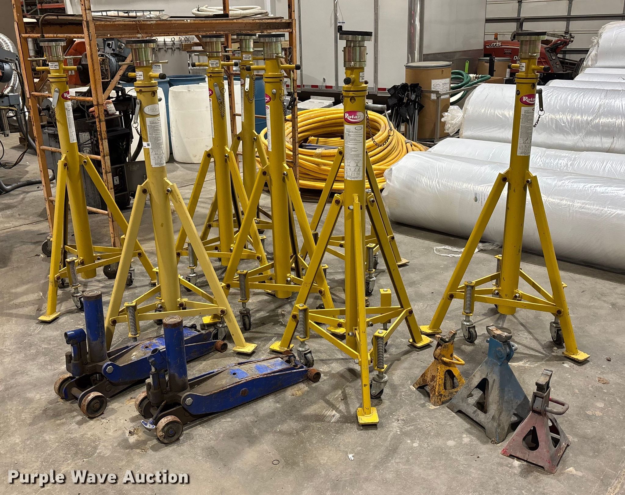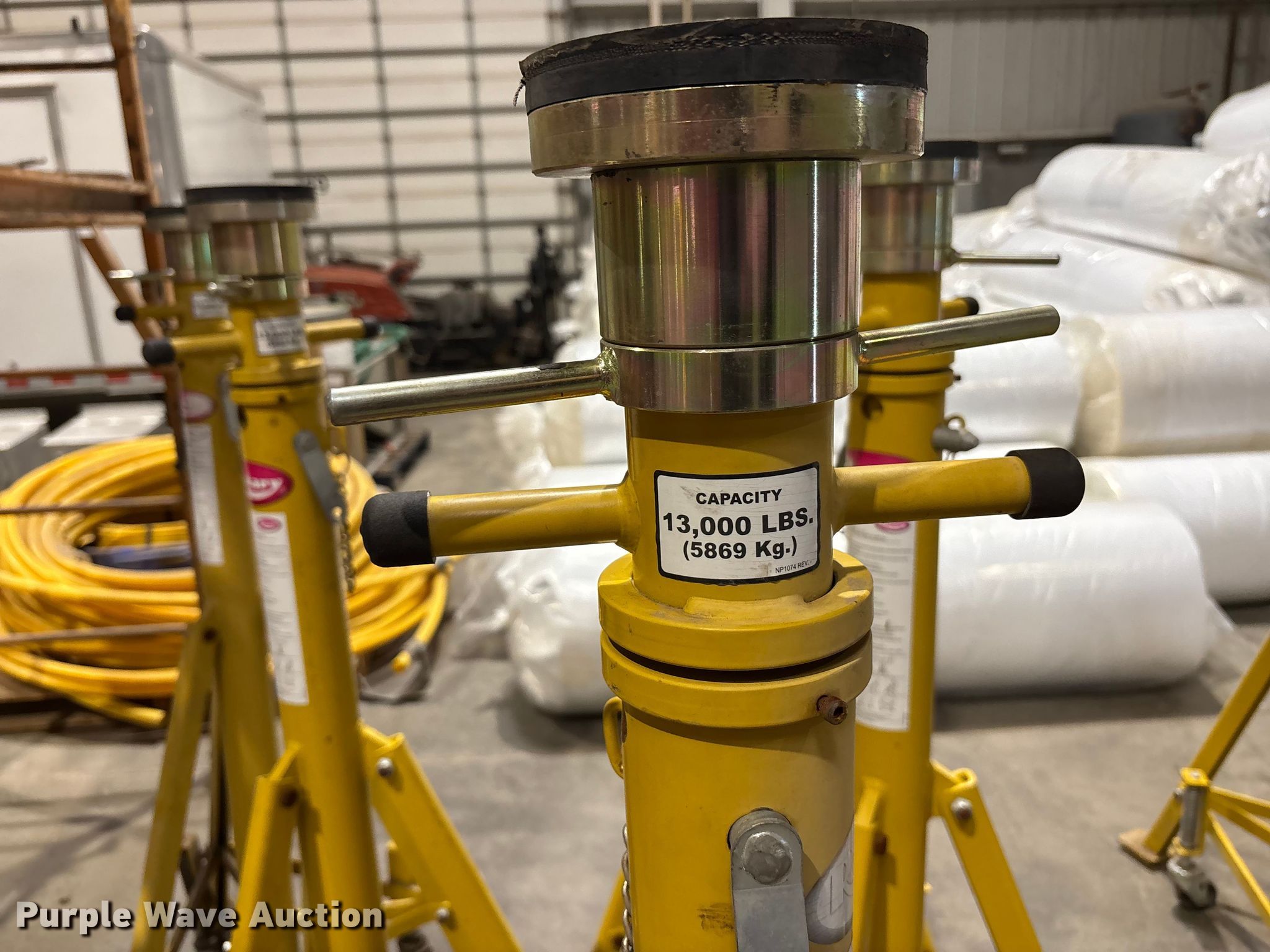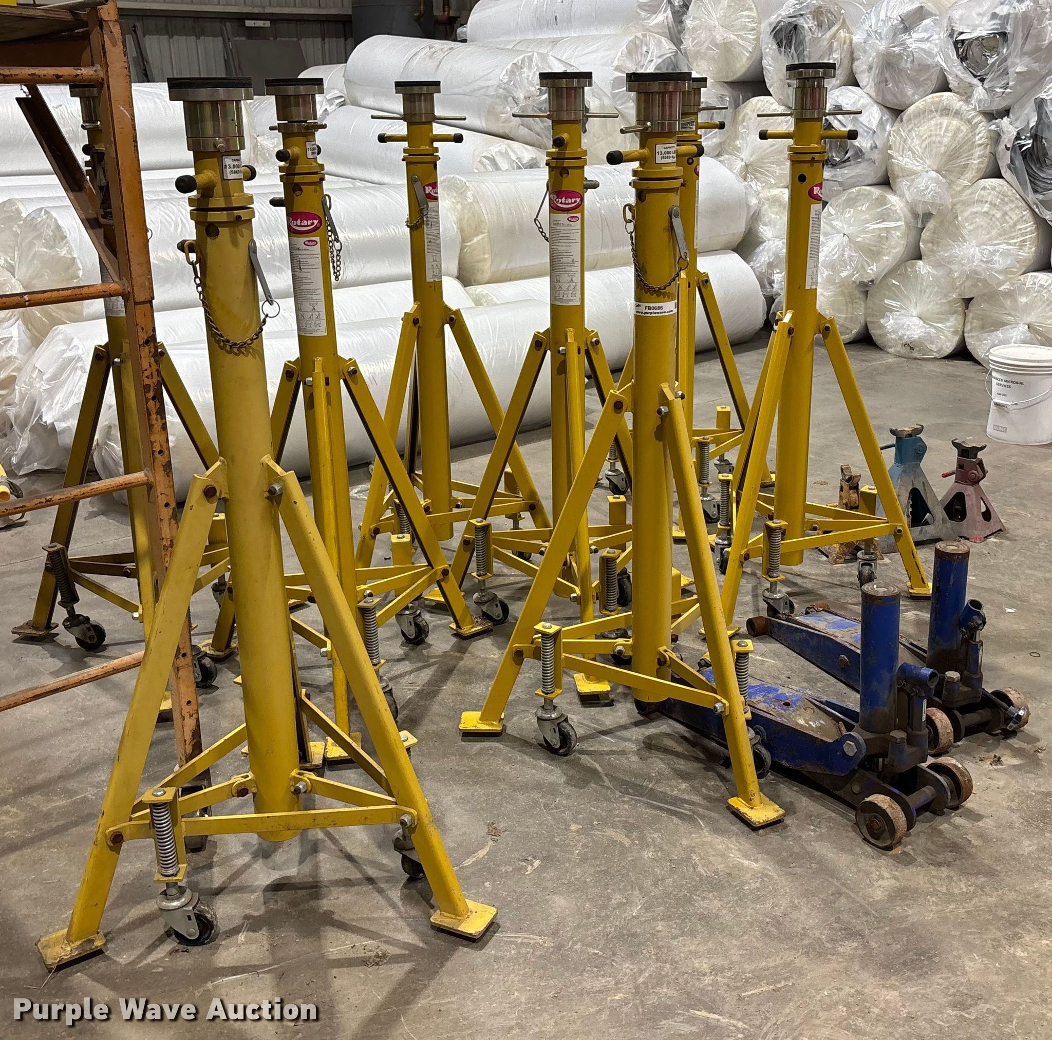 Purple Wave is selling a used Tools in Kansas. This item is a Tools with the following: Yellow Rotary stands, Capacity: 13,000 lbs, Floor jacks, Jack stands
