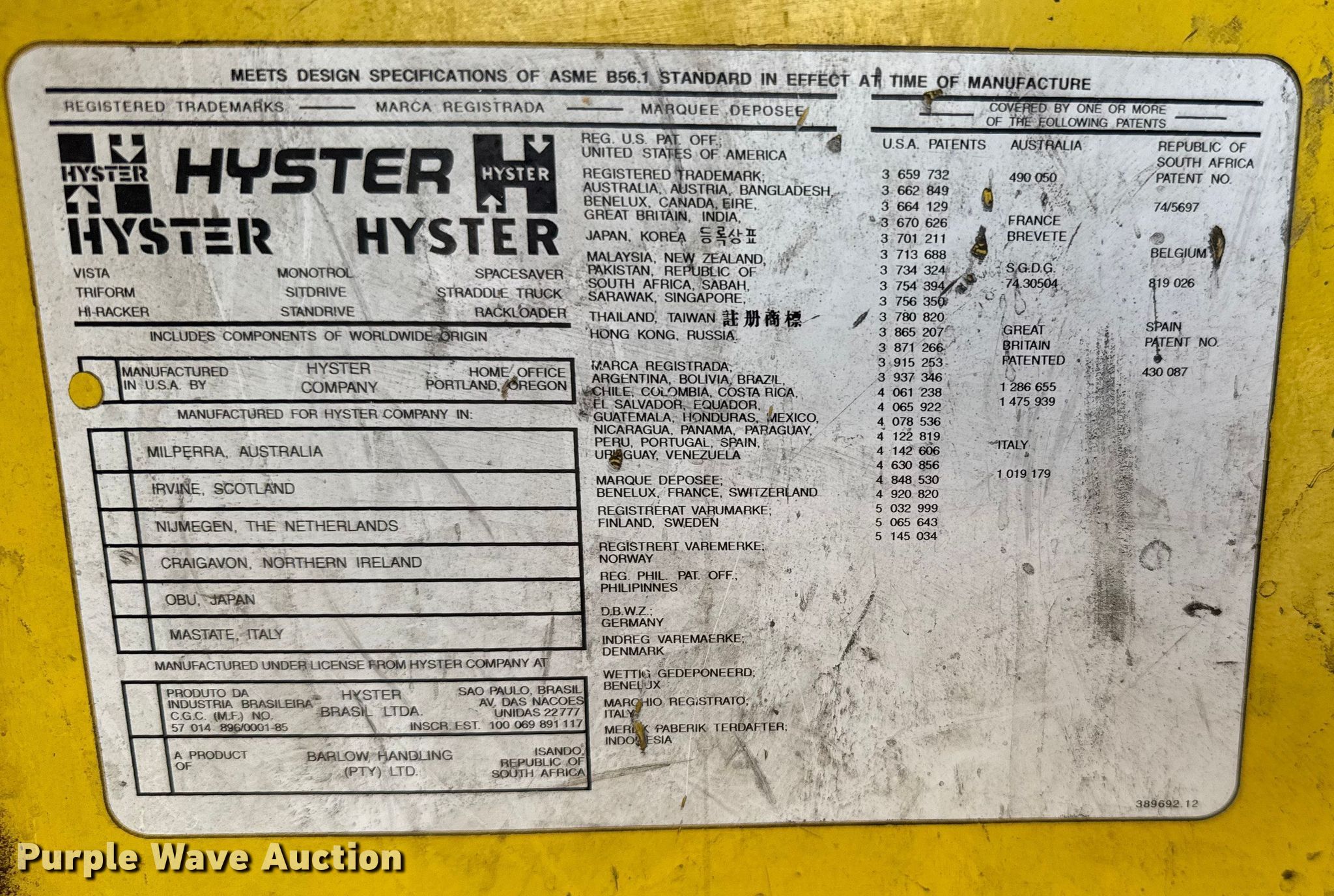 Purple Wave is selling a used Warehouse Forklift in Kansas. This item is a (3) Hyster 40 forklifts with the following: Hours: Unknown