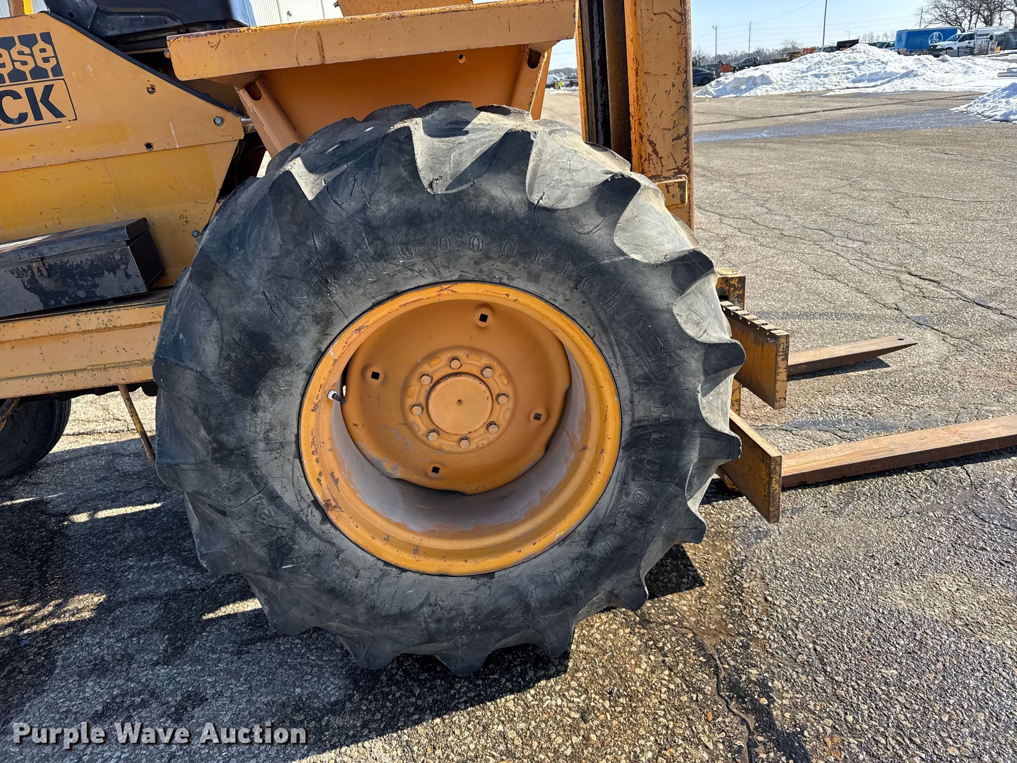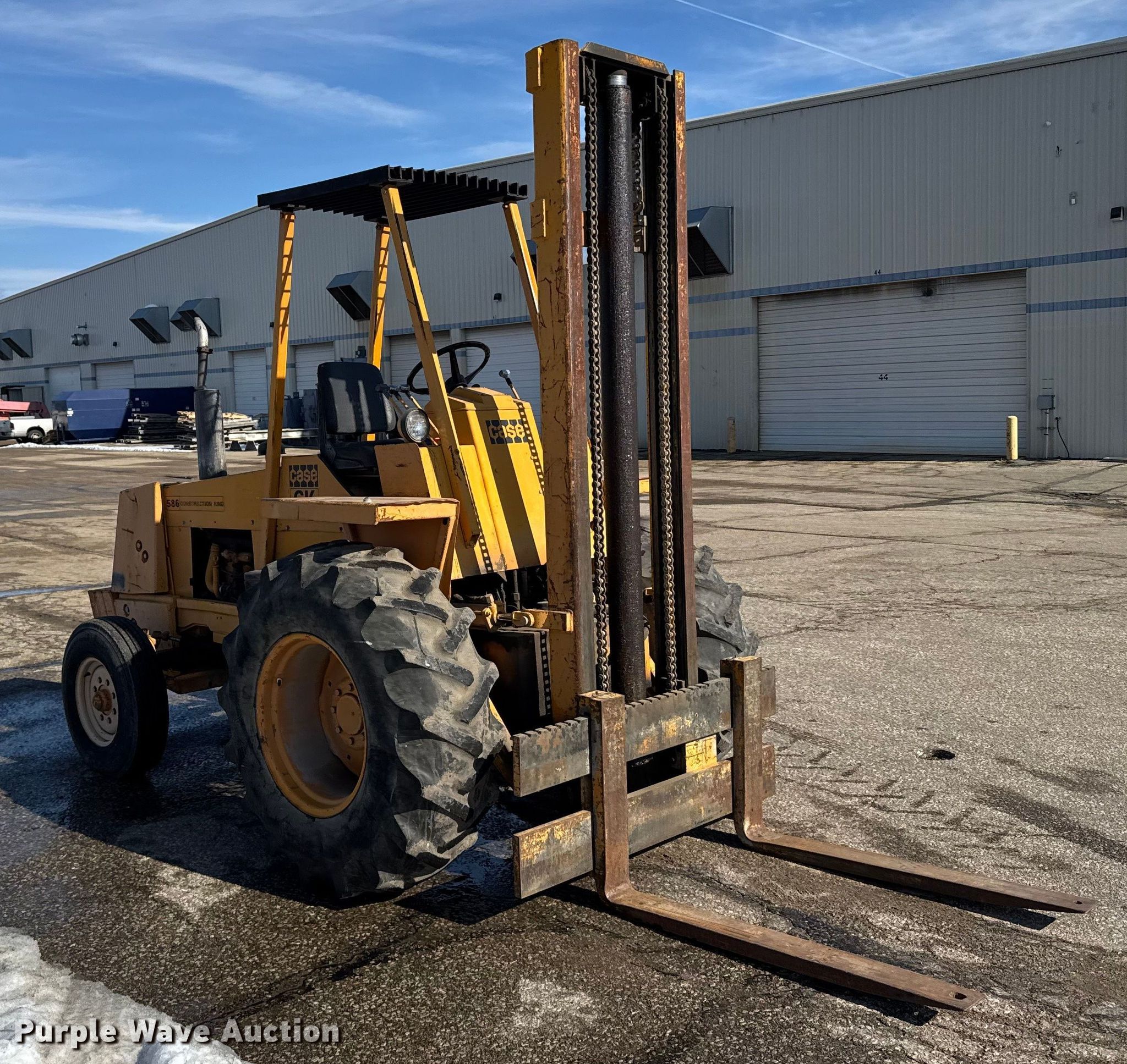 Purple Wave is selling a used Cushion Tire or Pneumatic Forklift in Kansas. This item is a Case 586 forklift with the following: Hours: 3,788 on meter, Serial: 5235123