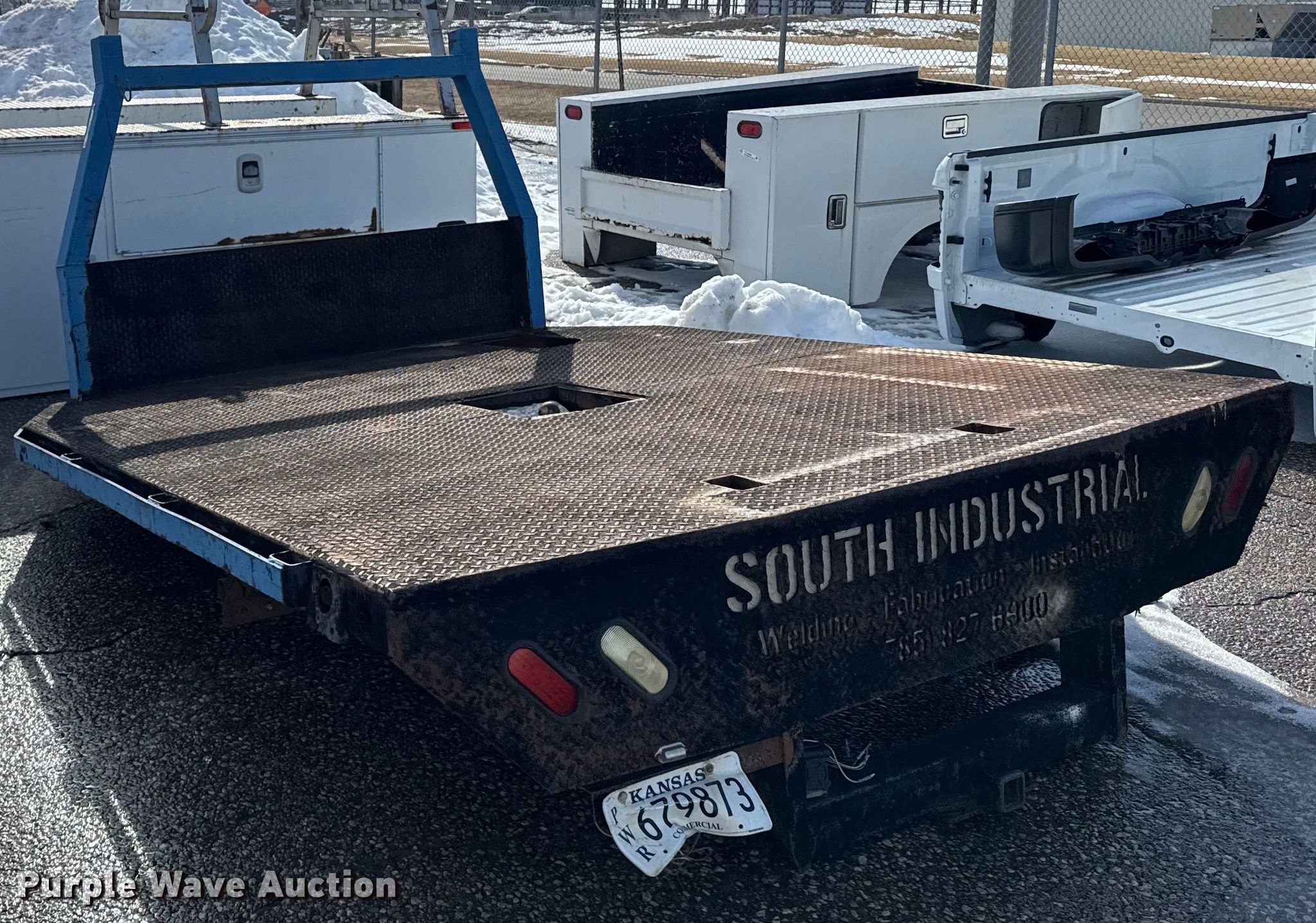 Purple Wave is selling a used Truck Part and Attach. in Kansas. This item is a Flat bed with the following: Length: 9' 7", Width: 100", Hitch: Gooseneck